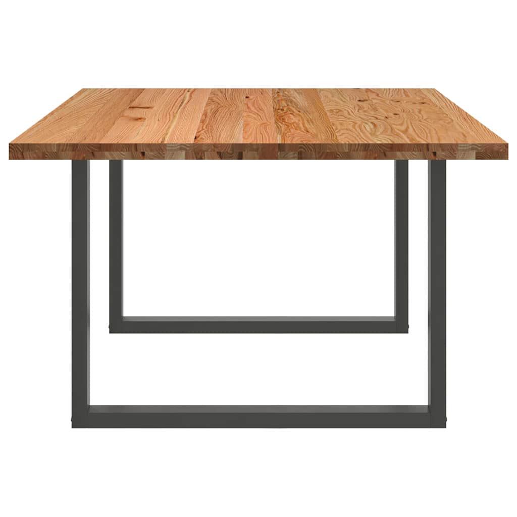 Mach jede Mahlzeit unvergesslich, indem du dich jeden Tag mit deiner Familie oder deinen Freunden um diesen Esstisch aus Holz versammelst! Robustes und langlebiges Material: Massives Eichenholz ist für seine Festigkeit, Haltbarkeit und schöne Maserung bekannt, weshalb es sich hervorragend für haltbare Möbel eignet. Durch seine natürliche Beständigkeit gegen Insektenbefall und Schimmelbildung sehen Eichenmöbel selbst nach jahrelangem Gebrauch brandneu aus.Großer Tisch: Dieser Tisch bietet mit seinen Maßen von 180 x 120 cm viel Platz zum Sitzen und ist das Herzstück deines Essbereichs.Einzigartiger Charme: Da Äste, Risse und Farbabweichungen natürliche Merkmale des Eichenholzes sind, hat jedes Stück dieses Produkts seinen ganz eigenen Charme. Auf den Bildern siehst du Beispiele für die zu erwartenden Variationen.Praktisches Design: Diese Esstischbeine sind mit verstellbaren Nivellierfüßen ausgestattet, die auch auf unebenen Böden für Stabilität sorgen und Bodenkratzer minimieren. Außerdem verfügt die Halterung über vorgebohrte Löcher und mitgelieferte Schrauben, mit denen das Bein an der Tischplatte befestigt werden kann, was die Montage erleichtert.Robustes und stabiles Gestell: Dieser Esszimmertisch hat U-förmige Beine aus pulverbeschichtetem Stahl, die für außergewöhnliche Stabilität und Sicherheit sorgen. Gut zu wissen:Jedes Stück ist ein Unikat, das in Farbe und Maserung variiert. Die Lieferung erfolgt in zufälliger Reihenfolge, wodurch die Exklusivität und Individualität deines Produkts gewährleistet wird.Äste und kleinere Fehler werden mit schwarzem Füllmaterial aufgefüllt, um eine schöne und glatte Tischoberfläche zu erhalten. Beispiele findest du in den Abbildungen.Die Tischplatte ist an den Rändern 4 cm dick, um ein robustes Aussehen zu gewährleisten, und in der Mitte 2 cm dick, um den Holzverbrauch und das Gesamtgewicht zu reduzieren.Bitte bohre die Löcher in der Mitte, nicht an den Rändern der Platte.Bitte achte darauf, die maximale Bohrtiefe von 15 mm nicht zu überschreiten, um die Tischplatte nicht zu beschädigen, da die Plattenstärke 20 mm beträgt.Wir empfehlen, einen Schraubendreher anstelle einer elektrischen Bohrmaschine zu verwenden, um Holzrisse beim Anbringen der Beine zu vermeiden.