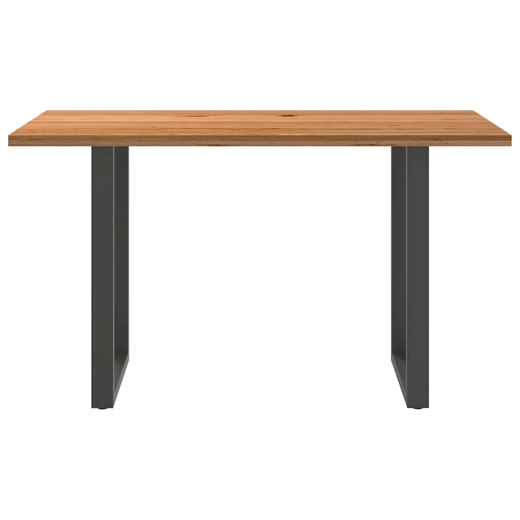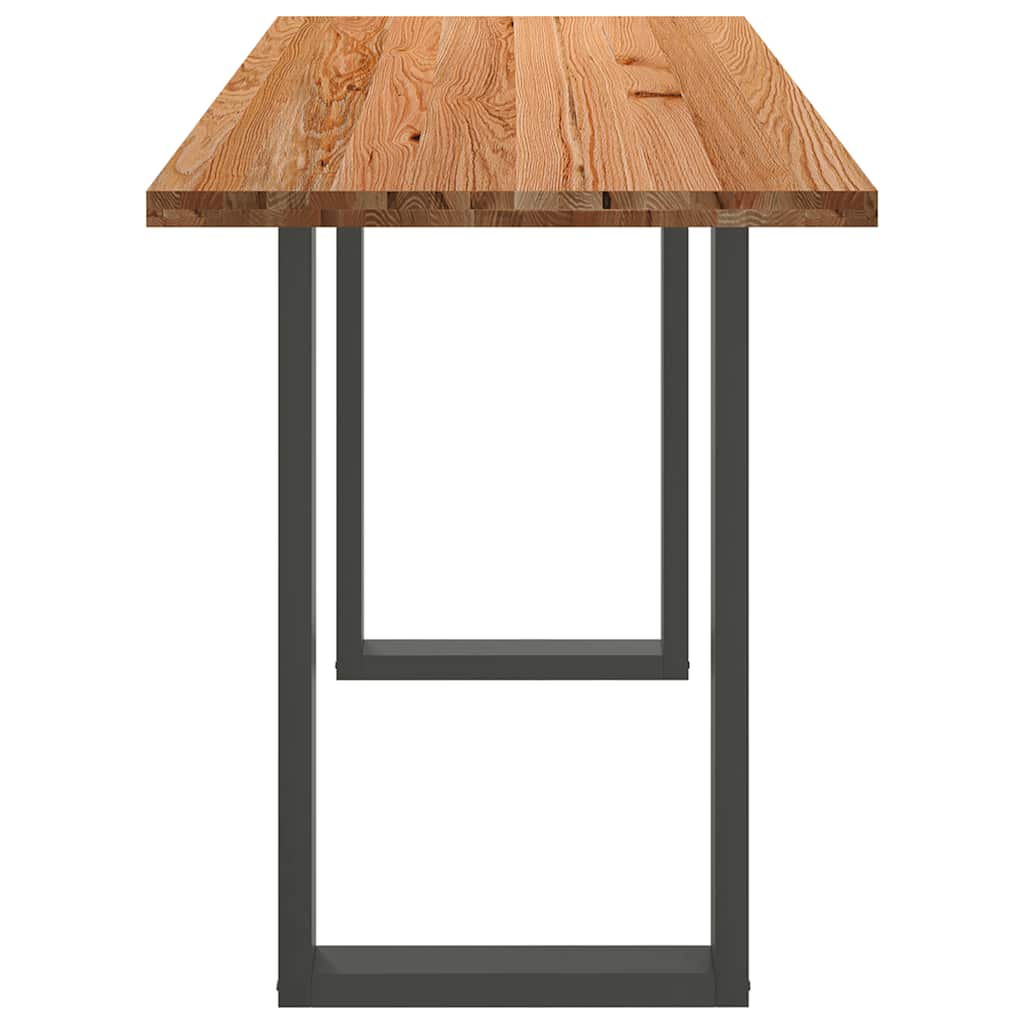 Mach jede Mahlzeit unvergesslich, indem du dich jeden Tag mit deiner Familie oder deinen Freunden um diesen Esstisch aus Holz versammelst! Robustes und langlebiges Material: Massives Eichenholz ist für seine Festigkeit, Haltbarkeit und schöne Maserung bekannt, weshalb es sich hervorragend für haltbare Möbel eignet. Durch seine natürliche Beständigkeit gegen Insektenbefall und Schimmelbildung sehen Eichenmöbel selbst nach jahrelangem Gebrauch brandneu aus.Großer Tisch: Dieser Tisch bietet mit seinen Maßen von 180 x 80 cm viel Platz zum Sitzen und ist das Herzstück deines Essbereichs.Einzigartiger Charme: Da Äste, Risse und Farbabweichungen natürliche Merkmale des Eichenholzes sind, hat jedes Stück dieses Produkts seinen ganz eigenen Charme. Auf den Bildern siehst du Beispiele für die zu erwartenden Variationen.Praktisches Design: Diese Esstischbeine sind mit verstellbaren Nivellierfüßen ausgestattet, die auch auf unebenen Böden für Stabilität sorgen und Bodenkratzer minimieren. Außerdem verfügt die Halterung über vorgebohrte Löcher und mitgelieferte Schrauben, mit denen das Bein an der Tischplatte befestigt werden kann, was die Montage erleichtert.Robustes und stabiles Gestell: Dieser Esszimmertisch hat U-förmige Beine aus pulverbeschichtetem Stahl, die für außergewöhnliche Stabilität und Sicherheit sorgen. Gut zu wissen:Jedes Stück ist ein Unikat, das in Farbe und Maserung variiert. Die Lieferung erfolgt in zufälliger Reihenfolge, wodurch die Exklusivität und Individualität deines Produkts gewährleistet wird.Äste und kleinere Fehler werden mit schwarzem Füllmaterial aufgefüllt, um eine schöne und glatte Tischoberfläche zu erhalten. Beispiele findest du in den Abbildungen.Die Tischplatte ist an den Rändern 4 cm dick, um ein robustes Aussehen zu gewährleisten, und in der Mitte 2 cm dick, um den Holzverbrauch und das Gesamtgewicht zu reduzieren.Bitte bohre die Löcher in der Mitte, nicht an den Rändern der Platte.Bitte achte darauf, die maximale Bohrtiefe von 15 mm nicht zu überschreiten, um die Tischplatte nicht zu beschädigen, da die Plattenstärke 20 mm beträgt.Wir empfehlen, einen Schraubendreher anstelle einer elektrischen Bohrmaschine zu verwenden, um Holzrisse beim Anbringen der Beine zu vermeiden.