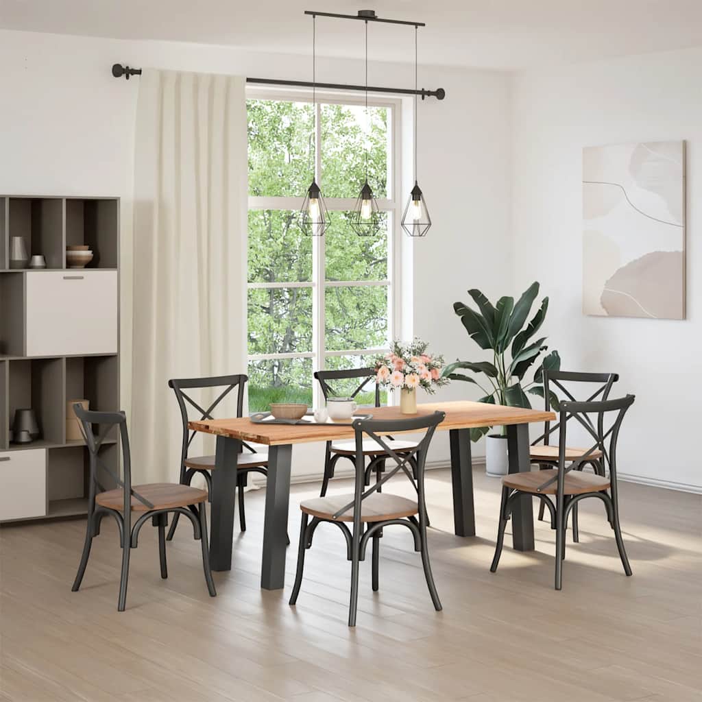 Mach jede Mahlzeit unvergesslich, indem du dich jeden Tag mit deiner Familie oder deinen Freunden um diesen Esstisch aus Holz versammelst! Robustes und langlebiges Material: Massives Eichenholz ist für seine Festigkeit, Haltbarkeit und schöne Maserung bekannt, weshalb es sich hervorragend für haltbare Möbel eignet. Durch seine natürliche Beständigkeit gegen Insektenbefall und Schimmelbildung sehen Eichenmöbel selbst nach jahrelangem Gebrauch brandneu aus.Großer Tisch: Dieser Tisch bietet mit seinen Maßen von 180 x 80 cm viel Platz zum Sitzen und ist das Herzstück deines Essbereichs.Naturkanten: Diese Tischplatte hat geschwungene Kanten, die von der natürlichen Form eines Baumes inspiriert sind und deinem Tisch eine charmante Note verleihen.Einzigartiger Charme: Da Äste, Risse und Farbabweichungen natürliche Merkmale des Eichenholzes sind, hat jedes Stück dieses Produkts seinen ganz eigenen Charme. Auf den Bildern siehst du Beispiele für die zu erwartenden Variationen.Praktisches Design: Diese Esstischbeine sind mit verstellbaren Nivellierfüßen ausgestattet, die auch auf unebenen Böden für Stabilität sorgen und Bodenkratzer minimieren. Außerdem verfügt die Halterung über vorgebohrte Löcher und mitgelieferte Schrauben, mit denen das Bein an der Tischplatte befestigt werden kann, was die Montage erleichtert. Gut zu wissen:Jedes Stück ist ein Unikat, das in Farbe und Maserung variiert. Die Lieferung erfolgt in zufälliger Reihenfolge, wodurch die Exklusivität und Individualität deines Produkts gewährleistet wird.Äste und kleinere Fehler werden mit schwarzem Füllmaterial aufgefüllt, um eine schöne und glatte Tischoberfläche zu erhalten. Beispiele findest du in den Abbildungen.Die Tischplatte ist an den Rändern 4 cm dick, um ein robustes Aussehen zu gewährleisten, und in der Mitte 2 cm dick, um den Holzverbrauch und das Gesamtgewicht zu reduzieren.Bitte bohre die Löcher in der Mitte, nicht an den Rändern der Platte.Bitte achte darauf, die maximale Bohrtiefe von 15 mm nicht zu überschreiten, um die Tischplatte nicht zu beschädigen, da die Plattenstärke 20 mm beträgt.Wir empfehlen, einen Schraubendreher anstelle einer elektrischen Bohrmaschine zu verwenden, um Holzrisse beim Anbringen der Beine zu vermeiden.