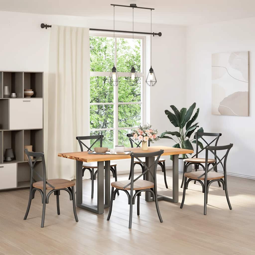 Mach jede Mahlzeit unvergesslich, indem du dich jeden Tag mit deiner Familie oder deinen Freunden um diesen Esstisch aus Holz versammelst! Robustes und langlebiges Material: Massives Eichenholz ist für seine Festigkeit, Haltbarkeit und schöne Maserung bekannt, weshalb es sich hervorragend für haltbare Möbel eignet. Durch seine natürliche Beständigkeit gegen Insektenbefall und Schimmelbildung sehen Eichenmöbel selbst nach jahrelangem Gebrauch brandneu aus.Großer Tisch: Dieser Tisch bietet mit seinen Maßen von 180 x 80 cm viel Platz zum Sitzen und ist das Herzstück deines Essbereichs.Naturkanten: Diese Tischplatte hat geschwungene Kanten, die von der natürlichen Form eines Baumes inspiriert sind und deinem Tisch eine charmante Note verleihen.Einzigartiger Charme: Da Äste, Risse und Farbabweichungen natürliche Merkmale des Eichenholzes sind, hat jedes Stück dieses Produkts seinen ganz eigenen Charme. Auf den Bildern siehst du Beispiele für die zu erwartenden Variationen.Praktisches Design: Diese Esstischbeine sind mit verstellbaren Nivellierfüßen ausgestattet, die auch auf unebenen Böden für Stabilität sorgen und Bodenkratzer minimieren. Außerdem verfügt die Halterung über vorgebohrte Löcher und mitgelieferte Schrauben, mit denen das Bein an der Tischplatte befestigt werden kann, was die Montage erleichtert. Gut zu wissen:Jedes Stück ist ein Unikat, das in Farbe und Maserung variiert. Die Lieferung erfolgt in zufälliger Reihenfolge, wodurch die Exklusivität und Individualität deines Produkts gewährleistet wird.Äste und kleinere Fehler werden mit schwarzem Füllmaterial aufgefüllt, um eine schöne und glatte Tischoberfläche zu erhalten. Beispiele findest du in den Abbildungen.Die Tischplatte ist an den Rändern 4 cm dick, um ein robustes Aussehen zu gewährleisten, und in der Mitte 2 cm dick, um den Holzverbrauch und das Gesamtgewicht zu reduzieren.Bitte bohre die Löcher in der Mitte, nicht an den Rändern der Platte.Bitte achte darauf, die maximale Bohrtiefe von 15 mm nicht zu überschreiten, um die Tischplatte nicht zu beschädigen, da die Plattenstärke 20 mm beträgt.Wir empfehlen, einen Schraubendreher anstelle einer elektrischen Bohrmaschine zu verwenden, um Holzrisse beim Anbringen der Beine zu vermeiden.