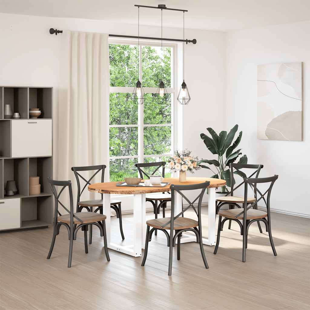 Mach jede Mahlzeit unvergesslich, indem du dich jeden Tag mit deiner Familie oder deinen Freunden um diesen Esstisch aus Holz versammelst! Robustes und langlebiges Material: Massives Eichenholz ist für seine Festigkeit, Haltbarkeit und schöne Maserung bekannt, weshalb es sich hervorragend für haltbare Möbel eignet. Durch seine natürliche Beständigkeit gegen Insektenbefall und Schimmelbildung sehen Eichenmöbel selbst nach jahrelangem Gebrauch brandneu aus.Großer Tisch: Dieser Tisch bietet mit seinen Maßen von 180 x 90 cm viel Platz zum Sitzen und ist das Herzstück deines Essbereichs.Einzigartiger Charme: Da Äste, Risse und Farbabweichungen natürliche Merkmale des Eichenholzes sind, hat jedes Stück dieses Produkts seinen ganz eigenen Charme. Auf den Bildern siehst du Beispiele für die zu erwartenden Variationen.Praktisches Design: Diese Esstischbeine sind mit verstellbaren Nivellierfüßen ausgestattet, die auch auf unebenen Böden für Stabilität sorgen und Bodenkratzer minimieren. Außerdem verfügt die Halterung über vorgebohrte Löcher und mitgelieferte Schrauben, mit denen das Bein an der Tischplatte befestigt werden kann, was die Montage erleichtert.Robustes und stabiles Gestell: Dieser Esszimmertisch hat T-förmige Beine aus pulverbeschichtetem Stahl, die für außergewöhnliche Stabilität und Sicherheit sorgen. Gut zu wissen:Jedes Stück ist ein Unikat, das in Farbe und Maserung variiert. Die Lieferung erfolgt in zufälliger Reihenfolge, wodurch die Exklusivität und Individualität deines Produkts gewährleistet wird.Äste und kleinere Fehler werden mit schwarzem Füllmaterial aufgefüllt, um eine schöne und glatte Tischoberfläche zu erhalten. Beispiele findest du in den Abbildungen.Die Tischplatte ist an den Rändern 4 cm dick, um ein robustes Aussehen zu gewährleisten, und in der Mitte 2 cm dick, um den Holzverbrauch und das Gesamtgewicht zu reduzieren.Bitte bohre die Löcher in der Mitte, nicht an den Rändern der Platte.Bitte achte darauf, die maximale Bohrtiefe von 15 mm nicht zu überschreiten, um die Tischplatte nicht zu beschädigen, da die Plattenstärke 20 mm beträgt.Wir empfehlen, einen Schraubendreher anstelle einer elektrischen Bohrmaschine zu verwenden, um Holzrisse beim Anbringen der Beine zu vermeiden.