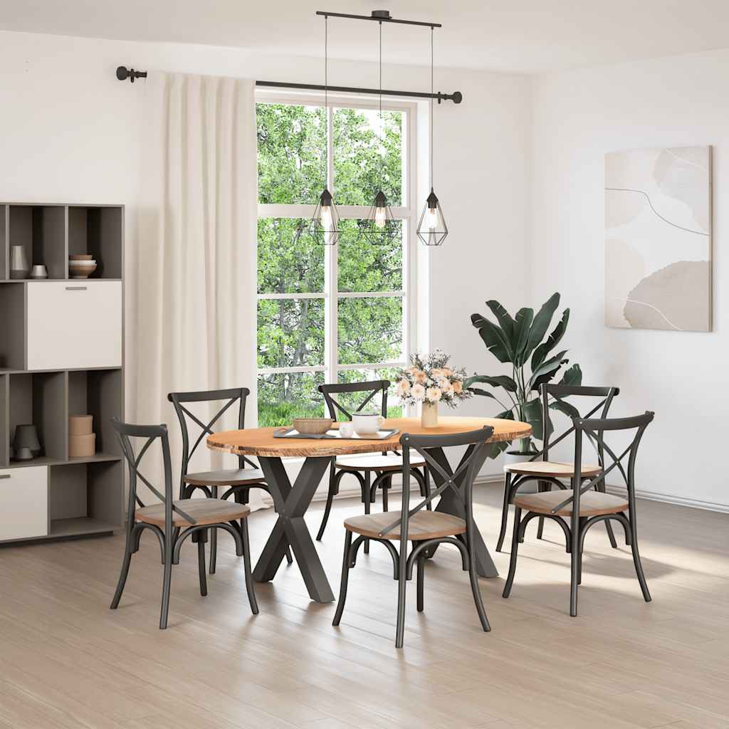 Mach jede Mahlzeit unvergesslich, indem du dich jeden Tag mit deiner Familie oder deinen Freunden um diesen Esstisch aus Holz versammelst! Robustes und langlebiges Material: Massives Eichenholz ist für seine Festigkeit, Haltbarkeit und schöne Maserung bekannt, weshalb es sich hervorragend für haltbare Möbel eignet. Durch seine natürliche Beständigkeit gegen Insektenbefall und Schimmelbildung sehen Eichenmöbel selbst nach jahrelangem Gebrauch brandneu aus.Großer Tisch: Dieser Tisch bietet mit seinen Maßen von 180 x 90 cm viel Platz zum Sitzen und ist das Herzstück deines Essbereichs.Einzigartiger Charme: Da Äste, Risse und Farbabweichungen natürliche Merkmale des Eichenholzes sind, hat jedes Stück dieses Produkts seinen ganz eigenen Charme. Auf den Bildern siehst du Beispiele für die zu erwartenden Variationen.Praktisches Design: Diese Esstischbeine sind mit verstellbaren Nivellierfüßen ausgestattet, die auch auf unebenen Böden für Stabilität sorgen und Bodenkratzer minimieren. Außerdem verfügt die Halterung über vorgebohrte Löcher und mitgelieferte Schrauben, mit denen das Bein an der Tischplatte befestigt werden kann, was die Montage erleichtert.Robustes und stabiles Gestell: Dieser Esszimmertisch hat X-förmige Beine aus pulverbeschichtetem Stahl, die für außergewöhnliche Stabilität und Sicherheit sorgen. Gut zu wissen:Jedes Stück ist ein Unikat, das in Farbe und Maserung variiert. Die Lieferung erfolgt in zufälliger Reihenfolge, wodurch die Exklusivität und Individualität deines Produkts gewährleistet wird.Äste und kleinere Fehler werden mit schwarzem Füllmaterial aufgefüllt, um eine schöne und glatte Tischoberfläche zu erhalten. Beispiele findest du in den Abbildungen.Die Tischplatte ist an den Rändern 4 cm dick, um ein robustes Aussehen zu gewährleisten, und in der Mitte 2 cm dick, um den Holzverbrauch und das Gesamtgewicht zu reduzieren.Bitte bohre die Löcher in der Mitte, nicht an den Rändern der Platte.Bitte achte darauf, die maximale Bohrtiefe von 15 mm nicht zu überschreiten, um die Tischplatte nicht zu beschädigen, da die Plattenstärke 20 mm beträgt.Wir empfehlen, einen Schraubendreher anstelle einer elektrischen Bohrmaschine zu verwenden, um Holzrisse beim Anbringen der Beine zu vermeiden.