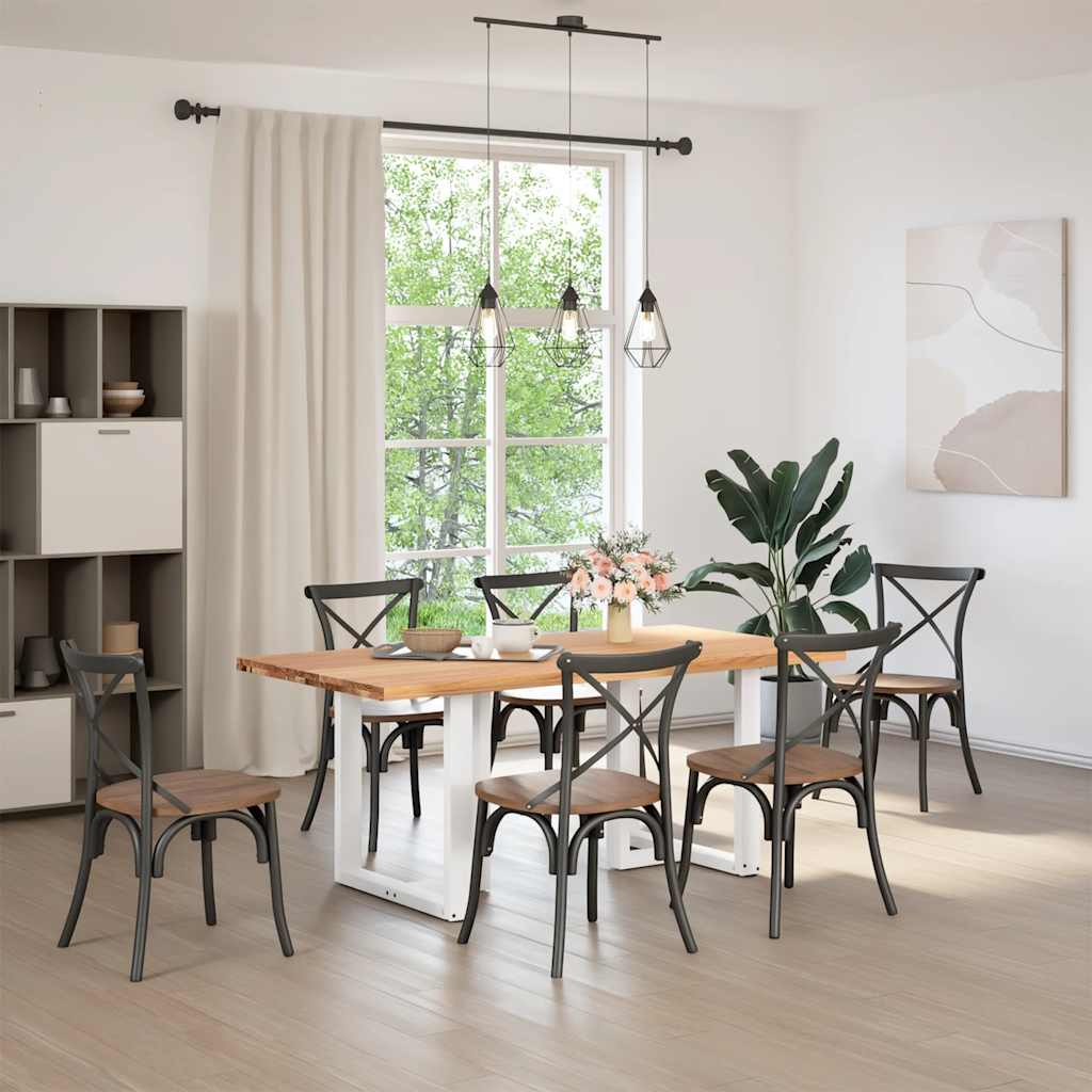 Mach jede Mahlzeit unvergesslich, indem du dich jeden Tag mit deiner Familie oder deinen Freunden um diesen Esstisch aus Holz versammelst! Robustes und langlebiges Material: Massives Eichenholz ist für seine Festigkeit, Haltbarkeit und schöne Maserung bekannt, weshalb es sich hervorragend für haltbare Möbel eignet. Durch seine natürliche Beständigkeit gegen Insektenbefall und Schimmelbildung sehen Eichenmöbel selbst nach jahrelangem Gebrauch brandneu aus.Großer Tisch: Dieser Küchentisch bietet mit seinen Maßen von 180 x 90 cm viel Platz zum Sitzen und ist das Herzstück deines Essbereichs.Einzigartiger Charme: Da Äste, Risse und Farbabweichungen natürliche Merkmale des Eichenholzes sind, hat jedes Stück dieses Produkts seinen ganz eigenen Charme. Auf den Bildern siehst du Beispiele für die zu erwartenden Variationen.Praktisches Design: Diese Esstischbeine sind mit verstellbaren Nivellierfüßen ausgestattet, die auch auf unebenen Böden für Stabilität sorgen und Bodenkratzer minimieren. Außerdem verfügt die Halterung über vorgebohrte Löcher und mitgelieferte Schrauben, mit denen das Bein an der Tischplatte befestigt werden kann, was die Montage erleichtert. Gut zu wissen:Jedes Stück ist ein Unikat, das in Farbe und Maserung variiert. Die Lieferung erfolgt in zufälliger Reihenfolge, wodurch die Exklusivität und Individualität deines Produkts gewährleistet wird.Äste und kleinere Fehler werden mit schwarzem Füllmaterial aufgefüllt, um eine schöne und glatte Tischoberfläche zu erhalten. Beispiele findest du in den Abbildungen.Die Tischplatte ist an den Rändern 4 cm dick, um ein robustes Aussehen zu gewährleisten, und in der Mitte 2 cm dick, um den Holzverbrauch und das Gesamtgewicht zu reduzieren.Bitte bohre die Löcher in der Mitte, nicht an den Rändern der Platte.Bitte achte darauf, die maximale Bohrtiefe von 15 mm nicht zu überschreiten, um die Tischplatte nicht zu beschädigen, da die Plattenstärke 20 mm beträgt.Wir empfehlen, einen Schraubendreher anstelle einer elektrischen Bohrmaschine zu verwenden, um Holzrisse beim Anbringen der Beine zu vermeiden.