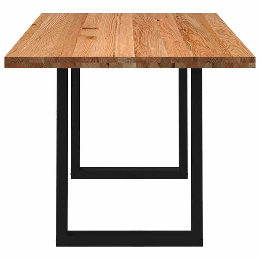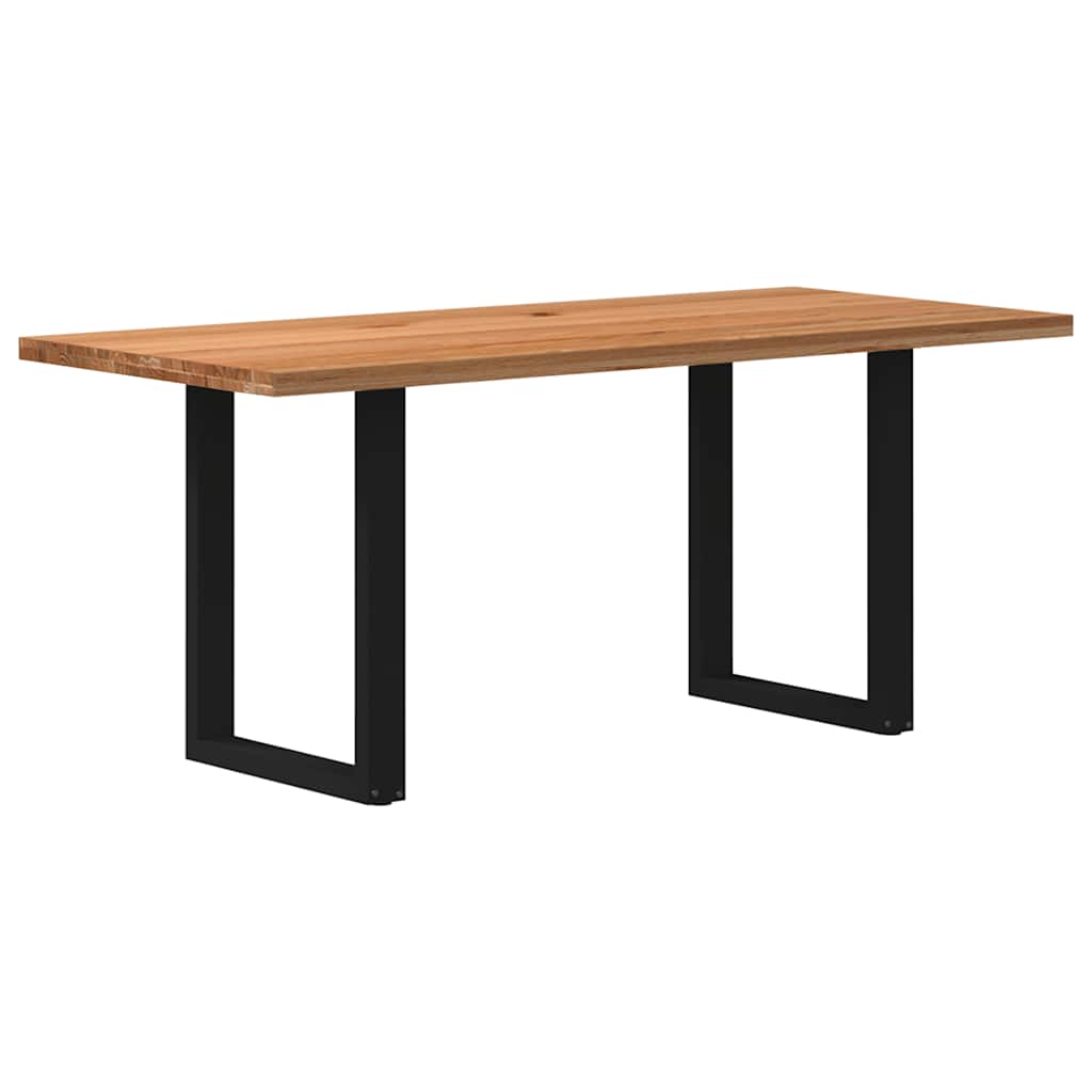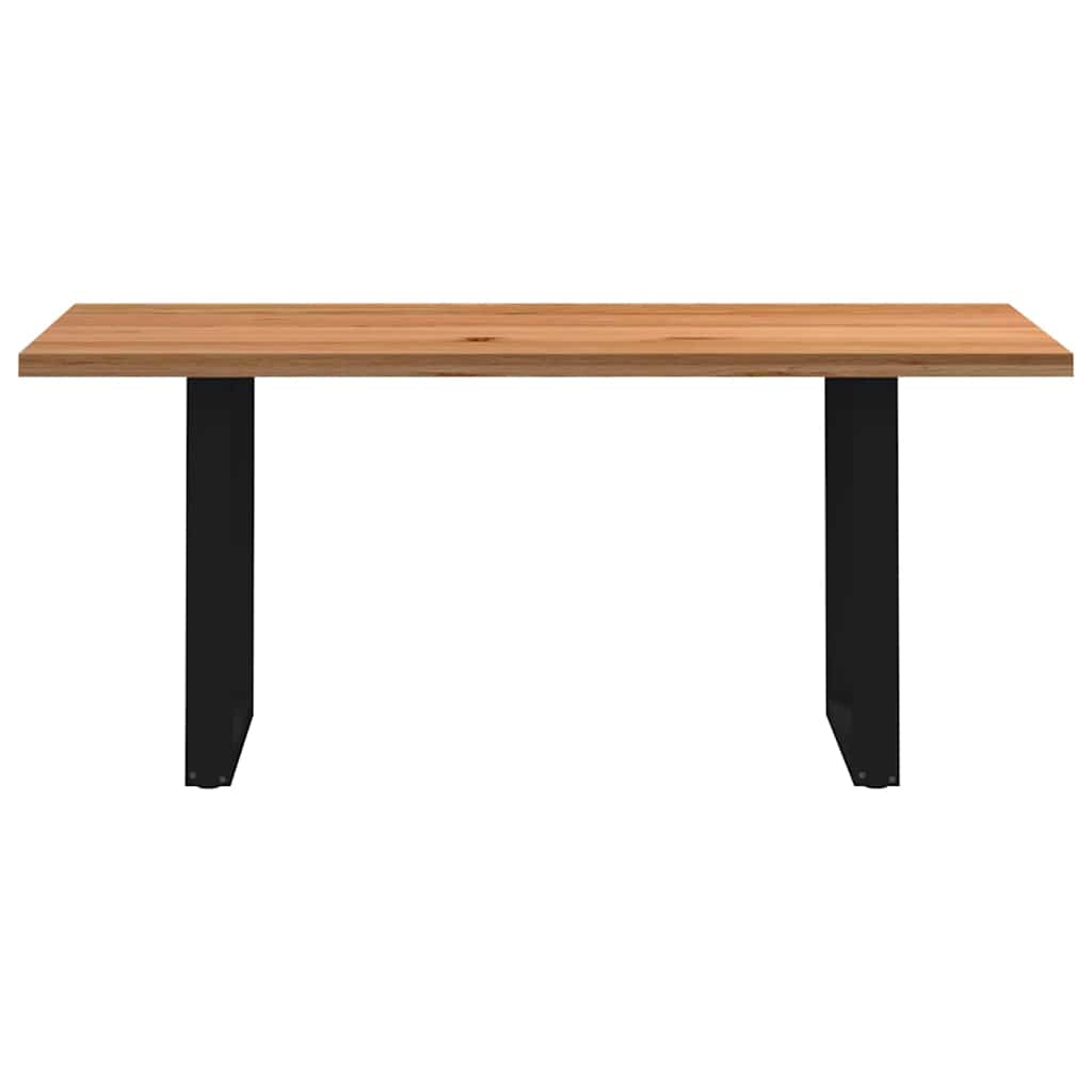 Mach jede Mahlzeit unvergesslich, indem du dich jeden Tag mit deiner Familie oder deinen Freunden um diesen Esstisch aus Holz versammelst! Robustes und langlebiges Material: Massives Eichenholz ist für seine Festigkeit, Haltbarkeit und schöne Maserung bekannt, weshalb es sich hervorragend für haltbare Möbel eignet. Durch seine natürliche Beständigkeit gegen Insektenbefall und Schimmelbildung sehen Eichenmöbel selbst nach jahrelangem Gebrauch brandneu aus.Großer Tisch: Dieser Tisch bietet mit seinen Maßen von 180 x 90 cm viel Platz zum Sitzen und ist das Herzstück deines Essbereichs.Einzigartiger Charme: Da Äste, Risse und Farbabweichungen natürliche Merkmale des Eichenholzes sind, hat jedes Stück dieses Produkts seinen ganz eigenen Charme. Auf den Bildern siehst du Beispiele für die zu erwartenden Variationen.Praktisches Design: Diese Esstischbeine sind mit verstellbaren Nivellierfüßen ausgestattet, die auch auf unebenen Böden für Stabilität sorgen und Bodenkratzer minimieren. Außerdem verfügt die Halterung über vorgebohrte Löcher und mitgelieferte Schrauben, mit denen das Bein an der Tischplatte befestigt werden kann, was die Montage erleichtert.Robustes und stabiles Gestell: Dieser Esszimmertisch hat U-förmige Beine aus pulverbeschichtetem Stahl, die für außergewöhnliche Stabilität und Sicherheit sorgen. Gut zu wissen:Jedes Stück ist ein Unikat, das in Farbe und Maserung variiert. Die Lieferung erfolgt in zufälliger Reihenfolge, wodurch die Exklusivität und Individualität deines Produkts gewährleistet wird.Äste und kleinere Fehler werden mit schwarzem Füllmaterial aufgefüllt, um eine schöne und glatte Tischoberfläche zu erhalten. Beispiele findest du in den Abbildungen.Die Tischplatte ist an den Rändern 4 cm dick, um ein robustes Aussehen zu gewährleisten, und in der Mitte 2 cm dick, um den Holzverbrauch und das Gesamtgewicht zu reduzieren.Bitte bohre die Löcher in der Mitte, nicht an den Rändern der Platte.Bitte achte darauf, die maximale Bohrtiefe von 15 mm nicht zu überschreiten, um die Tischplatte nicht zu beschädigen, da die Plattenstärke 20 mm beträgt.Wir empfehlen, einen Schraubendreher anstelle einer elektrischen Bohrmaschine zu verwenden, um Holzrisse beim Anbringen der Beine zu vermeiden.
