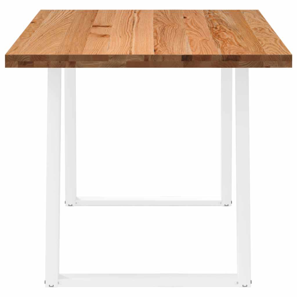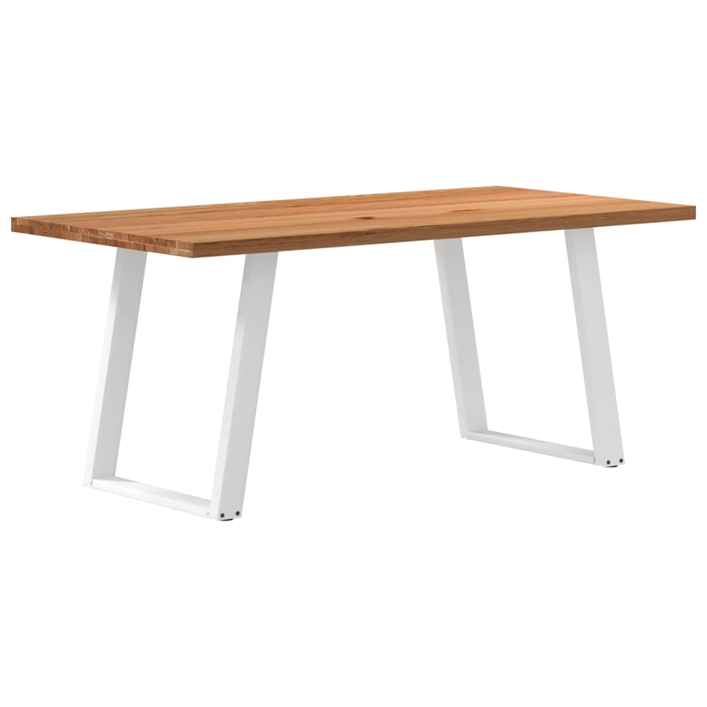 Mach jede Mahlzeit unvergesslich, indem du dich jeden Tag mit deiner Familie oder deinen Freunden um diesen Esstisch aus Holz versammelst! Robustes und langlebiges Material: Massives Eichenholz ist für seine Festigkeit, Haltbarkeit und schöne Maserung bekannt, weshalb es sich hervorragend für haltbare Möbel eignet. Durch seine natürliche Beständigkeit gegen Insektenbefall und Schimmelbildung sehen Eichenmöbel selbst nach jahrelangem Gebrauch brandneu aus.Großer Tisch: Dieser Tisch bietet mit seinen Maßen von 180 x 90 cm viel Platz zum Sitzen und ist das Herzstück deines Essbereichs.Einzigartiger Charme: Da Äste, Risse und Farbabweichungen natürliche Merkmale des Eichenholzes sind, hat jedes Stück dieses Produkts seinen ganz eigenen Charme. Auf den Bildern siehst du Beispiele für die zu erwartenden Variationen.Praktisches Design: Diese Esstischbeine sind mit verstellbaren Nivellierfüßen ausgestattet, die auch auf unebenen Böden für Stabilität sorgen und Bodenkratzer minimieren. Außerdem verfügt die Halterung über vorgebohrte Löcher und mitgelieferte Schrauben, mit denen das Bein an der Tischplatte befestigt werden kann, was die Montage erleichtert.Robustes und stabiles Gestell: Dieser Esszimmertisch hat U-förmige Beine aus pulverbeschichtetem Stahl, die für außergewöhnliche Stabilität und Sicherheit sorgen. Gut zu wissen:Jedes Stück ist ein Unikat, das in Farbe und Maserung variiert. Die Lieferung erfolgt in zufälliger Reihenfolge, wodurch die Exklusivität und Individualität deines Produkts gewährleistet wird.Äste und kleinere Fehler werden mit schwarzem Füllmaterial aufgefüllt, um eine schöne und glatte Tischoberfläche zu erhalten. Beispiele findest du in den Abbildungen.Die Tischplatte ist an den Rändern 4 cm dick, um ein robustes Aussehen zu gewährleisten, und in der Mitte 2 cm dick, um den Holzverbrauch und das Gesamtgewicht zu reduzieren.Bitte bohre die Löcher in der Mitte, nicht an den Rändern der Platte.Bitte achte darauf, die maximale Bohrtiefe von 15 mm nicht zu überschreiten, um die Tischplatte nicht zu beschädigen, da die Plattenstärke 20 mm beträgt.Wir empfehlen, einen Schraubendreher anstelle einer elektrischen Bohrmaschine zu verwenden, um Holzrisse beim Anbringen der Beine zu vermeiden.