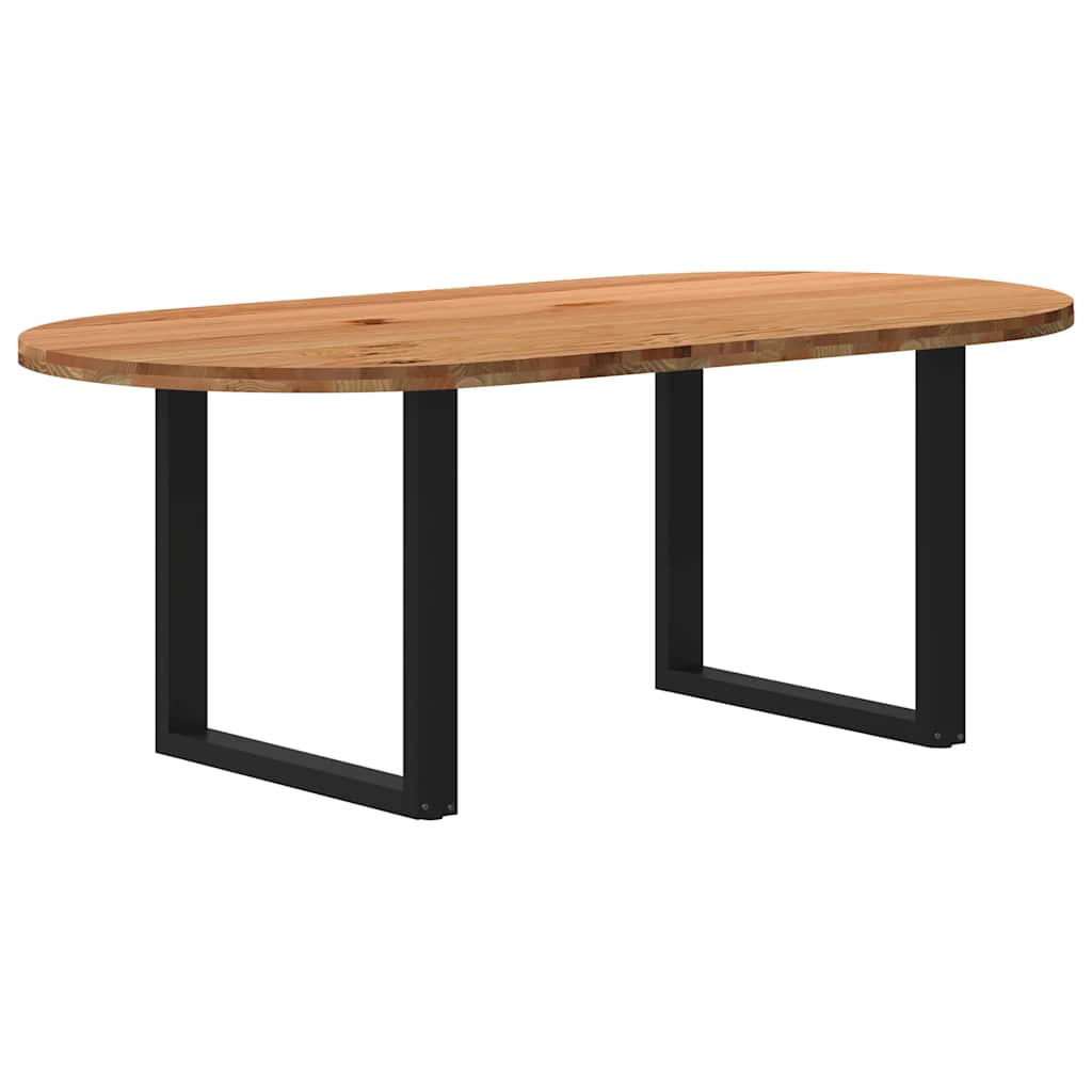 Mach jede Mahlzeit unvergesslich, indem du dich jeden Tag mit deiner Familie oder deinen Freunden um diesen Esstisch aus Holz versammelst! Robustes und langlebiges Material: Massives Eichenholz ist für seine Festigkeit, Haltbarkeit und schöne Maserung bekannt, weshalb es sich hervorragend für haltbare Möbel eignet. Durch seine natürliche Beständigkeit gegen Insektenbefall und Schimmelbildung sehen Eichenmöbel selbst nach jahrelangem Gebrauch brandneu aus.Großer Tisch: Dieser Tisch bietet mit seinen Maßen von 200 x 100 cm viel Platz zum Sitzen und ist das Herzstück deines Essbereichs.Einzigartiger Charme: Da Äste, Risse und Farbabweichungen natürliche Merkmale des Eichenholzes sind, hat jedes Stück dieses Produkts seinen ganz eigenen Charme. Auf den Bildern siehst du Beispiele für die zu erwartenden Variationen.Praktisches Design: Diese Esstischbeine sind mit verstellbaren Nivellierfüßen ausgestattet, die auch auf unebenen Böden für Stabilität sorgen und Bodenkratzer minimieren. Außerdem verfügt die Halterung über vorgebohrte Löcher und mitgelieferte Schrauben, mit denen das Bein an der Tischplatte befestigt werden kann, was die Montage erleichtert.Robustes und stabiles Gestell: Dieser Esszimmertisch hat U-förmige Beine aus pulverbeschichtetem Stahl, die für außergewöhnliche Stabilität und Sicherheit sorgen. Gut zu wissen:Jedes Stück ist ein Unikat, das in Farbe und Maserung variiert. Die Lieferung erfolgt in zufälliger Reihenfolge, wodurch die Exklusivität und Individualität deines Produkts gewährleistet wird.Äste und kleinere Fehler werden mit schwarzem Füllmaterial aufgefüllt, um eine schöne und glatte Tischoberfläche zu erhalten. Beispiele findest du in den Abbildungen.Die Tischplatte ist an den Rändern 4 cm dick, um ein robustes Aussehen zu gewährleisten, und in der Mitte 2 cm dick, um den Holzverbrauch und das Gesamtgewicht zu reduzieren.Bitte bohre die Löcher in der Mitte, nicht an den Rändern der Platte.Bitte achte darauf, die maximale Bohrtiefe von 15 mm nicht zu überschreiten, um die Tischplatte nicht zu beschädigen, da die Plattenstärke 20 mm beträgt.Wir empfehlen, einen Schraubendreher anstelle einer elektrischen Bohrmaschine zu verwenden, um Holzrisse beim Anbringen der Beine zu vermeiden.