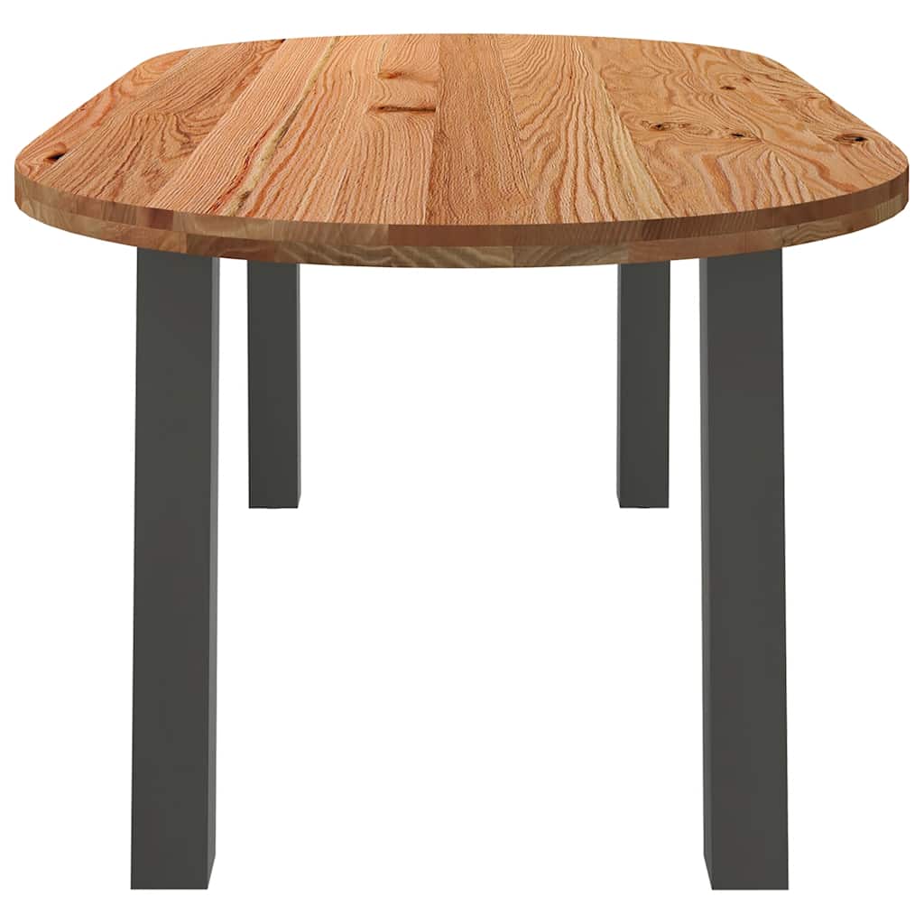 Mach jede Mahlzeit unvergesslich, indem du dich jeden Tag mit deiner Familie oder deinen Freunden um diesen Esstisch aus Holz versammelst! Robustes und langlebiges Material: Massives Eichenholz ist für seine Festigkeit, Haltbarkeit und schöne Maserung bekannt, weshalb es sich hervorragend für haltbare Möbel eignet. Durch seine natürliche Beständigkeit gegen Insektenbefall und Schimmelbildung sehen Eichenmöbel selbst nach jahrelangem Gebrauch brandneu aus.Großer Tisch: Dieser Tisch bietet mit seinen Maßen von 200 x 100 cm viel Platz zum Sitzen und ist das Herzstück deines Essbereichs.Einzigartiger Charme: Da Äste, Risse und Farbabweichungen natürliche Merkmale des Eichenholzes sind, hat jedes Stück dieses Produkts seinen ganz eigenen Charme. Auf den Bildern siehst du Beispiele für die zu erwartenden Variationen.Praktisches Design: Diese Esstischbeine sind mit verstellbaren Nivellierfüßen ausgestattet, die auch auf unebenen Böden für Stabilität sorgen und Bodenkratzer minimieren. Außerdem verfügt die Halterung über vorgebohrte Löcher und mitgelieferte Schrauben, mit denen das Bein an der Tischplatte befestigt werden kann, was die Montage erleichtert.Robustes und stabiles Gestell: Die Beine dieses Esszimmertischs sind aus pulverbeschichtetem Stahl gefertigt, der für außergewöhnliche Stabilität und Sicherheit sorgt. Gut zu wissen:Jedes Stück ist ein Unikat, das in Farbe und Maserung variiert. Die Lieferung erfolgt in zufälliger Reihenfolge, wodurch die Exklusivität und Individualität deines Produkts gewährleistet wird.Äste und kleinere Fehler werden mit schwarzem Füllmaterial aufgefüllt, um eine schöne und glatte Tischoberfläche zu erhalten. Beispiele findest du in den Abbildungen.Die Tischplatte ist an den Rändern 4 cm dick, um ein robustes Aussehen zu gewährleisten, und in der Mitte 2 cm dick, um den Holzverbrauch und das Gesamtgewicht zu reduzieren.Bitte bohre die Löcher in der Mitte, nicht an den Rändern der Platte.Bitte achte darauf, die maximale Bohrtiefe von 15 mm nicht zu überschreiten, um die Tischplatte nicht zu beschädigen, da die Plattenstärke 20 mm beträgt.Wir empfehlen, einen Schraubendreher anstelle einer elektrischen Bohrmaschine zu verwenden, um Holzrisse beim Anbringen der Beine zu vermeiden.