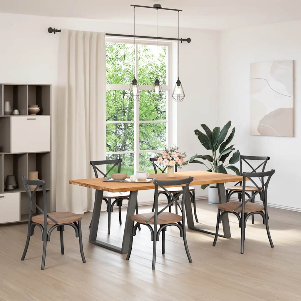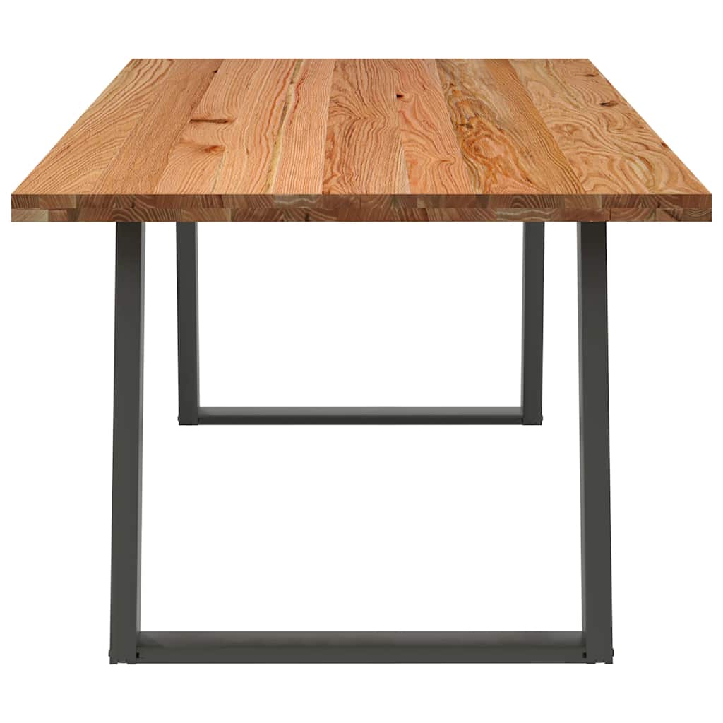 Mach jede Mahlzeit unvergesslich, indem du dich jeden Tag mit deiner Familie oder deinen Freunden um diesen Esstisch aus Holz versammelst! Robustes und langlebiges Material: Massives Eichenholz ist für seine Festigkeit, Haltbarkeit und schöne Maserung bekannt, weshalb es sich hervorragend für haltbare Möbel eignet. Durch seine natürliche Beständigkeit gegen Insektenbefall und Schimmelbildung sehen Eichenmöbel selbst nach jahrelangem Gebrauch brandneu aus.Großer Tisch: Dieser Tisch bietet mit seinen Maßen von 200 x 100 cm viel Platz zum Sitzen und ist das Herzstück deines Essbereichs.Einzigartiger Charme: Da Äste, Risse und Farbabweichungen natürliche Merkmale des Eichenholzes sind, hat jedes Stück dieses Produkts seinen ganz eigenen Charme. Auf den Bildern siehst du Beispiele für die zu erwartenden Variationen.Praktisches Design: Diese Esstischbeine sind mit verstellbaren Nivellierfüßen ausgestattet, die auch auf unebenen Böden für Stabilität sorgen und Bodenkratzer minimieren. Außerdem verfügt die Halterung über vorgebohrte Löcher und mitgelieferte Schrauben, mit denen das Bein an der Tischplatte befestigt werden kann, was die Montage erleichtert.Robustes und stabiles Gestell: Dieser Esszimmertisch hat U-förmige Beine aus pulverbeschichtetem Stahl, die für außergewöhnliche Stabilität und Sicherheit sorgen. Gut zu wissen:Jedes Stück ist ein Unikat, das in Farbe und Maserung variiert. Die Lieferung erfolgt in zufälliger Reihenfolge, wodurch die Exklusivität und Individualität deines Produkts gewährleistet wird.Äste und kleinere Fehler werden mit schwarzem Füllmaterial aufgefüllt, um eine schöne und glatte Tischoberfläche zu erhalten. Beispiele findest du in den Abbildungen.Die Tischplatte ist an den Rändern 4 cm dick, um ein robustes Aussehen zu gewährleisten, und in der Mitte 2 cm dick, um den Holzverbrauch und das Gesamtgewicht zu reduzieren.Bitte bohre die Löcher in der Mitte, nicht an den Rändern der Platte.Bitte achte darauf, die maximale Bohrtiefe von 15 mm nicht zu überschreiten, um die Tischplatte nicht zu beschädigen, da die Plattenstärke 20 mm beträgt.Wir empfehlen, einen Schraubendreher anstelle einer elektrischen Bohrmaschine zu verwenden, um Holzrisse beim Anbringen der Beine zu vermeiden.