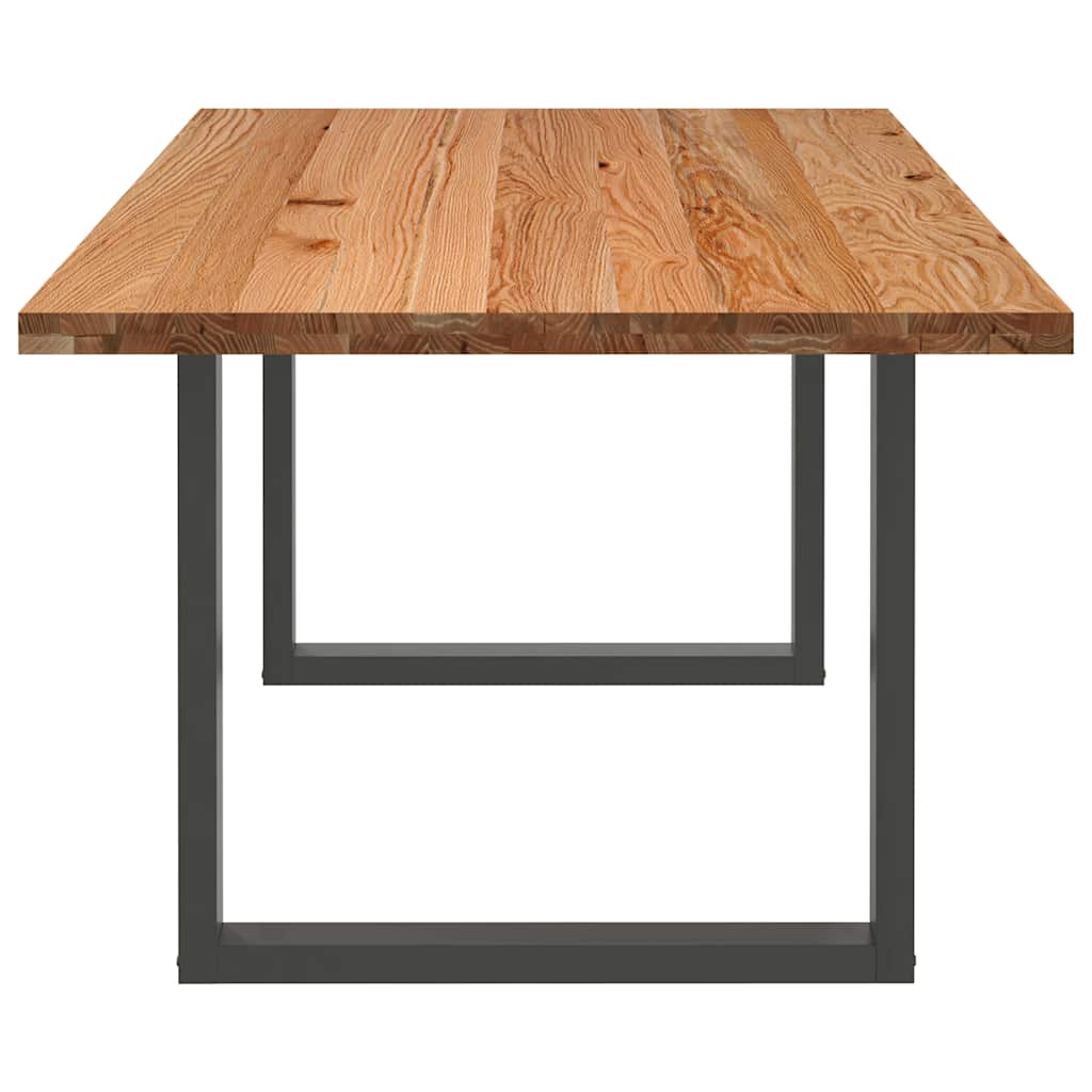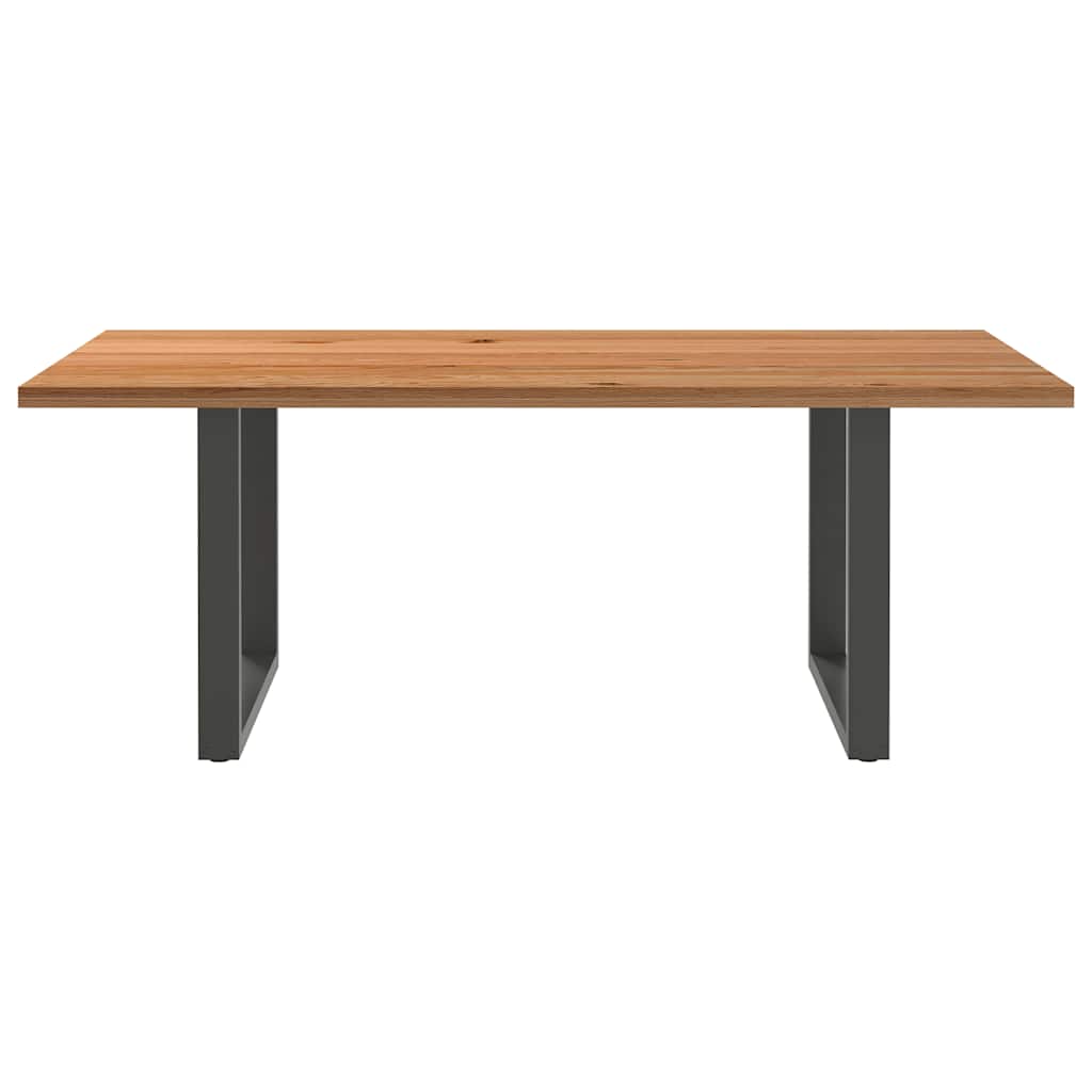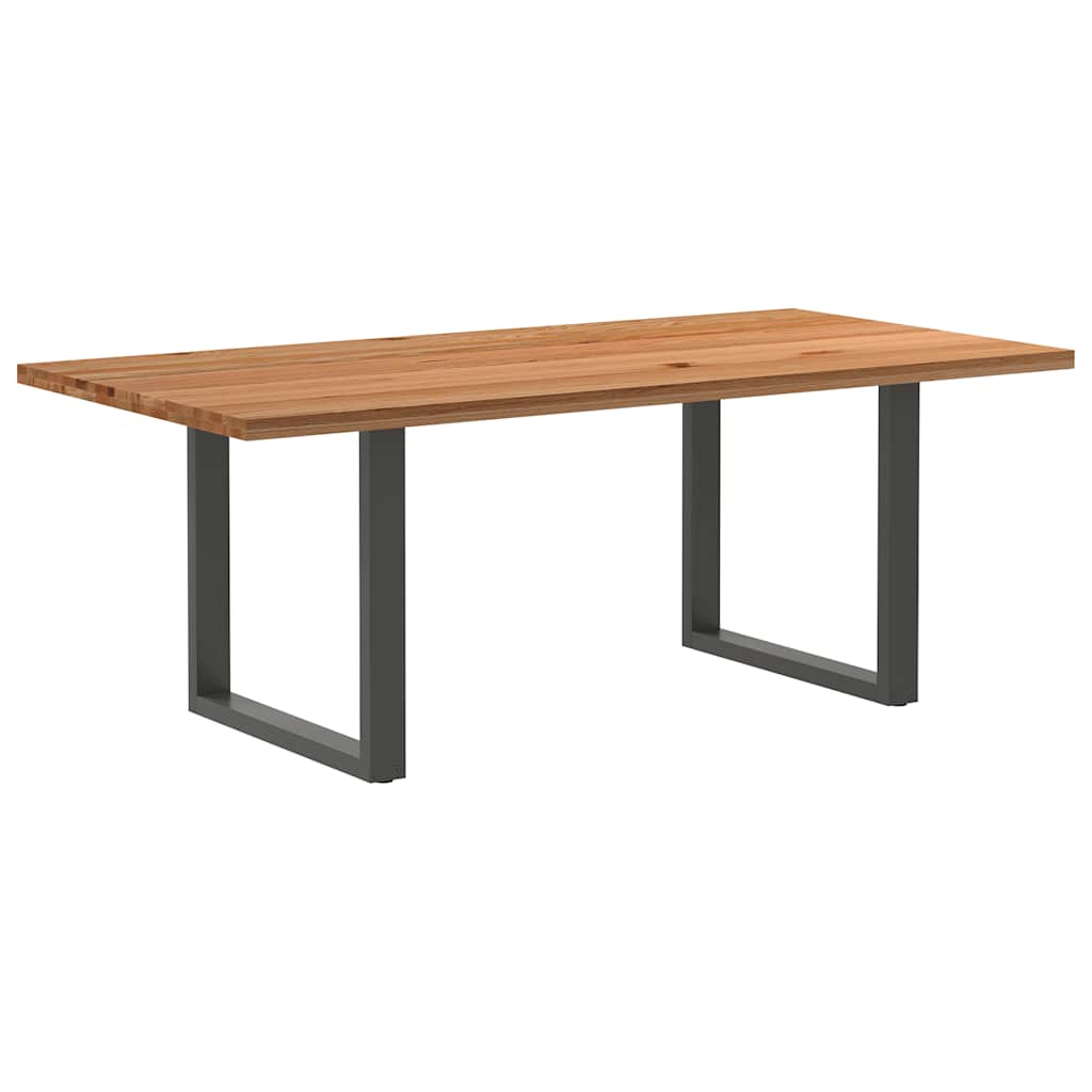 Mach jede Mahlzeit unvergesslich, indem du dich jeden Tag mit deiner Familie oder deinen Freunden um diesen Esstisch aus Holz versammelst! Robustes und langlebiges Material: Massives Eichenholz ist für seine Festigkeit, Haltbarkeit und schöne Maserung bekannt, weshalb es sich hervorragend für haltbare Möbel eignet. Durch seine natürliche Beständigkeit gegen Insektenbefall und Schimmelbildung sehen Eichenmöbel selbst nach jahrelangem Gebrauch brandneu aus.Großer Tisch: Dieser Tisch bietet mit seinen Maßen von 200 x 100 cm viel Platz zum Sitzen und ist das Herzstück deines Essbereichs.Einzigartiger Charme: Da Äste, Risse und Farbabweichungen natürliche Merkmale des Eichenholzes sind, hat jedes Stück dieses Produkts seinen ganz eigenen Charme. Auf den Bildern siehst du Beispiele für die zu erwartenden Variationen.Praktisches Design: Diese Esstischbeine sind mit verstellbaren Nivellierfüßen ausgestattet, die auch auf unebenen Böden für Stabilität sorgen und Bodenkratzer minimieren. Außerdem verfügt die Halterung über vorgebohrte Löcher und mitgelieferte Schrauben, mit denen das Bein an der Tischplatte befestigt werden kann, was die Montage erleichtert.Robustes und stabiles Gestell: Dieser Esszimmertisch hat U-förmige Beine aus pulverbeschichtetem Stahl, die für außergewöhnliche Stabilität und Sicherheit sorgen. Gut zu wissen:Jedes Stück ist ein Unikat, das in Farbe und Maserung variiert. Die Lieferung erfolgt in zufälliger Reihenfolge, wodurch die Exklusivität und Individualität deines Produkts gewährleistet wird.Äste und kleinere Fehler werden mit schwarzem Füllmaterial aufgefüllt, um eine schöne und glatte Tischoberfläche zu erhalten. Beispiele findest du in den Abbildungen.Die Tischplatte ist an den Rändern 4 cm dick, um ein robustes Aussehen zu gewährleisten, und in der Mitte 2 cm dick, um den Holzverbrauch und das Gesamtgewicht zu reduzieren.Bitte bohre die Löcher in der Mitte, nicht an den Rändern der Platte.Bitte achte darauf, die maximale Bohrtiefe von 15 mm nicht zu überschreiten, um die Tischplatte nicht zu beschädigen, da die Plattenstärke 20 mm beträgt.Wir empfehlen, einen Schraubendreher anstelle einer elektrischen Bohrmaschine zu verwenden, um Holzrisse beim Anbringen der Beine zu vermeiden.