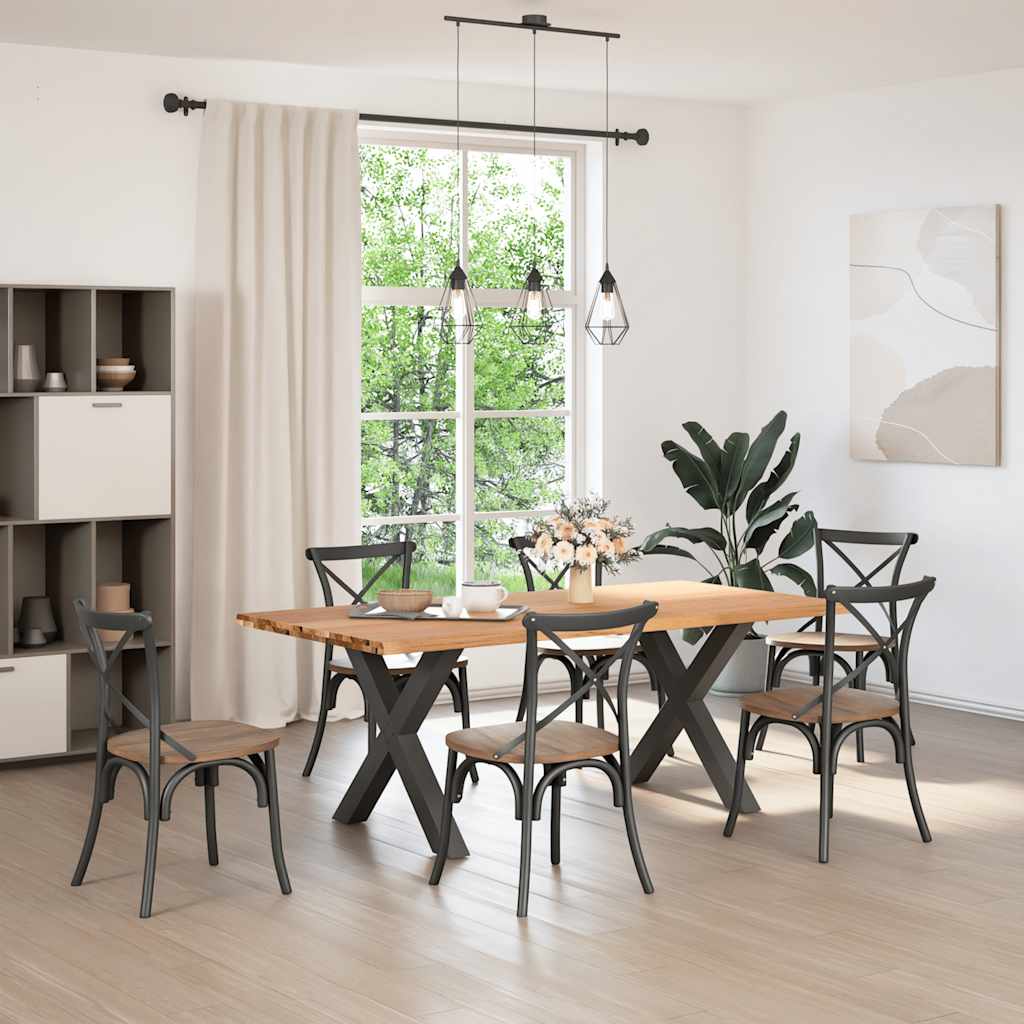 Mach jede Mahlzeit unvergesslich, indem du dich jeden Tag mit deiner Familie oder deinen Freunden um diesen Esstisch aus Holz versammelst! Robustes und langlebiges Material: Massives Eichenholz ist für seine Festigkeit, Haltbarkeit und schöne Maserung bekannt, weshalb es sich hervorragend für haltbare Möbel eignet. Durch seine natürliche Beständigkeit gegen Insektenbefall und Schimmelbildung sehen Eichenmöbel selbst nach jahrelangem Gebrauch brandneu aus.Großer Tisch: Dieser Tisch bietet mit seinen Maßen von 200 x 100 cm viel Platz zum Sitzen und ist das Herzstück deines Essbereichs.Naturkanten: Diese Tischplatte hat geschwungene Kanten, die von der natürlichen Form eines Baumes inspiriert sind und deinem Tisch eine charmante Note verleihen.Einzigartiger Charme: Da Äste, Risse und Farbabweichungen natürliche Merkmale des Eichenholzes sind, hat jedes Stück dieses Produkts seinen ganz eigenen Charme. Auf den Bildern siehst du Beispiele für die zu erwartenden Variationen.Praktisches Design: Diese Esstischbeine sind mit verstellbaren Nivellierfüßen ausgestattet, die auch auf unebenen Böden für Stabilität sorgen und Bodenkratzer minimieren. Außerdem verfügt die Halterung über vorgebohrte Löcher und mitgelieferte Schrauben, mit denen das Bein an der Tischplatte befestigt werden kann, was die Montage erleichtert. Gut zu wissen:Jedes Stück ist ein Unikat, das in Farbe und Maserung variiert. Die Lieferung erfolgt in zufälliger Reihenfolge, wodurch die Exklusivität und Individualität deines Produkts gewährleistet wird.Äste und kleinere Fehler werden mit schwarzem Füllmaterial aufgefüllt, um eine schöne und glatte Tischoberfläche zu erhalten. Beispiele findest du in den Abbildungen.Die Tischplatte ist an den Rändern 4 cm dick, um ein robustes Aussehen zu gewährleisten, und in der Mitte 2 cm dick, um den Holzverbrauch und das Gesamtgewicht zu reduzieren.Bitte bohre die Löcher in der Mitte, nicht an den Rändern der Platte.Bitte achte darauf, die maximale Bohrtiefe von 15 mm nicht zu überschreiten, um die Tischplatte nicht zu beschädigen, da die Plattenstärke 20 mm beträgt.Wir empfehlen, einen Schraubendreher anstelle einer elektrischen Bohrmaschine zu verwenden, um Holzrisse beim Anbringen der Beine zu vermeiden.