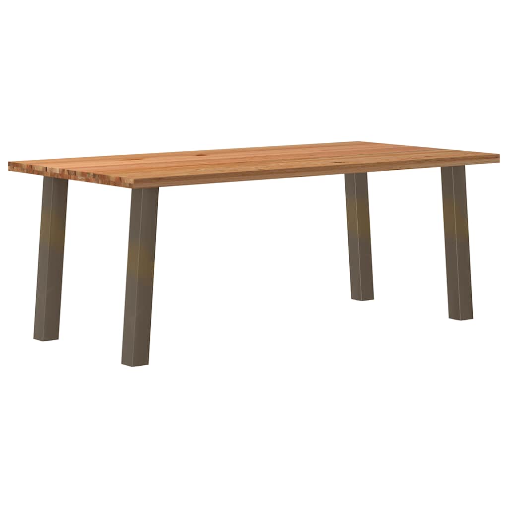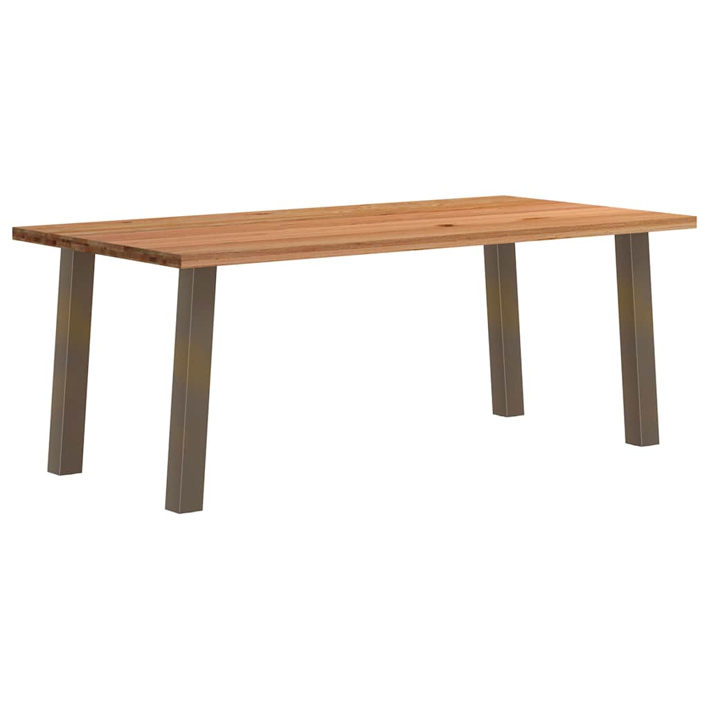 Mach jede Mahlzeit unvergesslich, indem du dich jeden Tag mit deiner Familie oder deinen Freunden um diesen Esstisch aus Holz versammelst!Robustes und langlebiges Material: Massives Eichenholz ist für seine Festigkeit, Haltbarkeit und schöne Maserung bekannt, weshalb es sich hervorragend für haltbare Möbel eignet. Durch seine natürliche Beständigkeit gegen Insektenbefall und Schimmelbildung sehen Eichenmöbel selbst nach jahrelangem Gebrauch brandneu aus.Großer Tisch: Dieser Tisch bietet mit seinen Maßen von 200 x 100 cm viel Platz zum Sitzen und ist das Herzstück deines Essbereichs.Pflegeleicht: Dank ihrer glatten Oberfläche lässt sich die Arbeitsplatte mit einem feuchten Tuch leicht reinigen und erfordert wenig Pflege.Einzigartiger Charme: Da Äste, Risse und Farbabweichungen natürliche Merkmale des Eichenholzes sind, hat jedes Stück dieses Produkts seinen ganz eigenen Charme. Auf den Bildern siehst du Beispiele für die zu erwartenden Variationen.Gut zu wissen:Jedes Stück ist ein Unikat, das in Farbe und Maserung variiert. Die Lieferung erfolgt in zufälliger Reihenfolge, wodurch die Exklusivität und Individualität deines Produkts gewährleistet wird.Äste und kleinere Fehler werden mit schwarzem Füllmaterial aufgefüllt, um eine schöne und glatte Tischoberfläche zu erhalten. Beispiele findest du in den Abbildungen.Die Tischplatte ist an den Rändern 4 cm dick, um ein robustes Aussehen zu gewährleisten, und in der Mitte 2 cm dick, um den Holzverbrauch und das Gesamtgewicht zu reduzieren.Bitte bohre die Löcher in der Mitte, nicht an den Rändern der Platte.Bitte achte darauf, die maximale Bohrtiefe von 15 mm nicht zu überschreiten, um die Tischplatte nicht zu beschädigen, da die Plattenstärke 20 mm beträgt.Wir empfehlen, einen Schraubendreher anstelle einer elektrischen Bohrmaschine zu verwenden, um Holzrisse beim Anbringen der Beine zu vermeiden.