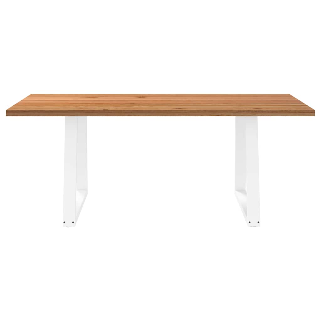 Mach jede Mahlzeit unvergesslich, indem du dich jeden Tag mit deiner Familie oder deinen Freunden um diesen Esstisch aus Holz versammelst! Robustes und langlebiges Material: Massives Eichenholz ist für seine Festigkeit, Haltbarkeit und schöne Maserung bekannt, weshalb es sich hervorragend für haltbare Möbel eignet. Durch seine natürliche Beständigkeit gegen Insektenbefall und Schimmelbildung sehen Eichenmöbel selbst nach jahrelangem Gebrauch brandneu aus.Großer Tisch: Dieser Küchentisch bietet mit seinen Maßen von 200 x 100 cm viel Platz zum Sitzen und ist das Herzstück deines Essbereichs.Einzigartiger Charme: Da Äste, Risse und Farbabweichungen natürliche Merkmale des Eichenholzes sind, hat jedes Stück dieses Produkts seinen ganz eigenen Charme. Auf den Bildern siehst du Beispiele für die zu erwartenden Variationen.Praktisches Design: Diese Esstischbeine sind mit verstellbaren Nivellierfüßen ausgestattet, die auch auf unebenen Böden für Stabilität sorgen und Bodenkratzer minimieren. Außerdem verfügt die Halterung über vorgebohrte Löcher und mitgelieferte Schrauben, mit denen das Bein an der Tischplatte befestigt werden kann, was die Montage erleichtert. Gut zu wissen:Jedes Stück ist ein Unikat, das in Farbe und Maserung variiert. Die Lieferung erfolgt in zufälliger Reihenfolge, wodurch die Exklusivität und Individualität deines Produkts gewährleistet wird.Äste und kleinere Fehler werden mit schwarzem Füllmaterial aufgefüllt, um eine schöne und glatte Tischoberfläche zu erhalten. Beispiele findest du in den Abbildungen.Die Tischplatte ist an den Rändern 4 cm dick, um ein robustes Aussehen zu gewährleisten, und in der Mitte 2 cm dick, um den Holzverbrauch und das Gesamtgewicht zu reduzieren.Bitte bohre die Löcher in der Mitte, nicht an den Rändern der Platte.Bitte achte darauf, die maximale Bohrtiefe von 15 mm nicht zu überschreiten, um die Tischplatte nicht zu beschädigen, da die Plattenstärke 20 mm beträgt.Wir empfehlen, einen Schraubendreher anstelle einer elektrischen Bohrmaschine zu verwenden, um Holzrisse beim Anbringen der Beine zu vermeiden.