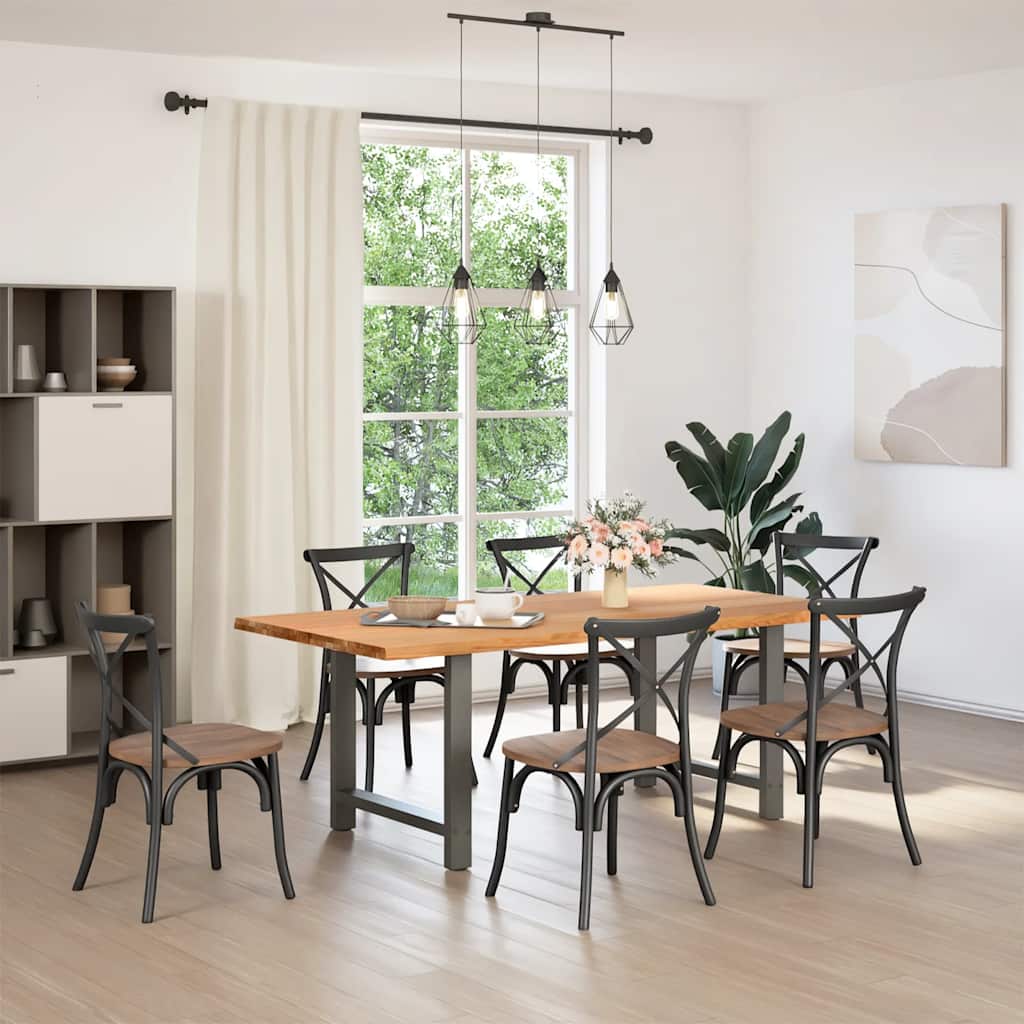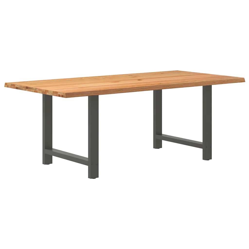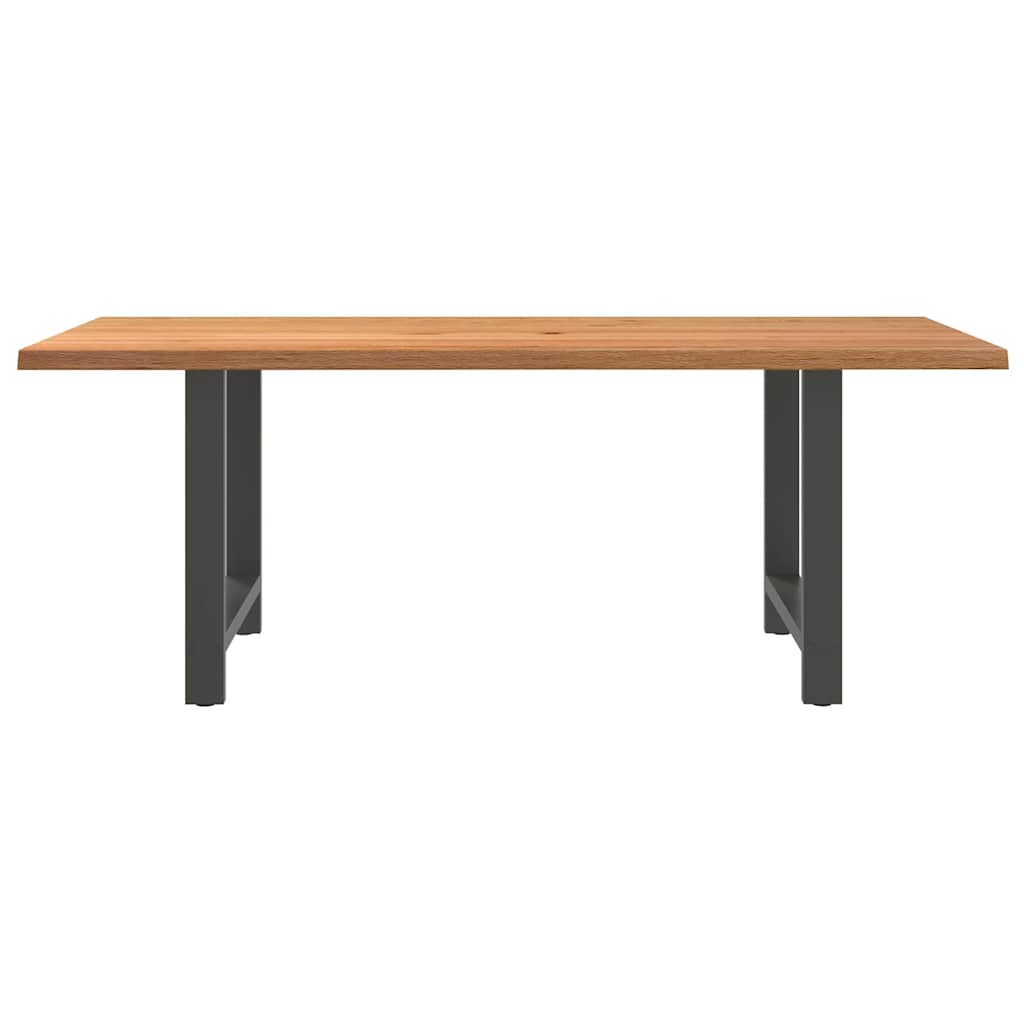 Mach jede Mahlzeit unvergesslich, indem du dich jeden Tag mit deiner Familie oder deinen Freunden um diesen Esstisch aus Holz versammelst! Robustes und langlebiges Material: Massives Eichenholz ist für seine Festigkeit, Haltbarkeit und schöne Maserung bekannt, weshalb es sich hervorragend für haltbare Möbel eignet. Durch seine natürliche Beständigkeit gegen Insektenbefall und Schimmelbildung sehen Eichenmöbel selbst nach jahrelangem Gebrauch brandneu aus.Großer Tisch: Dieser Tisch bietet mit seinen Maßen von 200 x 100 cm viel Platz zum Sitzen und ist das Herzstück deines Essbereichs.Einzigartiger Charme: Da Äste, Risse und Farbabweichungen natürliche Merkmale des Eichenholzes sind, hat jedes Stück dieses Produkts seinen ganz eigenen Charme. Auf den Bildern siehst du Beispiele für die zu erwartenden Variationen.Praktisches Design: Diese Esstischbeine sind mit verstellbaren Nivellierfüßen ausgestattet, die auch auf unebenen Böden für Stabilität sorgen und Bodenkratzer minimieren. Außerdem verfügt die Halterung über vorgebohrte Löcher und mitgelieferte Schrauben, mit denen das Bein an der Tischplatte befestigt werden kann, was die Montage erleichtert.Robustes und stabiles Gestell: Dieser Esszimmertisch hat H-förmige Beine aus pulverbeschichtetem Stahl, die für außergewöhnliche Stabilität und Sicherheit sorgen. Gut zu wissen:Jedes Stück ist ein Unikat, das in Farbe und Maserung variiert. Die Lieferung erfolgt in zufälliger Reihenfolge, wodurch die Exklusivität und Individualität deines Produkts gewährleistet wird.Äste und kleinere Fehler werden mit schwarzem Füllmaterial aufgefüllt, um eine schöne und glatte Tischoberfläche zu erhalten. Beispiele findest du in den Abbildungen.Die Tischplatte ist an den Rändern 4 cm dick, um ein robustes Aussehen zu gewährleisten, und in der Mitte 2 cm dick, um den Holzverbrauch und das Gesamtgewicht zu reduzieren.Bitte bohre die Löcher in der Mitte, nicht an den Rändern der Platte.Bitte achte darauf, die maximale Bohrtiefe von 15 mm nicht zu überschreiten, um die Tischplatte nicht zu beschädigen, da die Plattenstärke 20 mm beträgt.Wir empfehlen, einen Schraubendreher anstelle einer elektrischen Bohrmaschine zu verwenden, um Holzrisse beim Anbringen der Beine zu vermeiden.
