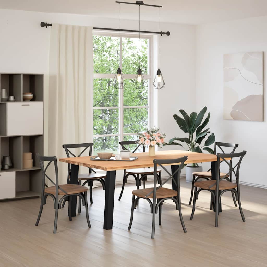 Mach jede Mahlzeit unvergesslich, indem du dich jeden Tag mit deiner Familie oder deinen Freunden um diesen Esstisch aus Holz versammelst! Robustes und langlebiges Material: Massives Eichenholz ist für seine Festigkeit, Haltbarkeit und schöne Maserung bekannt, weshalb es sich hervorragend für haltbare Möbel eignet. Durch seine natürliche Beständigkeit gegen Insektenbefall und Schimmelbildung sehen Eichenmöbel selbst nach jahrelangem Gebrauch brandneu aus.Großer Tisch: Dieser Tisch bietet mit seinen Maßen von 200 x 120 cm viel Platz zum Sitzen und ist das Herzstück deines Essbereichs.Naturkanten: Diese Tischplatte hat geschwungene Kanten, die von der natürlichen Form eines Baumes inspiriert sind und deinem Tisch eine charmante Note verleihen.Einzigartiger Charme: Da Äste, Risse und Farbabweichungen natürliche Merkmale des Eichenholzes sind, hat jedes Stück dieses Produkts seinen ganz eigenen Charme. Auf den Bildern siehst du Beispiele für die zu erwartenden Variationen.Praktisches Design: Diese Esstischbeine sind mit verstellbaren Nivellierfüßen ausgestattet, die auch auf unebenen Böden für Stabilität sorgen und Bodenkratzer minimieren. Außerdem verfügt die Halterung über vorgebohrte Löcher und mitgelieferte Schrauben, mit denen das Bein an der Tischplatte befestigt werden kann, was die Montage erleichtert. Gut zu wissen:Jedes Stück ist ein Unikat, das in Farbe und Maserung variiert. Die Lieferung erfolgt in zufälliger Reihenfolge, wodurch die Exklusivität und Individualität deines Produkts gewährleistet wird.Äste und kleinere Fehler werden mit schwarzem Füllmaterial aufgefüllt, um eine schöne und glatte Tischoberfläche zu erhalten. Beispiele findest du in den Abbildungen.Die Tischplatte ist an den Rändern 4 cm dick, um ein robustes Aussehen zu gewährleisten, und in der Mitte 2 cm dick, um den Holzverbrauch und das Gesamtgewicht zu reduzieren.Bitte bohre die Löcher in der Mitte, nicht an den Rändern der Platte.Bitte achte darauf, die maximale Bohrtiefe von 15 mm nicht zu überschreiten, um die Tischplatte nicht zu beschädigen, da die Plattenstärke 20 mm beträgt.Wir empfehlen, einen Schraubendreher anstelle einer elektrischen Bohrmaschine zu verwenden, um Holzrisse beim Anbringen der Beine zu vermeiden.