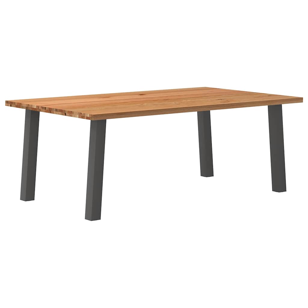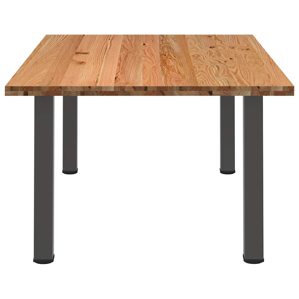 Mach jede Mahlzeit unvergesslich, indem du dich jeden Tag mit deiner Familie oder deinen Freunden um diesen Esstisch aus Holz versammelst!Robustes und langlebiges Material: Massives Eichenholz ist für seine Festigkeit, Haltbarkeit und schöne Maserung bekannt, weshalb es sich hervorragend für haltbare Möbel eignet. Durch seine natürliche Beständigkeit gegen Insektenbefall und Schimmelbildung sehen Eichenmöbel selbst nach jahrelangem Gebrauch brandneu aus.Großer Tisch: Dieser Tisch bietet mit seinen Maßen von 200 x 120 cm viel Platz zum Sitzen und ist das Herzstück deines Essbereichs.Pflegeleicht: Dank ihrer glatten Oberfläche lässt sich die Arbeitsplatte mit einem feuchten Tuch leicht reinigen und erfordert wenig Pflege.Einzigartiger Charme: Da Äste, Risse und Farbabweichungen natürliche Merkmale des Eichenholzes sind, hat jedes Stück dieses Produkts seinen ganz eigenen Charme. Auf den Bildern siehst du Beispiele für die zu erwartenden Variationen.Gut zu wissen:Jedes Stück ist ein Unikat, das in Farbe und Maserung variiert. Die Lieferung erfolgt in zufälliger Reihenfolge, wodurch die Exklusivität und Individualität deines Produkts gewährleistet wird.Äste und kleinere Fehler werden mit schwarzem Füllmaterial aufgefüllt, um eine schöne und glatte Tischoberfläche zu erhalten. Beispiele findest du in den Abbildungen.Die Tischplatte ist an den Rändern 4 cm dick, um ein robustes Aussehen zu gewährleisten, und in der Mitte 2 cm dick, um den Holzverbrauch und das Gesamtgewicht zu reduzieren.Bitte bohre die Löcher in der Mitte, nicht an den Rändern der Platte.Bitte achte darauf, die maximale Bohrtiefe von 15 mm nicht zu überschreiten, um die Tischplatte nicht zu beschädigen, da die Plattenstärke 20 mm beträgt.Wir empfehlen, einen Schraubendreher anstelle einer elektrischen Bohrmaschine zu verwenden, um Holzrisse beim Anbringen der Beine zu vermeiden.