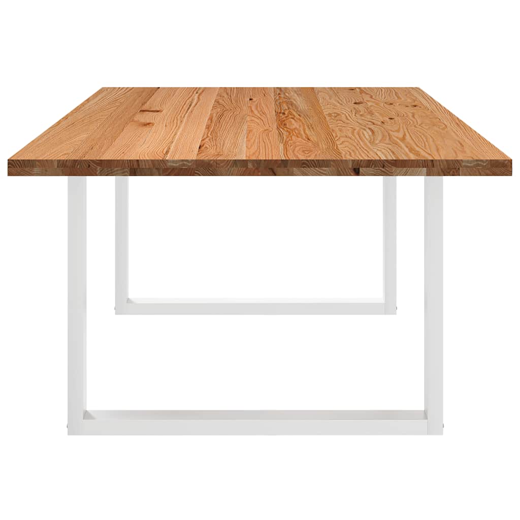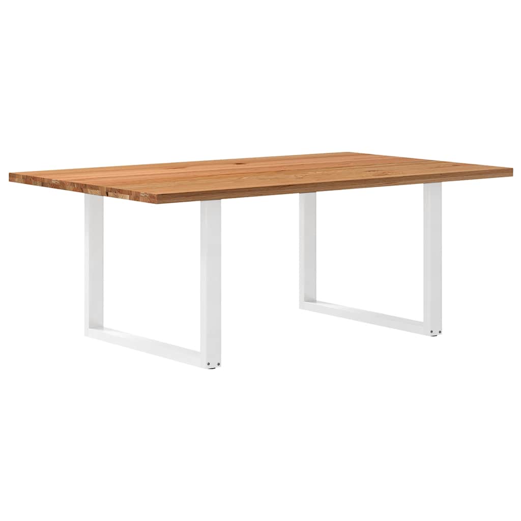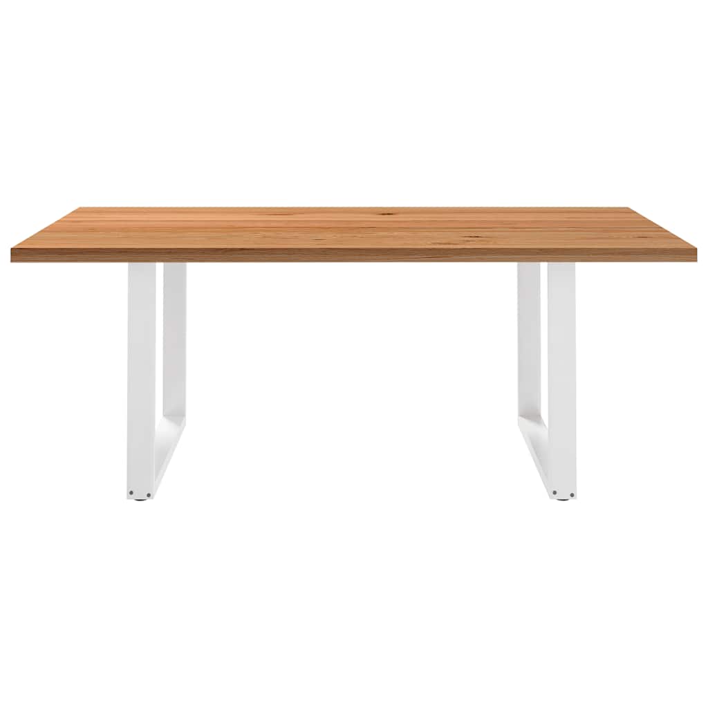 Mach jede Mahlzeit unvergesslich, indem du dich jeden Tag mit deiner Familie oder deinen Freunden um diesen Esstisch aus Holz versammelst! Robustes und langlebiges Material: Massives Eichenholz ist für seine Festigkeit, Haltbarkeit und schöne Maserung bekannt, weshalb es sich hervorragend für haltbare Möbel eignet. Durch seine natürliche Beständigkeit gegen Insektenbefall und Schimmelbildung sehen Eichenmöbel selbst nach jahrelangem Gebrauch brandneu aus.Großer Tisch: Dieser Tisch bietet mit seinen Maßen von 200 x 120 cm viel Platz zum Sitzen und ist das Herzstück deines Essbereichs.Einzigartiger Charme: Da Äste, Risse und Farbabweichungen natürliche Merkmale des Eichenholzes sind, hat jedes Stück dieses Produkts seinen ganz eigenen Charme. Auf den Bildern siehst du Beispiele für die zu erwartenden Variationen.Praktisches Design: Diese Esstischbeine sind mit verstellbaren Nivellierfüßen ausgestattet, die auch auf unebenen Böden für Stabilität sorgen und Bodenkratzer minimieren. Außerdem verfügt die Halterung über vorgebohrte Löcher und mitgelieferte Schrauben, mit denen das Bein an der Tischplatte befestigt werden kann, was die Montage erleichtert.Robustes und stabiles Gestell: Dieser Esszimmertisch hat U-förmige Beine aus pulverbeschichtetem Stahl, die für außergewöhnliche Stabilität und Sicherheit sorgen. Gut zu wissen:Jedes Stück ist ein Unikat, das in Farbe und Maserung variiert. Die Lieferung erfolgt in zufälliger Reihenfolge, wodurch die Exklusivität und Individualität deines Produkts gewährleistet wird.Äste und kleinere Fehler werden mit schwarzem Füllmaterial aufgefüllt, um eine schöne und glatte Tischoberfläche zu erhalten. Beispiele findest du in den Abbildungen.Die Tischplatte ist an den Rändern 4 cm dick, um ein robustes Aussehen zu gewährleisten, und in der Mitte 2 cm dick, um den Holzverbrauch und das Gesamtgewicht zu reduzieren.Bitte bohre die Löcher in der Mitte, nicht an den Rändern der Platte.Bitte achte darauf, die maximale Bohrtiefe von 15 mm nicht zu überschreiten, um die Tischplatte nicht zu beschädigen, da die Plattenstärke 20 mm beträgt.Wir empfehlen, einen Schraubendreher anstelle einer elektrischen Bohrmaschine zu verwenden, um Holzrisse beim Anbringen der Beine zu vermeiden.