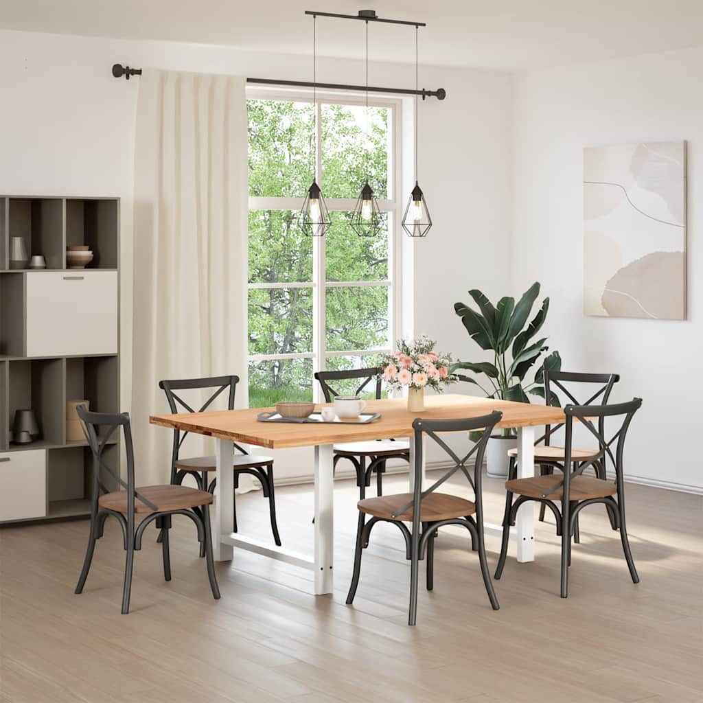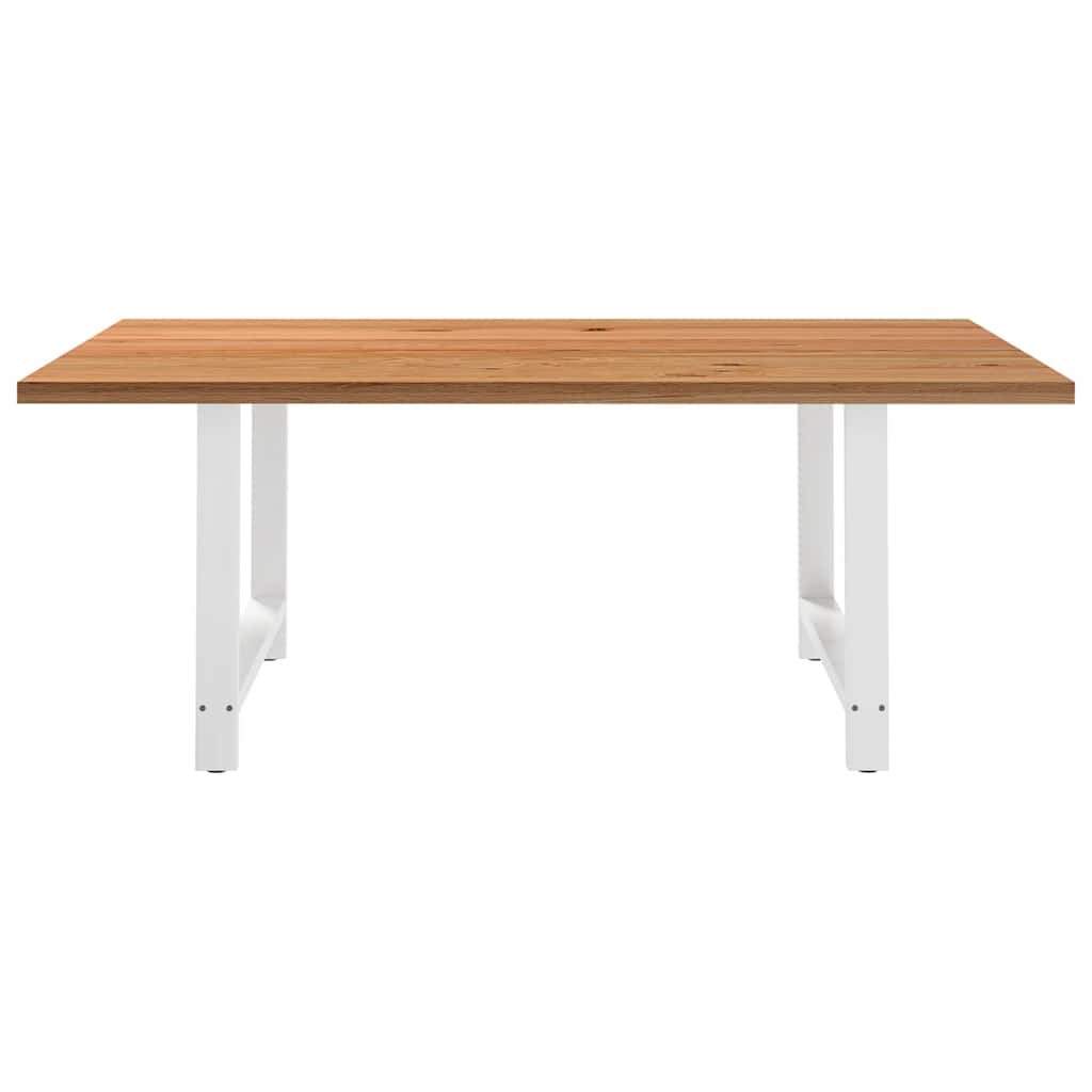 Mach jede Mahlzeit unvergesslich, indem du dich jeden Tag mit deiner Familie oder deinen Freunden um diesen Esstisch aus Holz versammelst! Robustes und langlebiges Material: Massives Eichenholz ist für seine Festigkeit, Haltbarkeit und schöne Maserung bekannt, weshalb es sich hervorragend für haltbare Möbel eignet. Durch seine natürliche Beständigkeit gegen Insektenbefall und Schimmelbildung sehen Eichenmöbel selbst nach jahrelangem Gebrauch brandneu aus.Großer Tisch: Dieser Tisch bietet mit seinen Maßen von 200 x 120 cm viel Platz zum Sitzen und ist das Herzstück deines Essbereichs.Einzigartiger Charme: Da Äste, Risse und Farbabweichungen natürliche Merkmale des Eichenholzes sind, hat jedes Stück dieses Produkts seinen ganz eigenen Charme. Auf den Bildern siehst du Beispiele für die zu erwartenden Variationen.Praktisches Design: Diese Esstischbeine sind mit verstellbaren Nivellierfüßen ausgestattet, die auch auf unebenen Böden für Stabilität sorgen und Bodenkratzer minimieren. Außerdem verfügt die Halterung über vorgebohrte Löcher und mitgelieferte Schrauben, mit denen das Bein an der Tischplatte befestigt werden kann, was die Montage erleichtert.Robustes und stabiles Gestell: Dieser Esszimmertisch hat U-förmige Beine aus pulverbeschichtetem Stahl, die für außergewöhnliche Stabilität und Sicherheit sorgen. Gut zu wissen:Jedes Stück ist ein Unikat, das in Farbe und Maserung variiert. Die Lieferung erfolgt in zufälliger Reihenfolge, wodurch die Exklusivität und Individualität deines Produkts gewährleistet wird.Äste und kleinere Fehler werden mit schwarzem Füllmaterial aufgefüllt, um eine schöne und glatte Tischoberfläche zu erhalten. Beispiele findest du in den Abbildungen.Die Tischplatte ist an den Rändern 4 cm dick, um ein robustes Aussehen zu gewährleisten, und in der Mitte 2 cm dick, um den Holzverbrauch und das Gesamtgewicht zu reduzieren.Bitte bohre die Löcher in der Mitte, nicht an den Rändern der Platte.Bitte achte darauf, die maximale Bohrtiefe von 15 mm nicht zu überschreiten, um die Tischplatte nicht zu beschädigen, da die Plattenstärke 20 mm beträgt.Wir empfehlen, einen Schraubendreher anstelle einer elektrischen Bohrmaschine zu verwenden, um Holzrisse beim Anbringen der Beine zu vermeiden.