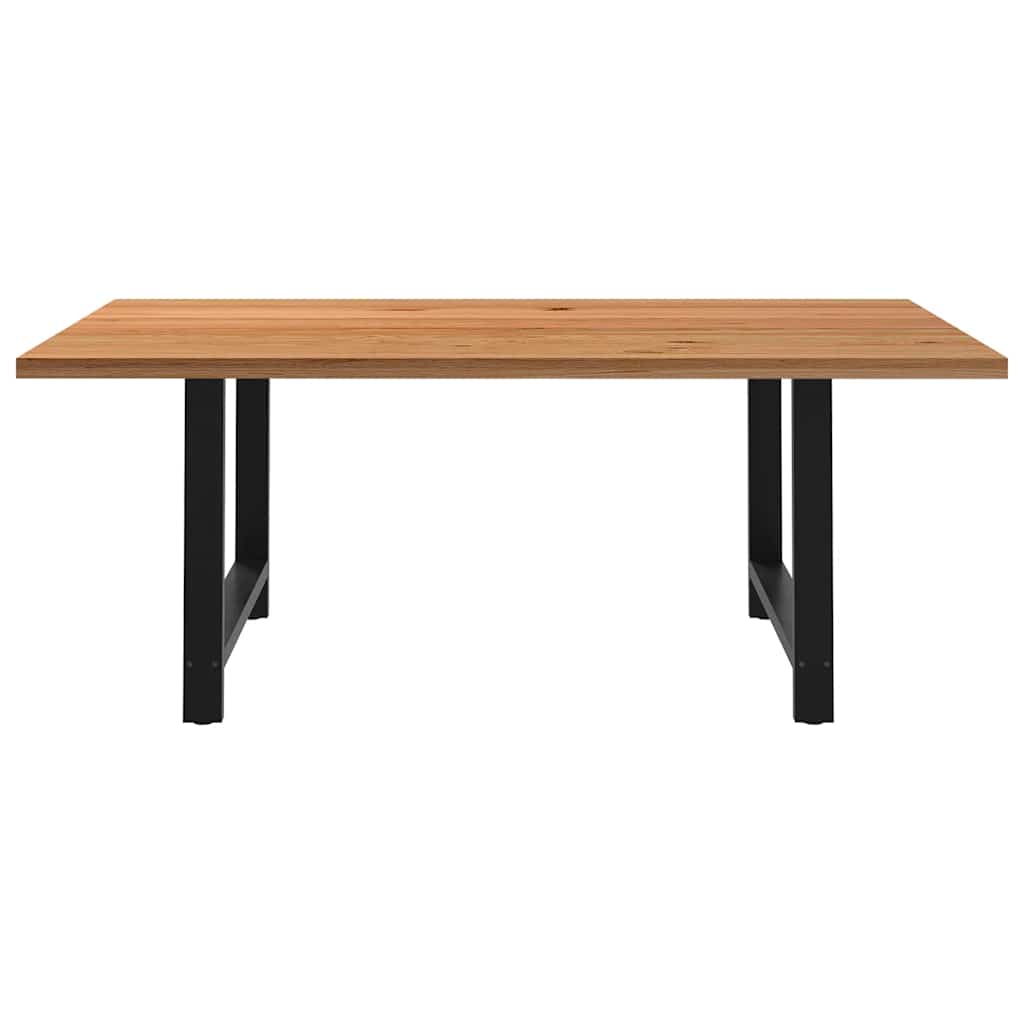 Mach jede Mahlzeit unvergesslich, indem du dich jeden Tag mit deiner Familie oder deinen Freunden um diesen Esstisch aus Holz versammelst! Robustes und langlebiges Material: Massives Eichenholz ist für seine Festigkeit, Haltbarkeit und schöne Maserung bekannt, weshalb es sich hervorragend für haltbare Möbel eignet. Durch seine natürliche Beständigkeit gegen Insektenbefall und Schimmelbildung sehen Eichenmöbel selbst nach jahrelangem Gebrauch brandneu aus.Großer Tisch: Dieser Tisch bietet mit seinen Maßen von 200 x 120 cm viel Platz zum Sitzen und ist das Herzstück deines Essbereichs.Einzigartiger Charme: Da Äste, Risse und Farbabweichungen natürliche Merkmale des Eichenholzes sind, hat jedes Stück dieses Produkts seinen ganz eigenen Charme. Auf den Bildern siehst du Beispiele für die zu erwartenden Variationen.Praktisches Design: Diese Esstischbeine sind mit verstellbaren Nivellierfüßen ausgestattet, die auch auf unebenen Böden für Stabilität sorgen und Bodenkratzer minimieren. Außerdem verfügt die Halterung über vorgebohrte Löcher und mitgelieferte Schrauben, mit denen das Bein an der Tischplatte befestigt werden kann, was die Montage erleichtert.Robustes und stabiles Gestell: Dieser Esszimmertisch hat U-förmige Beine aus pulverbeschichtetem Stahl, die für außergewöhnliche Stabilität und Sicherheit sorgen. Gut zu wissen:Jedes Stück ist ein Unikat, das in Farbe und Maserung variiert. Die Lieferung erfolgt in zufälliger Reihenfolge, wodurch die Exklusivität und Individualität deines Produkts gewährleistet wird.Äste und kleinere Fehler werden mit schwarzem Füllmaterial aufgefüllt, um eine schöne und glatte Tischoberfläche zu erhalten. Beispiele findest du in den Abbildungen.Die Tischplatte ist an den Rändern 4 cm dick, um ein robustes Aussehen zu gewährleisten, und in der Mitte 2 cm dick, um den Holzverbrauch und das Gesamtgewicht zu reduzieren.Bitte bohre die Löcher in der Mitte, nicht an den Rändern der Platte.Bitte achte darauf, die maximale Bohrtiefe von 15 mm nicht zu überschreiten, um die Tischplatte nicht zu beschädigen, da die Plattenstärke 20 mm beträgt.Wir empfehlen, einen Schraubendreher anstelle einer elektrischen Bohrmaschine zu verwenden, um Holzrisse beim Anbringen der Beine zu vermeiden.