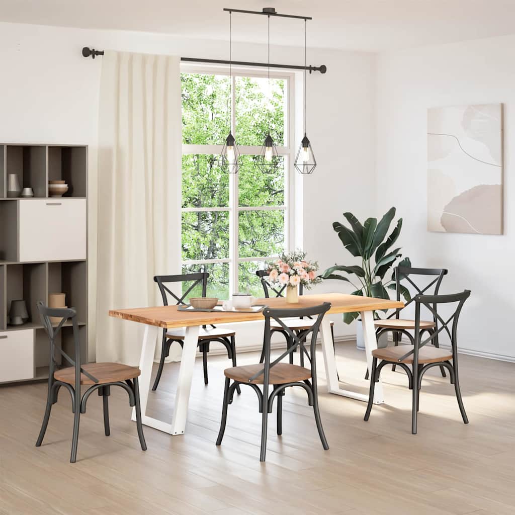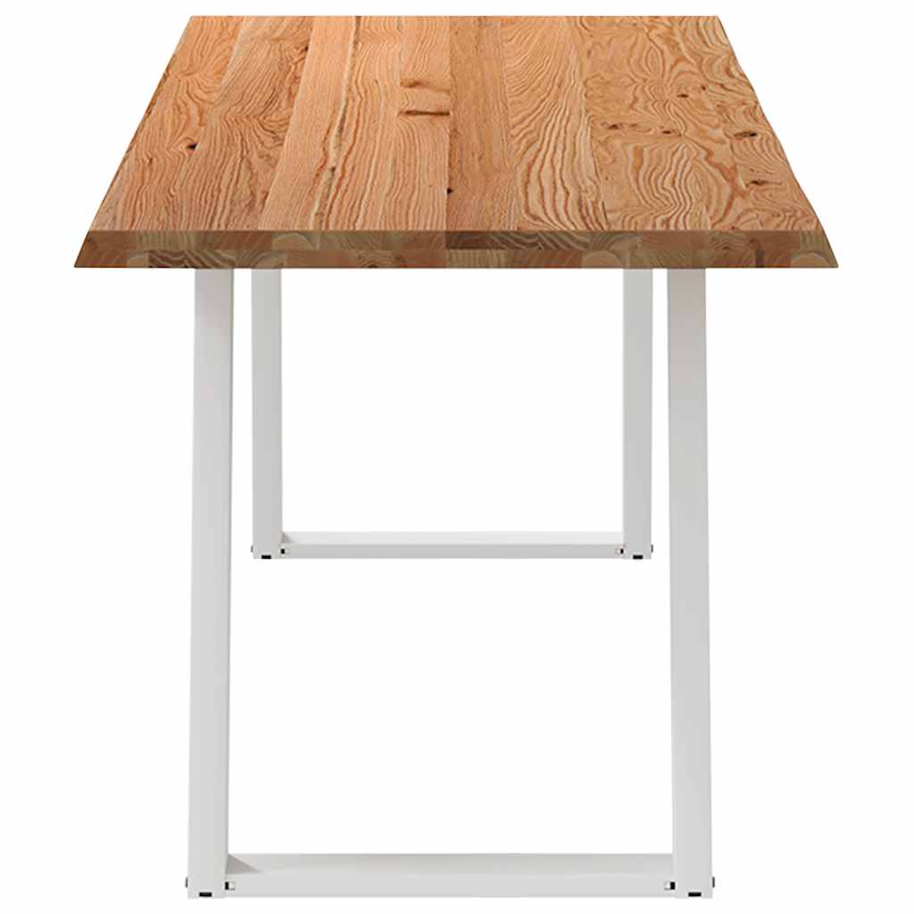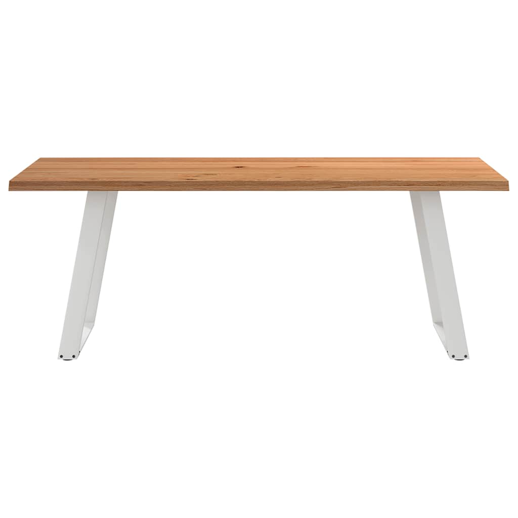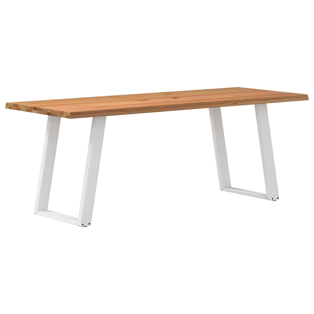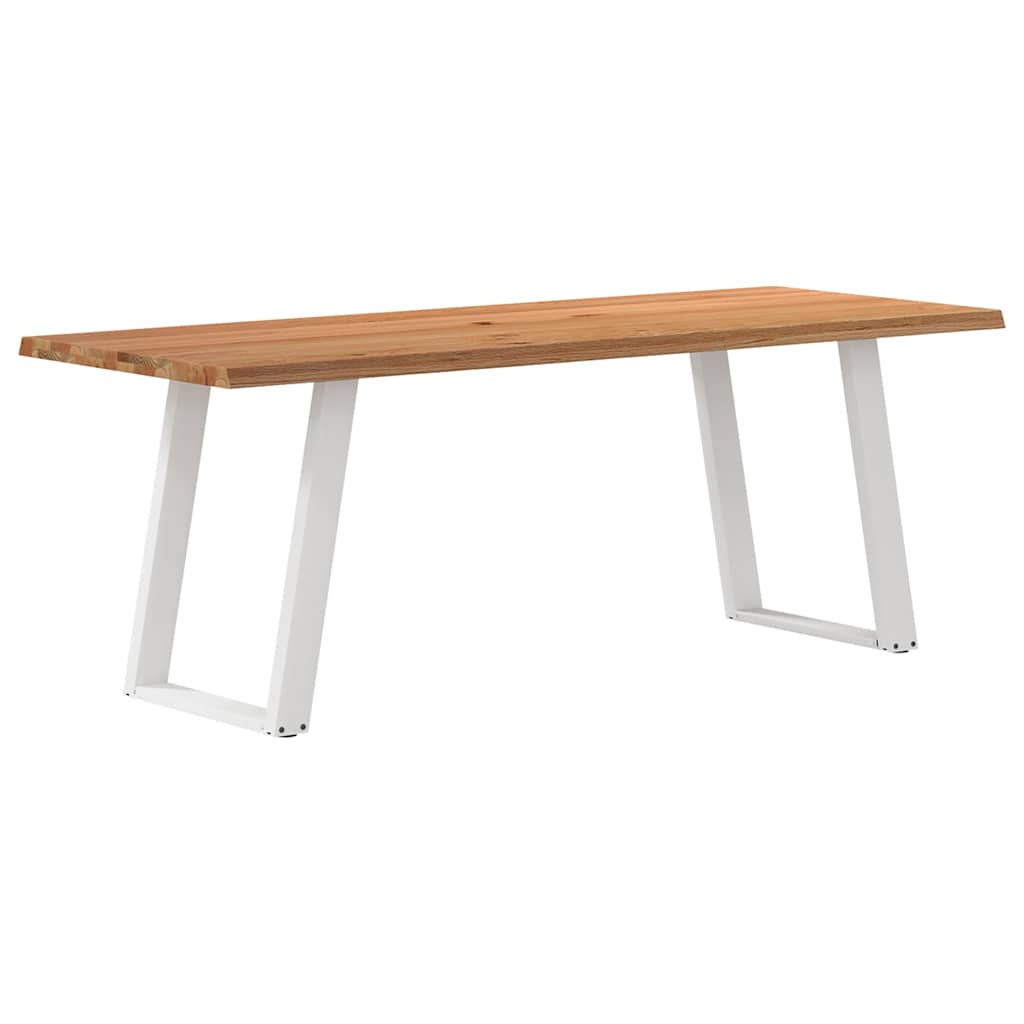 Mach jede Mahlzeit unvergesslich, indem du dich jeden Tag mit deiner Familie oder deinen Freunden um diesen Esstisch aus Holz versammelst! Robustes und langlebiges Material: Massives Eichenholz ist für seine Festigkeit, Haltbarkeit und schöne Maserung bekannt, weshalb es sich hervorragend für haltbare Möbel eignet. Durch seine natürliche Beständigkeit gegen Insektenbefall und Schimmelbildung sehen Eichenmöbel selbst nach jahrelangem Gebrauch brandneu aus.Großer Tisch: Dieser Küchentisch bietet mit seinen Maßen von 200 x 80 cm viel Platz zum Sitzen und ist das Herzstück deines Essbereichs.Naturkanten: Diese Tischplatte hat geschwungene Kanten, die von der natürlichen Form eines Baumes inspiriert sind und deinem Tisch eine charmante Note verleihen.Einzigartiger Charme: Da Äste, Risse und Farbabweichungen natürliche Merkmale des Eichenholzes sind, hat jedes Stück dieses Produkts seinen ganz eigenen Charme. Auf den Bildern siehst du Beispiele für die zu erwartenden Variationen.Praktisches Design: Diese Esstischbeine sind mit verstellbaren Nivellierfüßen ausgestattet, die auch auf unebenen Böden für Stabilität sorgen und Bodenkratzer minimieren. Außerdem verfügt die Halterung über vorgebohrte Löcher und mitgelieferte Schrauben, mit denen das Bein an der Tischplatte befestigt werden kann, was die Montage erleichtert. Gut zu wissen:Jedes Stück ist ein Unikat, das in Farbe und Maserung variiert. Die Lieferung erfolgt in zufälliger Reihenfolge, wodurch die Exklusivität und Individualität deines Produkts gewährleistet wird.Äste und kleinere Fehler werden mit schwarzem Füllmaterial aufgefüllt, um eine schöne und glatte Tischoberfläche zu erhalten. Beispiele findest du in den Abbildungen.Die Tischplatte ist an den Rändern 4 cm dick, um ein robustes Aussehen zu gewährleisten, und in der Mitte 2 cm dick, um den Holzverbrauch und das Gesamtgewicht zu reduzieren.Bitte bohre die Löcher in der Mitte, nicht an den Rändern der Platte.Bitte achte darauf, die maximale Bohrtiefe von 15 mm nicht zu überschreiten, um die Tischplatte nicht zu beschädigen, da die Plattenstärke 20 mm beträgt.Wir empfehlen, einen Schraubendreher anstelle einer elektrischen Bohrmaschine zu verwenden, um Holzrisse beim Anbringen der Beine zu vermeiden.