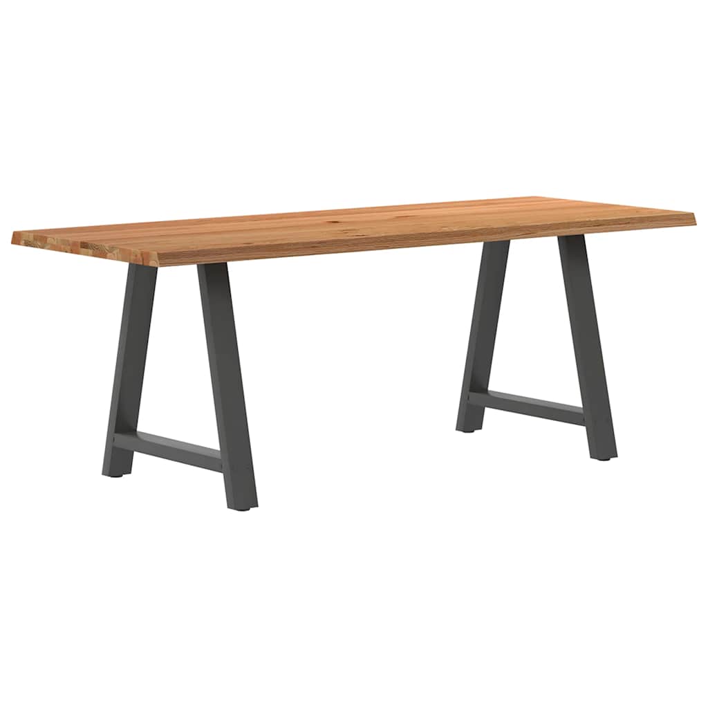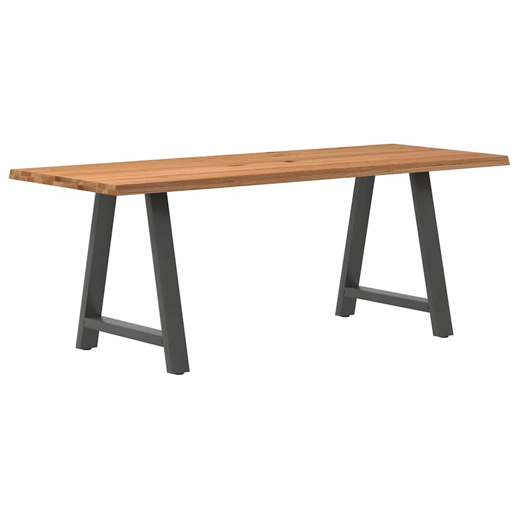 Mach jede Mahlzeit unvergesslich, indem du dich jeden Tag mit deiner Familie oder deinen Freunden um diesen Esstisch aus Holz versammelst! Robustes und langlebiges Material: Massives Eichenholz ist für seine Festigkeit, Haltbarkeit und schöne Maserung bekannt, weshalb es sich hervorragend für haltbare Möbel eignet. Durch seine natürliche Beständigkeit gegen Insektenbefall und Schimmelbildung sehen Eichenmöbel selbst nach jahrelangem Gebrauch brandneu aus.Großer Tisch: Dieser Tisch bietet mit seinen Maßen von 200 x 80 cm viel Platz zum Sitzen und ist das Herzstück deines Essbereichs.Naturkanten: Diese Tischplatte hat geschwungene Kanten, die von der natürlichen Form eines Baumes inspiriert sind und deinem Tisch eine charmante Note verleihen.Einzigartiger Charme: Da Äste, Risse und Farbabweichungen natürliche Merkmale des Eichenholzes sind, hat jedes Stück dieses Produkts seinen ganz eigenen Charme. Auf den Bildern siehst du Beispiele für die zu erwartenden Variationen.Praktisches Design: Diese Esstischbeine sind mit verstellbaren Nivellierfüßen ausgestattet, die auch auf unebenen Böden für Stabilität sorgen und Bodenkratzer minimieren. Außerdem verfügt die Halterung über vorgebohrte Löcher und mitgelieferte Schrauben, mit denen das Bein an der Tischplatte befestigt werden kann, was die Montage erleichtert. Gut zu wissen:Jedes Stück ist ein Unikat, das in Farbe und Maserung variiert. Die Lieferung erfolgt in zufälliger Reihenfolge, wodurch die Exklusivität und Individualität deines Produkts gewährleistet wird.Äste und kleinere Fehler werden mit schwarzem Füllmaterial aufgefüllt, um eine schöne und glatte Tischoberfläche zu erhalten. Beispiele findest du in den Abbildungen.Die Tischplatte ist an den Rändern 4 cm dick, um ein robustes Aussehen zu gewährleisten, und in der Mitte 2 cm dick, um den Holzverbrauch und das Gesamtgewicht zu reduzieren.Bitte bohre die Löcher in der Mitte, nicht an den Rändern der Platte.Bitte achte darauf, die maximale Bohrtiefe von 15 mm nicht zu überschreiten, um die Tischplatte nicht zu beschädigen, da die Plattenstärke 20 mm beträgt.Wir empfehlen, einen Schraubendreher anstelle einer elektrischen Bohrmaschine zu verwenden, um Holzrisse beim Anbringen der Beine zu vermeiden.