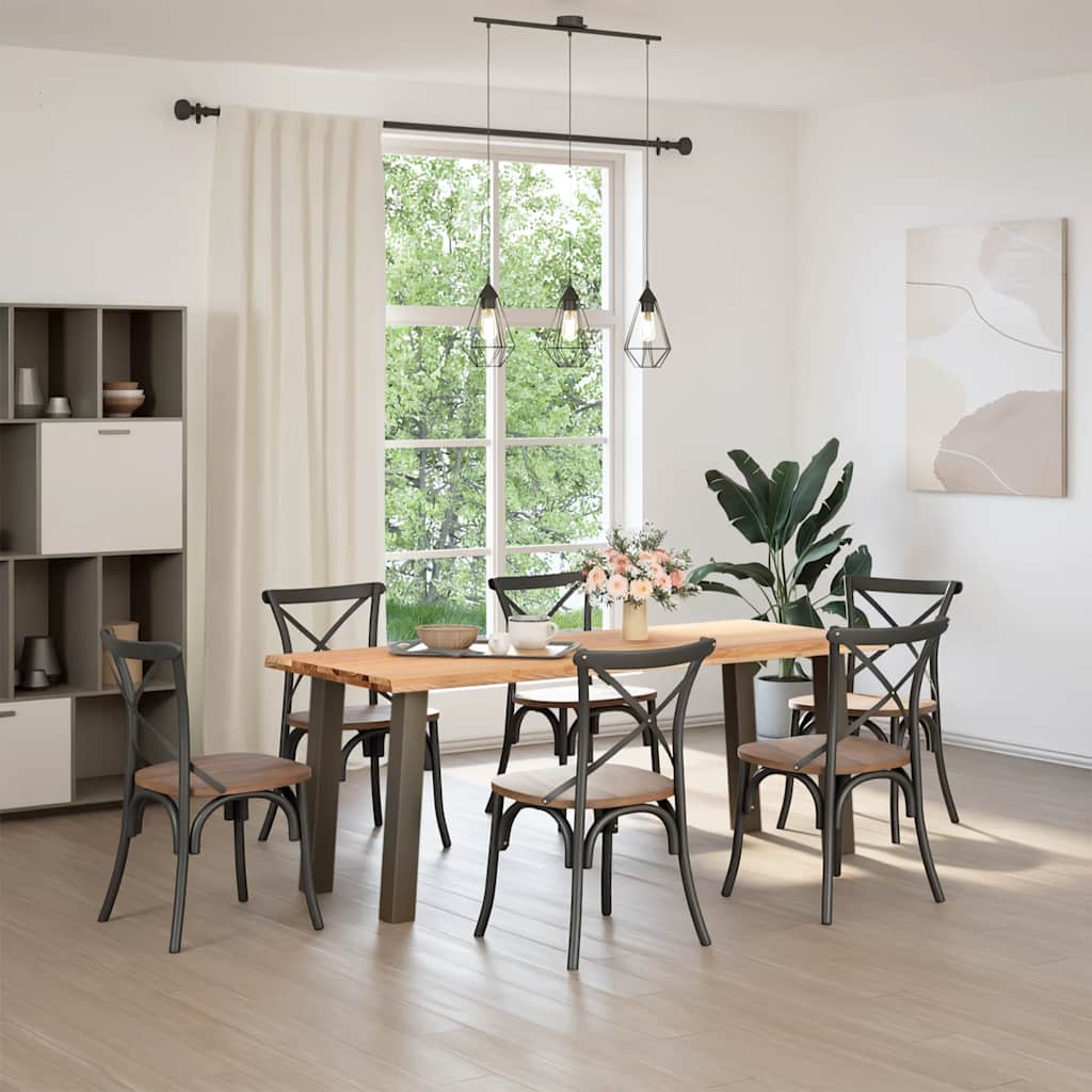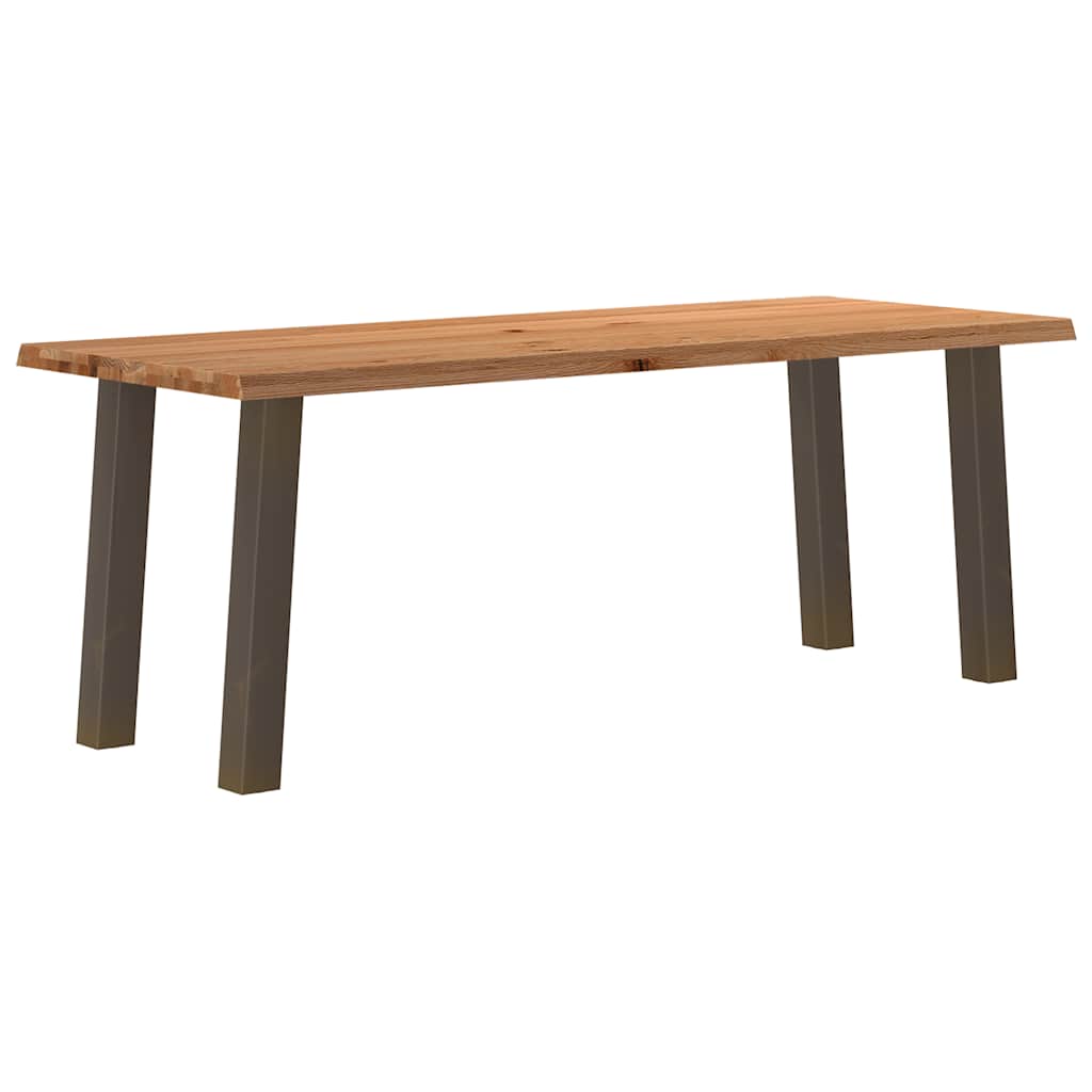 Mach jede Mahlzeit unvergesslich, indem du dich jeden Tag mit deiner Familie oder deinen Freunden um diesen Esstisch aus Holz versammelst! Robustes und langlebiges Material: Massives Eichenholz ist für seine Festigkeit, Haltbarkeit und schöne Maserung bekannt, weshalb es sich hervorragend für haltbare Möbel eignet. Durch seine natürliche Beständigkeit gegen Insektenbefall und Schimmelbildung sehen Eichenmöbel selbst nach jahrelangem Gebrauch brandneu aus.Großer Tisch: Dieser Tisch bietet mit seinen Maßen von 200 x 80 cm viel Platz zum Sitzen und ist das Herzstück deines Essbereichs.Naturkanten: Diese Tischplatte hat geschwungene Kanten, die von der natürlichen Form eines Baumes inspiriert sind und deinem Tisch eine charmante Note verleihen.Einzigartiger Charme: Da Äste, Risse und Farbabweichungen natürliche Merkmale des Eichenholzes sind, hat jedes Stück dieses Produkts seinen ganz eigenen Charme. Auf den Bildern siehst du Beispiele für die zu erwartenden Variationen.Praktisches Design: Diese Esstischbeine sind mit verstellbaren Nivellierfüßen ausgestattet, die auch auf unebenen Böden für Stabilität sorgen und Bodenkratzer minimieren. Außerdem verfügt die Halterung über vorgebohrte Löcher und mitgelieferte Schrauben, mit denen das Bein an der Tischplatte befestigt werden kann, was die Montage erleichtert. Gut zu wissen:Jedes Stück ist ein Unikat, das in Farbe und Maserung variiert. Die Lieferung erfolgt in zufälliger Reihenfolge, wodurch die Exklusivität und Individualität deines Produkts gewährleistet wird.Äste und kleinere Fehler werden mit schwarzem Füllmaterial aufgefüllt, um eine schöne und glatte Tischoberfläche zu erhalten. Beispiele findest du in den Abbildungen.Die Tischplatte ist an den Rändern 4 cm dick, um ein robustes Aussehen zu gewährleisten, und in der Mitte 2 cm dick, um den Holzverbrauch und das Gesamtgewicht zu reduzieren.Bitte bohre die Löcher in der Mitte, nicht an den Rändern der Platte.Bitte achte darauf, die maximale Bohrtiefe von 15 mm nicht zu überschreiten, um die Tischplatte nicht zu beschädigen, da die Plattenstärke 20 mm beträgt.Wir empfehlen, einen Schraubendreher anstelle einer elektrischen Bohrmaschine zu verwenden, um Holzrisse beim Anbringen der Beine zu vermeiden.