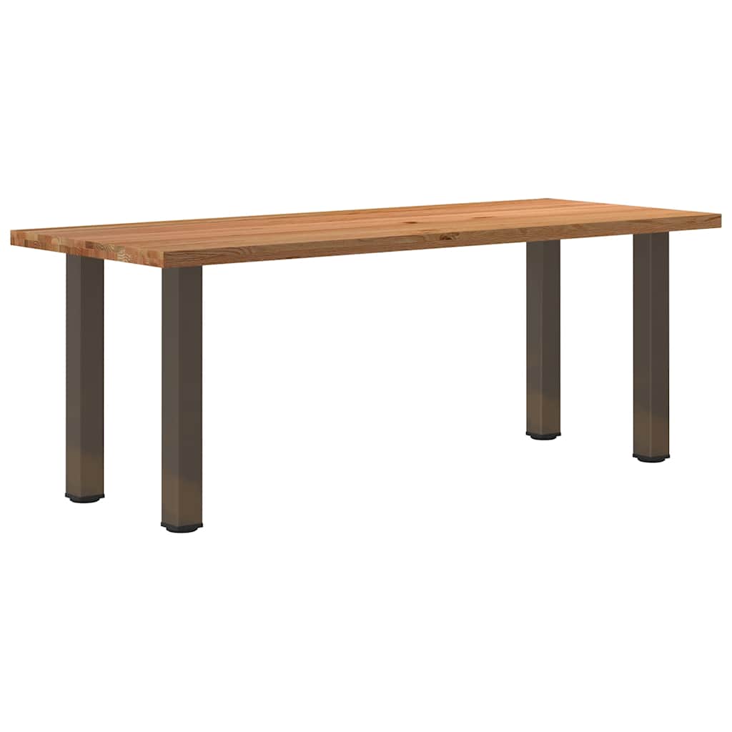 Mach jede Mahlzeit unvergesslich, indem du dich jeden Tag mit deiner Familie oder deinen Freunden um diesen Esstisch aus Holz versammelst!Robustes und langlebiges Material: Massives Eichenholz ist für seine Festigkeit, Haltbarkeit und schöne Maserung bekannt, weshalb es sich hervorragend für haltbare Möbel eignet. Durch seine natürliche Beständigkeit gegen Insektenbefall und Schimmelbildung sehen Eichenmöbel selbst nach jahrelangem Gebrauch brandneu aus.Großer Tisch: Dieser Tisch bietet mit seinen Maßen von 200 x 80 cm viel Platz zum Sitzen und ist das Herzstück deines Essbereichs.Pflegeleicht: Dank ihrer glatten Oberfläche lässt sich die Arbeitsplatte mit einem feuchten Tuch leicht reinigen und erfordert wenig Pflege.Einzigartiger Charme: Da Äste, Risse und Farbabweichungen natürliche Merkmale des Eichenholzes sind, hat jedes Stück dieses Produkts seinen ganz eigenen Charme. Auf den Bildern siehst du Beispiele für die zu erwartenden Variationen.Praktisches Design: Diese Esstischbeine sind mit verstellbaren Nivellierfüßen ausgestattet, die auch auf unebenen Böden für Stabilität sorgen und Bodenkratzer minimieren. Außerdem verfügt die Halterung über vorgebohrte Löcher und mitgelieferte Schrauben, mit denen das Bein an der Tischplatte befestigt werden kann, was die Montage erleichtert.Gut zu wissen:Jedes Stück ist ein Unikat, das in Farbe und Maserung variiert. Die Lieferung erfolgt in zufälliger Reihenfolge, wodurch die Exklusivität und Individualität deines Produkts gewährleistet wird.Äste und kleinere Fehler werden mit schwarzem Füllmaterial aufgefüllt, um eine schöne und glatte Tischoberfläche zu erhalten. Beispiele findest du in den Abbildungen.Die Tischplatte ist an den Rändern 4 cm dick, um ein robustes Aussehen zu gewährleisten, und in der Mitte 2 cm dick, um den Holzverbrauch und das Gesamtgewicht zu reduzieren.Bitte bohre die Löcher in der Mitte, nicht an den Rändern der Platte.Bitte achte darauf, die maximale Bohrtiefe von 15 mm nicht zu überschreiten, um die Tischplatte nicht zu beschädigen, da die Plattenstärke 20 mm beträgt.Wir empfehlen, einen Schraubendreher anstelle einer elektrischen Bohrmaschine zu verwenden, um Holzrisse beim Anbringen der Beine zu vermeiden.
