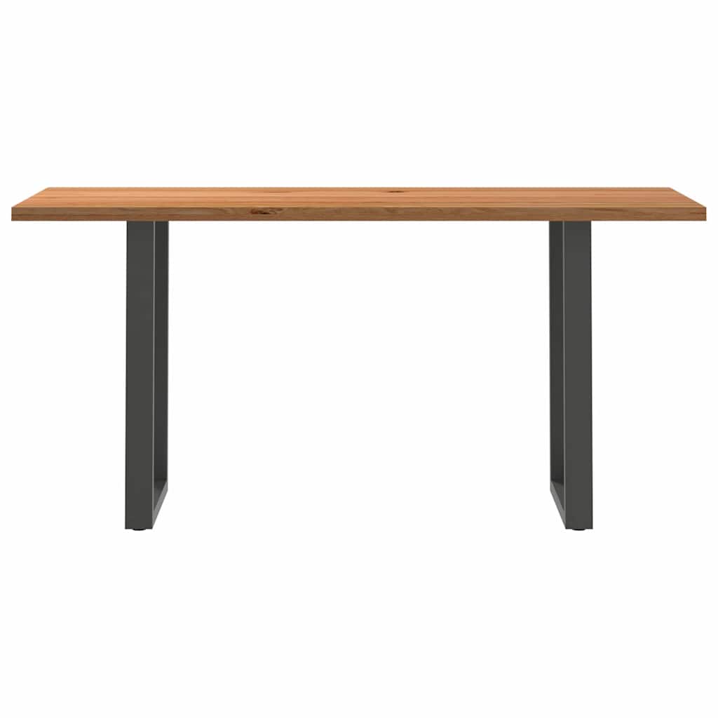 Mach jede Mahlzeit unvergesslich, indem du dich jeden Tag mit deiner Familie oder deinen Freunden um diesen Esstisch aus Holz versammelst! Robustes und langlebiges Material: Massives Eichenholz ist für seine Festigkeit, Haltbarkeit und schöne Maserung bekannt, weshalb es sich hervorragend für haltbare Möbel eignet. Durch seine natürliche Beständigkeit gegen Insektenbefall und Schimmelbildung sehen Eichenmöbel selbst nach jahrelangem Gebrauch brandneu aus.Großer Tisch: Dieser Tisch bietet mit seinen Maßen von 200 x 80 cm viel Platz zum Sitzen und ist das Herzstück deines Essbereichs.Einzigartiger Charme: Da Äste, Risse und Farbabweichungen natürliche Merkmale des Eichenholzes sind, hat jedes Stück dieses Produkts seinen ganz eigenen Charme. Auf den Bildern siehst du Beispiele für die zu erwartenden Variationen.Praktisches Design: Diese Esstischbeine sind mit verstellbaren Nivellierfüßen ausgestattet, die auch auf unebenen Böden für Stabilität sorgen und Bodenkratzer minimieren. Außerdem verfügt die Halterung über vorgebohrte Löcher und mitgelieferte Schrauben, mit denen das Bein an der Tischplatte befestigt werden kann, was die Montage erleichtert.Robustes und stabiles Gestell: Dieser Esszimmertisch hat U-förmige Beine aus pulverbeschichtetem Stahl, die für außergewöhnliche Stabilität und Sicherheit sorgen. Gut zu wissen:Jedes Stück ist ein Unikat, das in Farbe und Maserung variiert. Die Lieferung erfolgt in zufälliger Reihenfolge, wodurch die Exklusivität und Individualität deines Produkts gewährleistet wird.Äste und kleinere Fehler werden mit schwarzem Füllmaterial aufgefüllt, um eine schöne und glatte Tischoberfläche zu erhalten. Beispiele findest du in den Abbildungen.Die Tischplatte ist an den Rändern 4 cm dick, um ein robustes Aussehen zu gewährleisten, und in der Mitte 2 cm dick, um den Holzverbrauch und das Gesamtgewicht zu reduzieren.Bitte bohre die Löcher in der Mitte, nicht an den Rändern der Platte.Bitte achte darauf, die maximale Bohrtiefe von 15 mm nicht zu überschreiten, um die Tischplatte nicht zu beschädigen, da die Plattenstärke 20 mm beträgt.Wir empfehlen, einen Schraubendreher anstelle einer elektrischen Bohrmaschine zu verwenden, um Holzrisse beim Anbringen der Beine zu vermeiden.