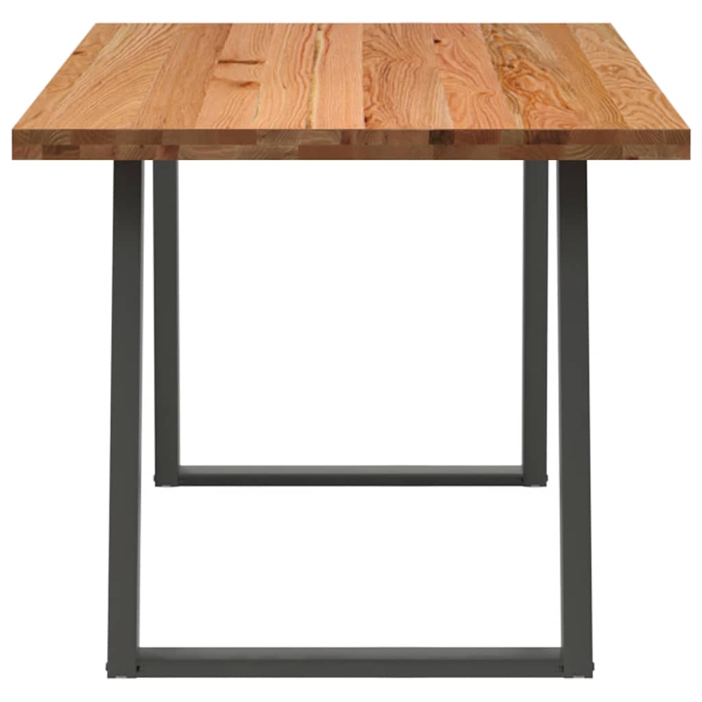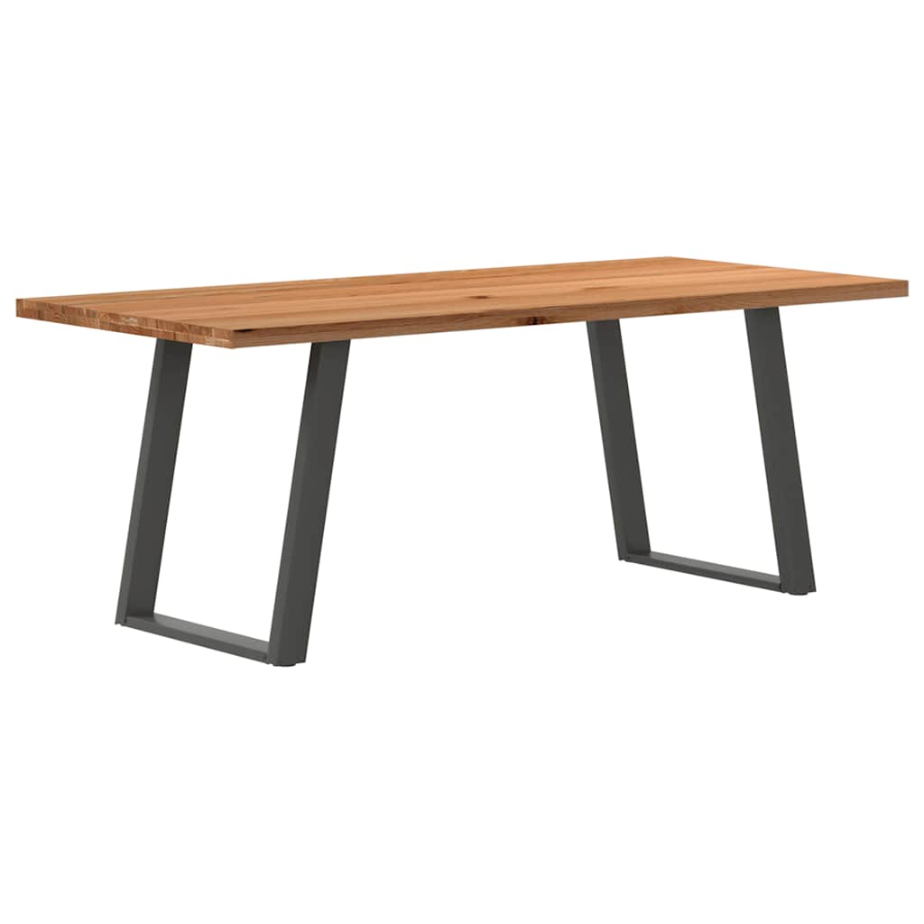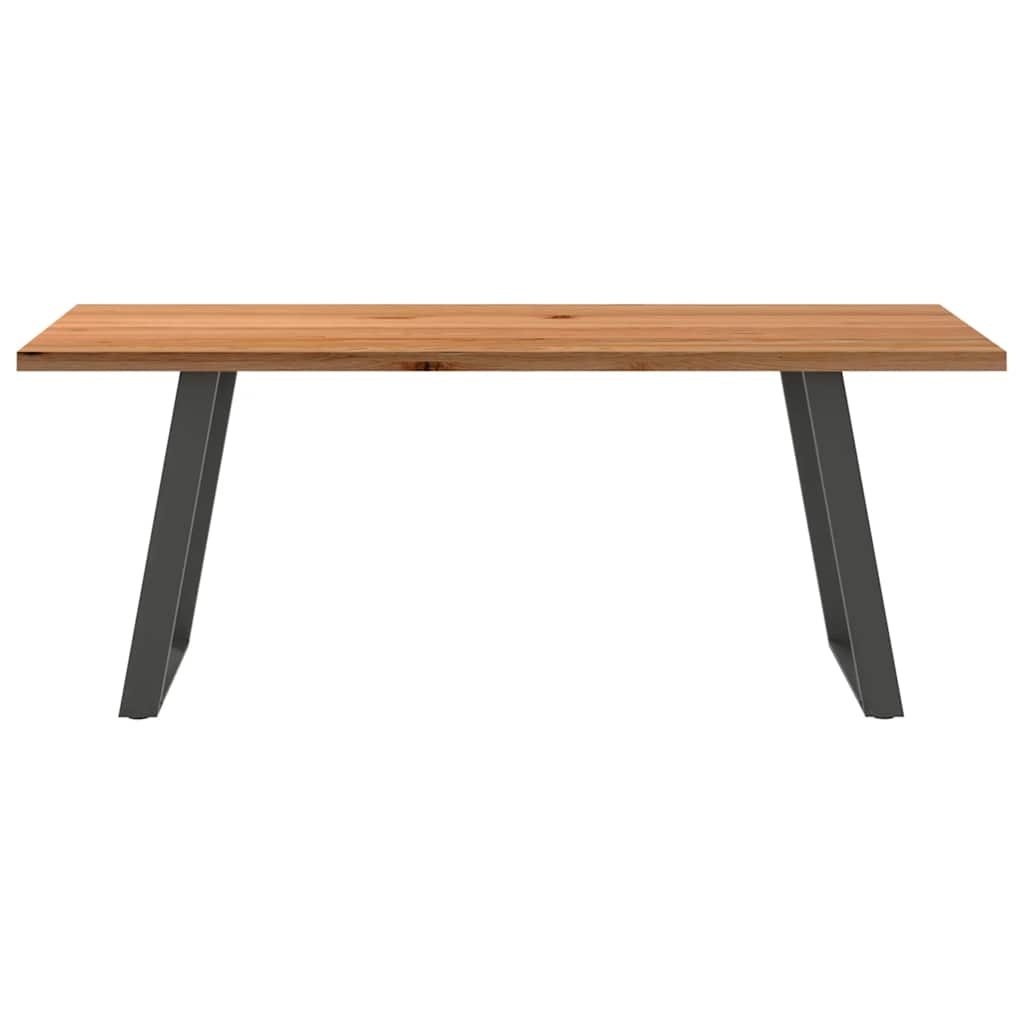 Mach jede Mahlzeit unvergesslich, indem du dich jeden Tag mit deiner Familie oder deinen Freunden um diesen Esstisch aus Holz versammelst! Robustes und langlebiges Material: Massives Eichenholz ist für seine Festigkeit, Haltbarkeit und schöne Maserung bekannt, weshalb es sich hervorragend für haltbare Möbel eignet. Durch seine natürliche Beständigkeit gegen Insektenbefall und Schimmelbildung sehen Eichenmöbel selbst nach jahrelangem Gebrauch brandneu aus.Großer Tisch: Dieser Tisch bietet mit seinen Maßen von 200 x 90 cm viel Platz zum Sitzen und ist das Herzstück deines Essbereichs.Einzigartiger Charme: Da Äste, Risse und Farbabweichungen natürliche Merkmale des Eichenholzes sind, hat jedes Stück dieses Produkts seinen ganz eigenen Charme. Auf den Bildern siehst du Beispiele für die zu erwartenden Variationen.Praktisches Design: Diese Esstischbeine sind mit verstellbaren Nivellierfüßen ausgestattet, die auch auf unebenen Böden für Stabilität sorgen und Bodenkratzer minimieren. Außerdem verfügt die Halterung über vorgebohrte Löcher und mitgelieferte Schrauben, mit denen das Bein an der Tischplatte befestigt werden kann, was die Montage erleichtert.Robustes und stabiles Gestell: Dieser Esszimmertisch hat U-förmige Beine aus pulverbeschichtetem Stahl, die für außergewöhnliche Stabilität und Sicherheit sorgen. Gut zu wissen:Jedes Stück ist ein Unikat, das in Farbe und Maserung variiert. Die Lieferung erfolgt in zufälliger Reihenfolge, wodurch die Exklusivität und Individualität deines Produkts gewährleistet wird.Äste und kleinere Fehler werden mit schwarzem Füllmaterial aufgefüllt, um eine schöne und glatte Tischoberfläche zu erhalten. Beispiele findest du in den Abbildungen.Die Tischplatte ist an den Rändern 4 cm dick, um ein robustes Aussehen zu gewährleisten, und in der Mitte 2 cm dick, um den Holzverbrauch und das Gesamtgewicht zu reduzieren.Bitte bohre die Löcher in der Mitte, nicht an den Rändern der Platte.Bitte achte darauf, die maximale Bohrtiefe von 15 mm nicht zu überschreiten, um die Tischplatte nicht zu beschädigen, da die Plattenstärke 20 mm beträgt.Wir empfehlen, einen Schraubendreher anstelle einer elektrischen Bohrmaschine zu verwenden, um Holzrisse beim Anbringen der Beine zu vermeiden.