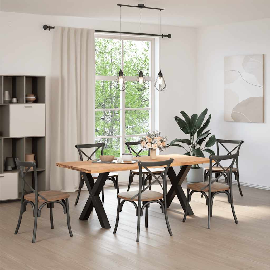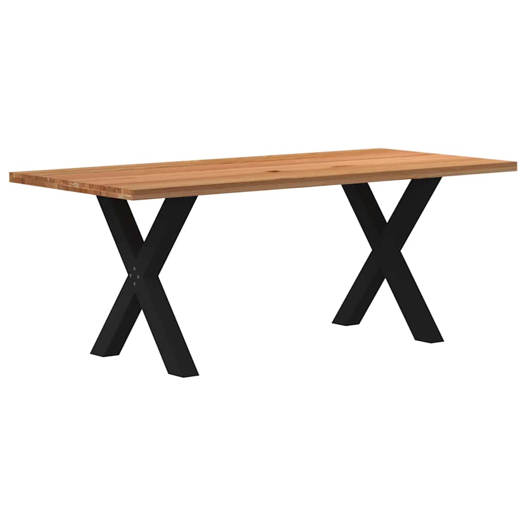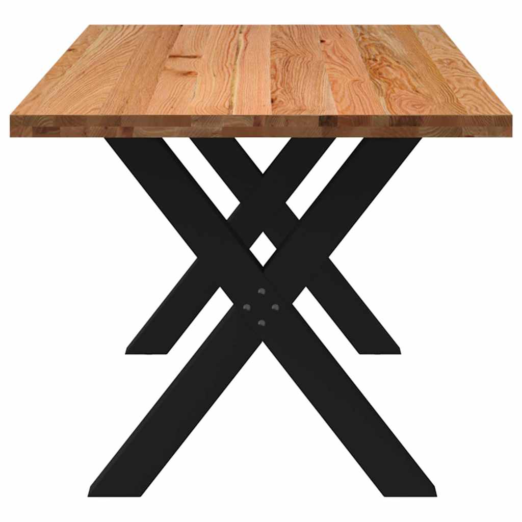 Mach jede Mahlzeit unvergesslich, indem du dich jeden Tag mit deiner Familie oder deinen Freunden um diesen Esstisch aus Holz versammelst! Robustes und langlebiges Material: Massives Eichenholz ist für seine Festigkeit, Haltbarkeit und schöne Maserung bekannt, weshalb es sich hervorragend für haltbare Möbel eignet. Durch seine natürliche Beständigkeit gegen Insektenbefall und Schimmelbildung sehen Eichenmöbel selbst nach jahrelangem Gebrauch brandneu aus.Großer Tisch: Dieser Küchentisch bietet mit seinen Maßen von 200 x 90 cm viel Platz zum Sitzen und ist das Herzstück deines Essbereichs.Einzigartiger Charme: Da Äste, Risse und Farbabweichungen natürliche Merkmale des Eichenholzes sind, hat jedes Stück dieses Produkts seinen ganz eigenen Charme. Auf den Bildern siehst du Beispiele für die zu erwartenden Variationen.Praktisches Design: Diese Esstischbeine sind mit verstellbaren Nivellierfüßen ausgestattet, die auch auf unebenen Böden für Stabilität sorgen und Bodenkratzer minimieren. Außerdem verfügt die Halterung über vorgebohrte Löcher und mitgelieferte Schrauben, mit denen das Bein an der Tischplatte befestigt werden kann, was die Montage erleichtert. Gut zu wissen:Jedes Stück ist ein Unikat, das in Farbe und Maserung variiert. Die Lieferung erfolgt in zufälliger Reihenfolge, wodurch die Exklusivität und Individualität deines Produkts gewährleistet wird.Äste und kleinere Fehler werden mit schwarzem Füllmaterial aufgefüllt, um eine schöne und glatte Tischoberfläche zu erhalten. Beispiele findest du in den Abbildungen.Die Tischplatte ist an den Rändern 4 cm dick, um ein robustes Aussehen zu gewährleisten, und in der Mitte 2 cm dick, um den Holzverbrauch und das Gesamtgewicht zu reduzieren.Bitte bohre die Löcher in der Mitte, nicht an den Rändern der Platte.Bitte achte darauf, die maximale Bohrtiefe von 15 mm nicht zu überschreiten, um die Tischplatte nicht zu beschädigen, da die Plattenstärke 20 mm beträgt.Wir empfehlen, einen Schraubendreher anstelle einer elektrischen Bohrmaschine zu verwenden, um Holzrisse beim Anbringen der Beine zu vermeiden.