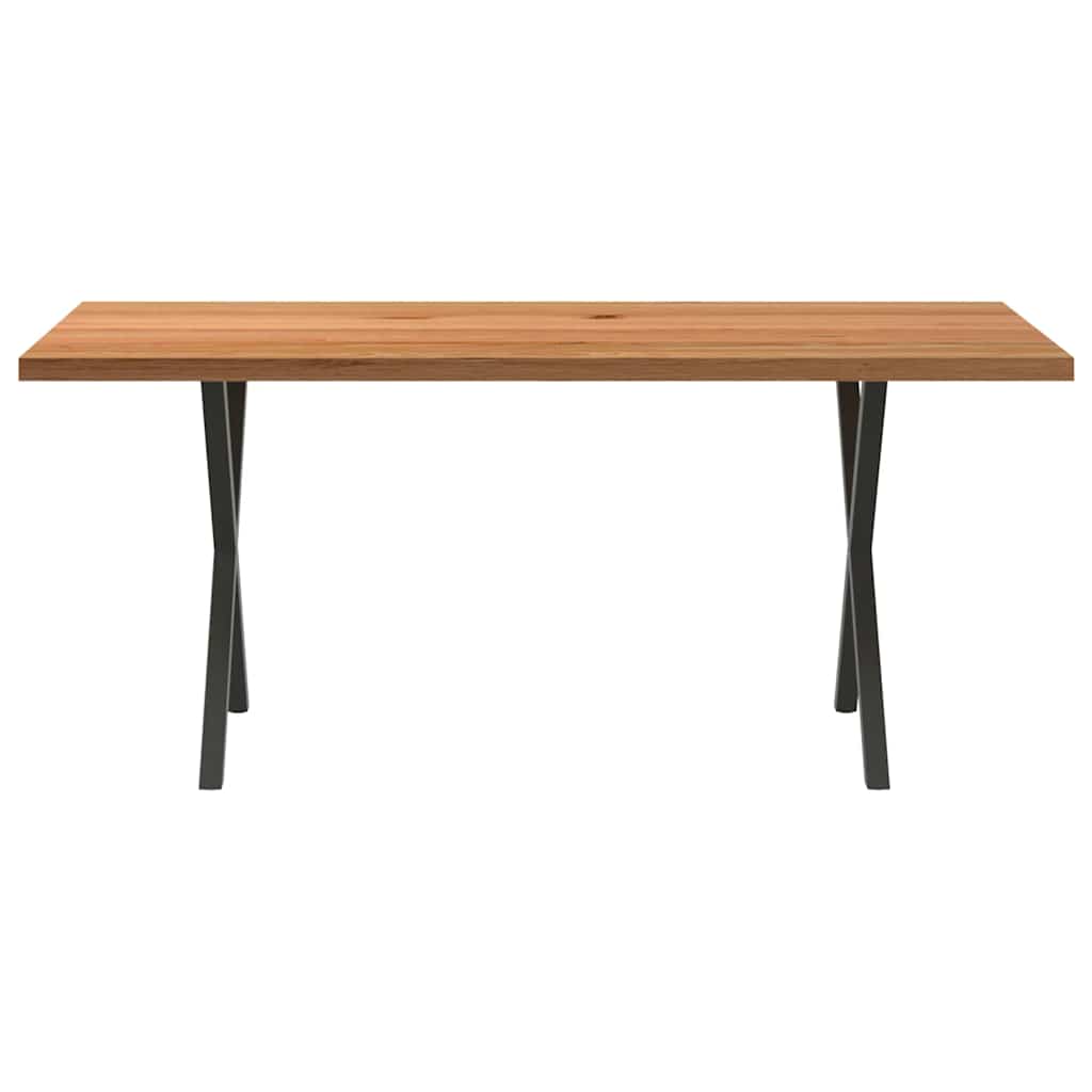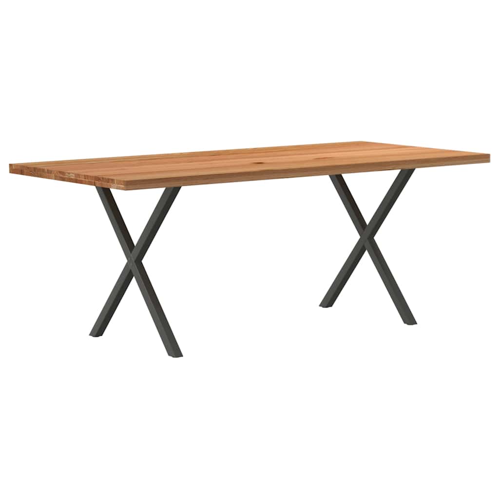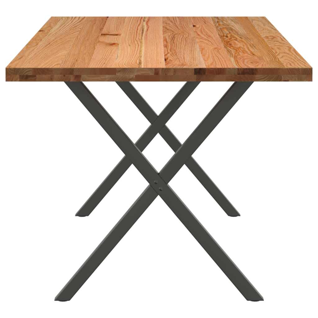 Mach jede Mahlzeit unvergesslich, indem du dich jeden Tag mit deiner Familie oder deinen Freunden um diesen Esstisch aus Holz versammelst! Robustes und langlebiges Material: Massives Eichenholz ist für seine Festigkeit, Haltbarkeit und schöne Maserung bekannt, weshalb es sich hervorragend für haltbare Möbel eignet. Durch seine natürliche Beständigkeit gegen Insektenbefall und Schimmelbildung sehen Eichenmöbel selbst nach jahrelangem Gebrauch brandneu aus.Großer Tisch: Dieser Tisch bietet mit seinen Maßen von 200 x 90 cm viel Platz zum Sitzen und ist das Herzstück deines Essbereichs.Einzigartiger Charme: Da Äste, Risse und Farbabweichungen natürliche Merkmale des Eichenholzes sind, hat jedes Stück dieses Produkts seinen ganz eigenen Charme. Auf den Bildern siehst du Beispiele für die zu erwartenden Variationen.Praktisches Design: Diese Esstischbeine sind mit verstellbaren Nivellierfüßen ausgestattet, die auch auf unebenen Böden für Stabilität sorgen und Bodenkratzer minimieren. Außerdem verfügt die Halterung über vorgebohrte Löcher und mitgelieferte Schrauben, mit denen das Bein an der Tischplatte befestigt werden kann, was die Montage erleichtert.Robustes und stabiles Gestell: Dieser Esszimmertisch hat X-förmige Beine aus pulverbeschichtetem Stahl, die für außergewöhnliche Stabilität und Sicherheit sorgen. Gut zu wissen:Jedes Stück ist ein Unikat, das in Farbe und Maserung variiert. Die Lieferung erfolgt in zufälliger Reihenfolge, wodurch die Exklusivität und Individualität deines Produkts gewährleistet wird.Äste und kleinere Fehler werden mit schwarzem Füllmaterial aufgefüllt, um eine schöne und glatte Tischoberfläche zu erhalten. Beispiele findest du in den Abbildungen.Die Tischplatte ist an den Rändern 4 cm dick, um ein robustes Aussehen zu gewährleisten, und in der Mitte 2 cm dick, um den Holzverbrauch und das Gesamtgewicht zu reduzieren.Bitte bohre die Löcher in der Mitte, nicht an den Rändern der Platte.Bitte achte darauf, die maximale Bohrtiefe von 15 mm nicht zu überschreiten, um die Tischplatte nicht zu beschädigen, da die Plattenstärke 20 mm beträgt.Wir empfehlen, einen Schraubendreher anstelle einer elektrischen Bohrmaschine zu verwenden, um Holzrisse beim Anbringen der Beine zu vermeiden.