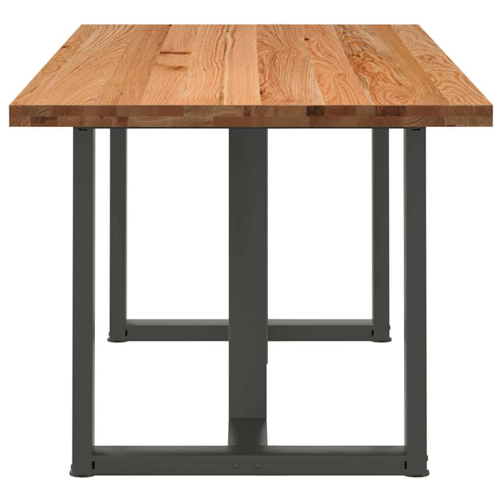 Mach jede Mahlzeit unvergesslich, indem du dich jeden Tag mit deiner Familie oder deinen Freunden um diesen Esstisch aus Holz versammelst! Robustes und langlebiges Material: Massives Eichenholz ist für seine Festigkeit, Haltbarkeit und schöne Maserung bekannt, weshalb es sich hervorragend für haltbare Möbel eignet. Durch seine natürliche Beständigkeit gegen Insektenbefall und Schimmelbildung sehen Eichenmöbel selbst nach jahrelangem Gebrauch brandneu aus.Großer Tisch: Dieser Küchentisch bietet mit seinen Maßen von 200 x 90 cm viel Platz zum Sitzen und ist das Herzstück deines Essbereichs.Einzigartiger Charme: Da Äste, Risse und Farbabweichungen natürliche Merkmale des Eichenholzes sind, hat jedes Stück dieses Produkts seinen ganz eigenen Charme. Auf den Bildern siehst du Beispiele für die zu erwartenden Variationen.Praktisches Design: Diese Esstischbeine sind mit verstellbaren Nivellierfüßen ausgestattet, die auch auf unebenen Böden für Stabilität sorgen und Bodenkratzer minimieren. Außerdem verfügt die Halterung über vorgebohrte Löcher und mitgelieferte Schrauben, mit denen das Bein an der Tischplatte befestigt werden kann, was die Montage erleichtert. Gut zu wissen:Jedes Stück ist ein Unikat, das in Farbe und Maserung variiert. Die Lieferung erfolgt in zufälliger Reihenfolge, wodurch die Exklusivität und Individualität deines Produkts gewährleistet wird.Äste und kleinere Fehler werden mit schwarzem Füllmaterial aufgefüllt, um eine schöne und glatte Tischoberfläche zu erhalten. Beispiele findest du in den Abbildungen.Die Tischplatte ist an den Rändern 4 cm dick, um ein robustes Aussehen zu gewährleisten, und in der Mitte 2 cm dick, um den Holzverbrauch und das Gesamtgewicht zu reduzieren.Bitte bohre die Löcher in der Mitte, nicht an den Rändern der Platte.Bitte achte darauf, die maximale Bohrtiefe von 15 mm nicht zu überschreiten, um die Tischplatte nicht zu beschädigen, da die Plattenstärke 20 mm beträgt.Wir empfehlen, einen Schraubendreher anstelle einer elektrischen Bohrmaschine zu verwenden, um Holzrisse beim Anbringen der Beine zu vermeiden.