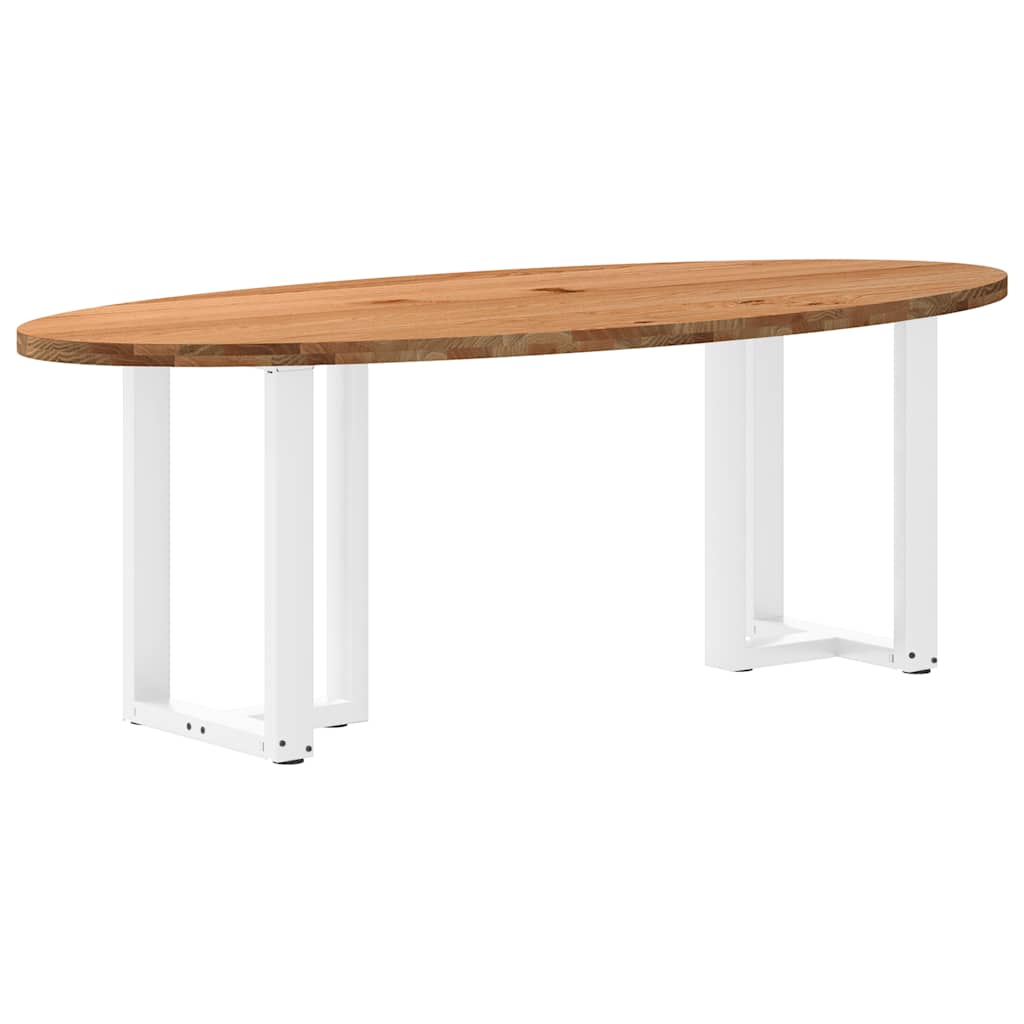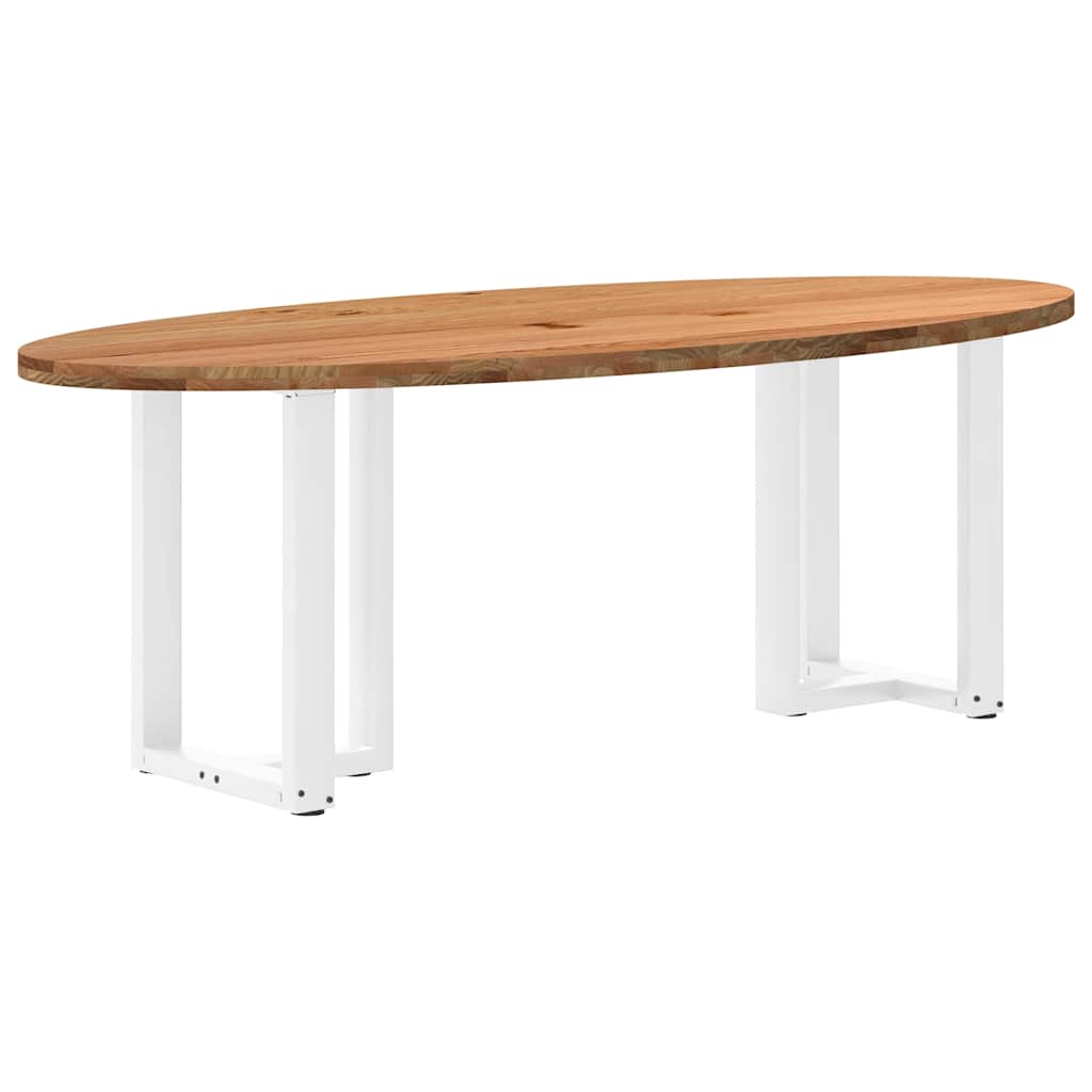 Mach jede Mahlzeit unvergesslich, indem du dich jeden Tag mit deiner Familie oder deinen Freunden um diesen Esstisch aus Holz versammelst! Robustes und langlebiges Material: Massives Eichenholz ist für seine Festigkeit, Haltbarkeit und schöne Maserung bekannt, weshalb es sich hervorragend für haltbare Möbel eignet. Durch seine natürliche Beständigkeit gegen Insektenbefall und Schimmelbildung sehen Eichenmöbel selbst nach jahrelangem Gebrauch brandneu aus.Großer Tisch: Dieser Tisch bietet mit seinen Maßen von 220 x 100 cm viel Platz zum Sitzen und ist das Herzstück deines Essbereichs.Einzigartiger Charme: Da Äste, Risse und Farbabweichungen natürliche Merkmale des Eichenholzes sind, hat jedes Stück dieses Produkts seinen ganz eigenen Charme. Auf den Bildern siehst du Beispiele für die zu erwartenden Variationen.Praktisches Design: Diese Esstischbeine sind mit verstellbaren Nivellierfüßen ausgestattet, die auch auf unebenen Böden für Stabilität sorgen und Bodenkratzer minimieren. Außerdem verfügt die Halterung über vorgebohrte Löcher und mitgelieferte Schrauben, mit denen das Bein an der Tischplatte befestigt werden kann, was die Montage erleichtert.Robustes und stabiles Gestell: Dieser Esszimmertisch hat T-förmige Beine aus pulverbeschichtetem Stahl, die für außergewöhnliche Stabilität und Sicherheit sorgen. Gut zu wissen:Jedes Stück ist ein Unikat, das in Farbe und Maserung variiert. Die Lieferung erfolgt in zufälliger Reihenfolge, wodurch die Exklusivität und Individualität deines Produkts gewährleistet wird.Äste und kleinere Fehler werden mit schwarzem Füllmaterial aufgefüllt, um eine schöne und glatte Tischoberfläche zu erhalten. Beispiele findest du in den Abbildungen.Die Tischplatte ist an den Rändern 4 cm dick, um ein robustes Aussehen zu gewährleisten, und in der Mitte 2 cm dick, um den Holzverbrauch und das Gesamtgewicht zu reduzieren.Bitte bohre die Löcher in der Mitte, nicht an den Rändern der Platte.Bitte achte darauf, die maximale Bohrtiefe von 15 mm nicht zu überschreiten, um die Tischplatte nicht zu beschädigen, da die Plattenstärke 20 mm beträgt.Wir empfehlen, einen Schraubendreher anstelle einer elektrischen Bohrmaschine zu verwenden, um Holzrisse beim Anbringen der Beine zu vermeiden.