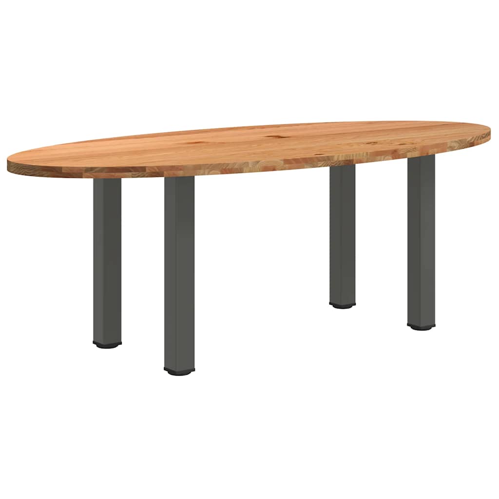 Mach jede Mahlzeit unvergesslich, indem du dich jeden Tag mit deiner Familie oder deinen Freunden um diesen Esstisch aus Holz versammelst! Robustes und langlebiges Material: Massives Eichenholz ist für seine Festigkeit, Haltbarkeit und schöne Maserung bekannt, weshalb es sich hervorragend für haltbare Möbel eignet. Durch seine natürliche Beständigkeit gegen Insektenbefall und Schimmelbildung sehen Eichenmöbel selbst nach jahrelangem Gebrauch brandneu aus.Großer Tisch: Dieser Tisch bietet mit seinen Maßen von 220 x 100 cm viel Platz zum Sitzen und ist das Herzstück deines Essbereichs.Einzigartiger Charme: Da Äste, Risse und Farbabweichungen natürliche Merkmale des Eichenholzes sind, hat jedes Stück dieses Produkts seinen ganz eigenen Charme. Auf den Bildern siehst du Beispiele für die zu erwartenden Variationen.Praktisches Design: Diese Esstischbeine sind mit verstellbaren Nivellierfüßen ausgestattet, die auch auf unebenen Böden für Stabilität sorgen und Bodenkratzer minimieren. Außerdem verfügt die Halterung über vorgebohrte Löcher und mitgelieferte Schrauben, mit denen das Bein an der Tischplatte befestigt werden kann, was die Montage erleichtert.Robustes und stabiles Gestell: Die Beine dieses Esszimmertischs sind aus pulverbeschichtetem Stahl gefertigt, der für außergewöhnliche Stabilität und Sicherheit sorgt. Gut zu wissen:Jedes Stück ist ein Unikat, das in Farbe und Maserung variiert. Die Lieferung erfolgt in zufälliger Reihenfolge, wodurch die Exklusivität und Individualität deines Produkts gewährleistet wird.Äste und kleinere Fehler werden mit schwarzem Füllmaterial aufgefüllt, um eine schöne und glatte Tischoberfläche zu erhalten. Beispiele findest du in den Abbildungen.Die Tischplatte ist an den Rändern 4 cm dick, um ein robustes Aussehen zu gewährleisten, und in der Mitte 2 cm dick, um den Holzverbrauch und das Gesamtgewicht zu reduzieren.Bitte bohre die Löcher in der Mitte, nicht an den Rändern der Platte.Bitte achte darauf, die maximale Bohrtiefe von 15 mm nicht zu überschreiten, um die Tischplatte nicht zu beschädigen, da die Plattenstärke 20 mm beträgt.Wir empfehlen, einen Schraubendreher anstelle einer elektrischen Bohrmaschine zu verwenden, um Holzrisse beim Anbringen der Beine zu vermeiden.