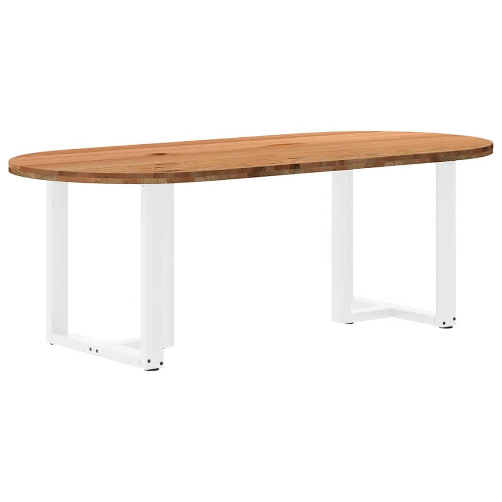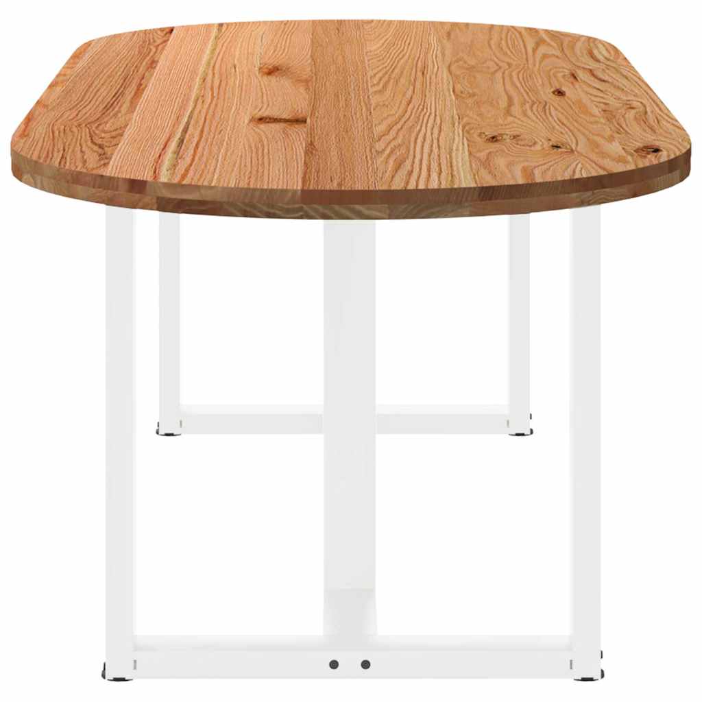 Mach jede Mahlzeit unvergesslich, indem du dich jeden Tag mit deiner Familie oder deinen Freunden um diesen Esstisch aus Holz versammelst! Robustes und langlebiges Material: Massives Eichenholz ist für seine Festigkeit, Haltbarkeit und schöne Maserung bekannt, weshalb es sich hervorragend für haltbare Möbel eignet. Durch seine natürliche Beständigkeit gegen Insektenbefall und Schimmelbildung sehen Eichenmöbel selbst nach jahrelangem Gebrauch brandneu aus.Großer Tisch: Dieser Tisch bietet mit seinen Maßen von 220 x 100 cm viel Platz zum Sitzen und ist das Herzstück deines Essbereichs.Einzigartiger Charme: Da Äste, Risse und Farbabweichungen natürliche Merkmale des Eichenholzes sind, hat jedes Stück dieses Produkts seinen ganz eigenen Charme. Auf den Bildern siehst du Beispiele für die zu erwartenden Variationen.Praktisches Design: Diese Esstischbeine sind mit verstellbaren Nivellierfüßen ausgestattet, die auch auf unebenen Böden für Stabilität sorgen und Bodenkratzer minimieren. Außerdem verfügt die Halterung über vorgebohrte Löcher und mitgelieferte Schrauben, mit denen das Bein an der Tischplatte befestigt werden kann, was die Montage erleichtert.Robustes und stabiles Gestell: Dieser Esszimmertisch hat T-förmige Beine aus pulverbeschichtetem Stahl, die für außergewöhnliche Stabilität und Sicherheit sorgen. Gut zu wissen:Jedes Stück ist ein Unikat, das in Farbe und Maserung variiert. Die Lieferung erfolgt in zufälliger Reihenfolge, wodurch die Exklusivität und Individualität deines Produkts gewährleistet wird.Äste und kleinere Fehler werden mit schwarzem Füllmaterial aufgefüllt, um eine schöne und glatte Tischoberfläche zu erhalten. Beispiele findest du in den Abbildungen.Die Tischplatte ist an den Rändern 4 cm dick, um ein robustes Aussehen zu gewährleisten, und in der Mitte 2 cm dick, um den Holzverbrauch und das Gesamtgewicht zu reduzieren.Bitte bohre die Löcher in der Mitte, nicht an den Rändern der Platte.Bitte achte darauf, die maximale Bohrtiefe von 15 mm nicht zu überschreiten, um die Tischplatte nicht zu beschädigen, da die Plattenstärke 20 mm beträgt.Wir empfehlen, einen Schraubendreher anstelle einer elektrischen Bohrmaschine zu verwenden, um Holzrisse beim Anbringen der Beine zu vermeiden.