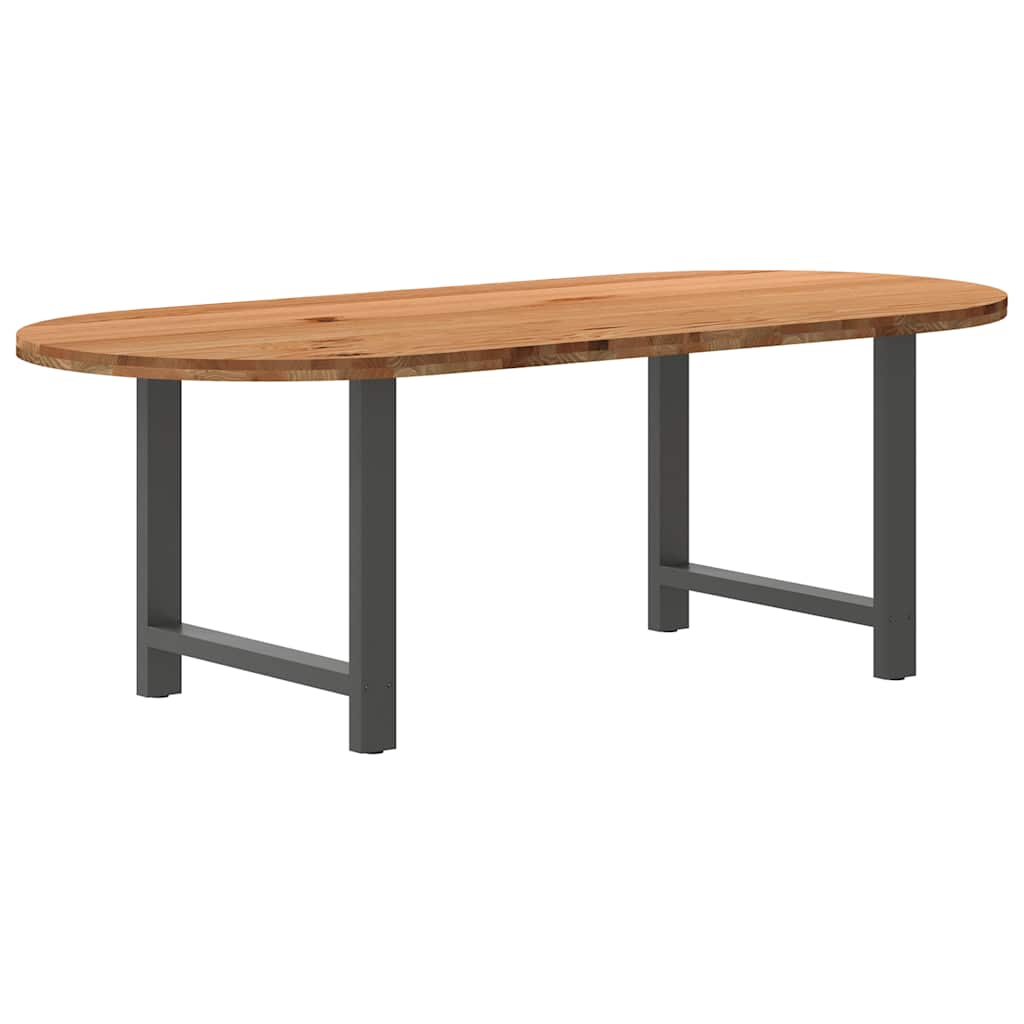Mach jede Mahlzeit unvergesslich, indem du dich jeden Tag mit deiner Familie oder deinen Freunden um diesen Esstisch aus Holz versammelst! Robustes und langlebiges Material: Massives Eichenholz ist für seine Festigkeit, Haltbarkeit und schöne Maserung bekannt, weshalb es sich hervorragend für haltbare Möbel eignet. Durch seine natürliche Beständigkeit gegen Insektenbefall und Schimmelbildung sehen Eichenmöbel selbst nach jahrelangem Gebrauch brandneu aus.Großer Tisch: Dieser Tisch bietet mit seinen Maßen von 220 x 100 cm viel Platz zum Sitzen und ist das Herzstück deines Essbereichs.Einzigartiger Charme: Da Äste, Risse und Farbabweichungen natürliche Merkmale des Eichenholzes sind, hat jedes Stück dieses Produkts seinen ganz eigenen Charme. Auf den Bildern siehst du Beispiele für die zu erwartenden Variationen.Praktisches Design: Diese Esstischbeine sind mit verstellbaren Nivellierfüßen ausgestattet, die auch auf unebenen Böden für Stabilität sorgen und Bodenkratzer minimieren. Außerdem verfügt die Halterung über vorgebohrte Löcher und mitgelieferte Schrauben, mit denen das Bein an der Tischplatte befestigt werden kann, was die Montage erleichtert.Robustes und stabiles Gestell: Dieser Esszimmertisch hat H-förmige Beine aus pulverbeschichtetem Stahl, die für außergewöhnliche Stabilität und Sicherheit sorgen. Gut zu wissen:Jedes Stück ist ein Unikat, das in Farbe und Maserung variiert. Die Lieferung erfolgt in zufälliger Reihenfolge, wodurch die Exklusivität und Individualität deines Produkts gewährleistet wird.Äste und kleinere Fehler werden mit schwarzem Füllmaterial aufgefüllt, um eine schöne und glatte Tischoberfläche zu erhalten. Beispiele findest du in den Abbildungen.Die Tischplatte ist an den Rändern 4 cm dick, um ein robustes Aussehen zu gewährleisten, und in der Mitte 2 cm dick, um den Holzverbrauch und das Gesamtgewicht zu reduzieren.Bitte bohre die Löcher in der Mitte, nicht an den Rändern der Platte.Bitte achte darauf, die maximale Bohrtiefe von 15 mm nicht zu überschreiten, um die Tischplatte nicht zu beschädigen, da die Plattenstärke 20 mm beträgt.Wir empfehlen, einen Schraubendreher anstelle einer elektrischen Bohrmaschine zu verwenden, um Holzrisse beim Anbringen der Beine zu vermeiden.