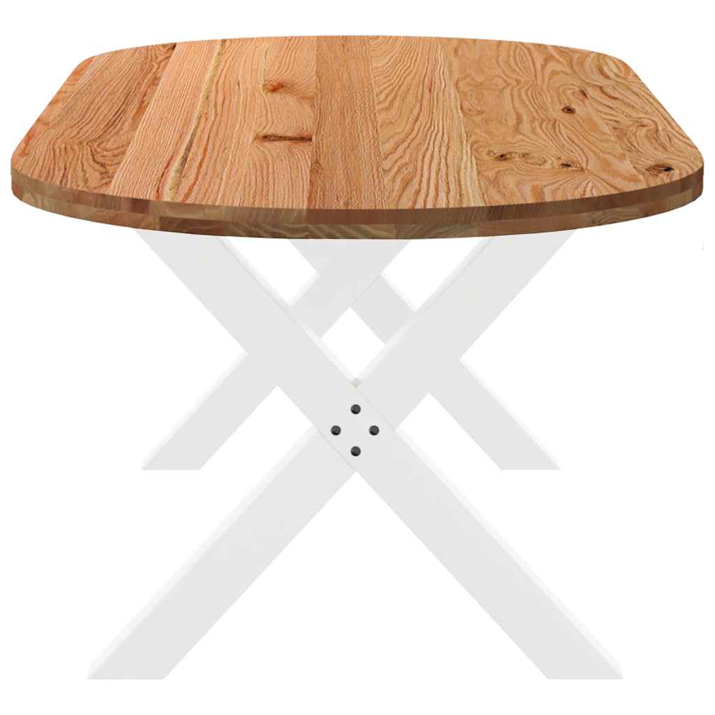 Mach jede Mahlzeit unvergesslich, indem du dich jeden Tag mit deiner Familie oder deinen Freunden um diesen Esstisch aus Holz versammelst! Robustes und langlebiges Material: Massives Eichenholz ist für seine Festigkeit, Haltbarkeit und schöne Maserung bekannt, weshalb es sich hervorragend für haltbare Möbel eignet. Durch seine natürliche Beständigkeit gegen Insektenbefall und Schimmelbildung sehen Eichenmöbel selbst nach jahrelangem Gebrauch brandneu aus.Großer Tisch: Dieser Tisch bietet mit seinen Maßen von 220 x 100 cm viel Platz zum Sitzen und ist das Herzstück deines Essbereichs.Einzigartiger Charme: Da Äste, Risse und Farbabweichungen natürliche Merkmale des Eichenholzes sind, hat jedes Stück dieses Produkts seinen ganz eigenen Charme. Auf den Bildern siehst du Beispiele für die zu erwartenden Variationen.Praktisches Design: Diese Esstischbeine sind mit verstellbaren Nivellierfüßen ausgestattet, die auch auf unebenen Böden für Stabilität sorgen und Bodenkratzer minimieren. Außerdem verfügt die Halterung über vorgebohrte Löcher und mitgelieferte Schrauben, mit denen das Bein an der Tischplatte befestigt werden kann, was die Montage erleichtert.Robustes und stabiles Gestell: Dieser Esszimmertisch hat X-förmige Beine aus pulverbeschichtetem Stahl, die für außergewöhnliche Stabilität und Sicherheit sorgen. Gut zu wissen:Jedes Stück ist ein Unikat, das in Farbe und Maserung variiert. Die Lieferung erfolgt in zufälliger Reihenfolge, wodurch die Exklusivität und Individualität deines Produkts gewährleistet wird.Äste und kleinere Fehler werden mit schwarzem Füllmaterial aufgefüllt, um eine schöne und glatte Tischoberfläche zu erhalten. Beispiele findest du in den Abbildungen.Die Tischplatte ist an den Rändern 4 cm dick, um ein robustes Aussehen zu gewährleisten, und in der Mitte 2 cm dick, um den Holzverbrauch und das Gesamtgewicht zu reduzieren.Bitte bohre die Löcher in der Mitte, nicht an den Rändern der Platte.Bitte achte darauf, die maximale Bohrtiefe von 15 mm nicht zu überschreiten, um die Tischplatte nicht zu beschädigen, da die Plattenstärke 20 mm beträgt.Wir empfehlen, einen Schraubendreher anstelle einer elektrischen Bohrmaschine zu verwenden, um Holzrisse beim Anbringen der Beine zu vermeiden.