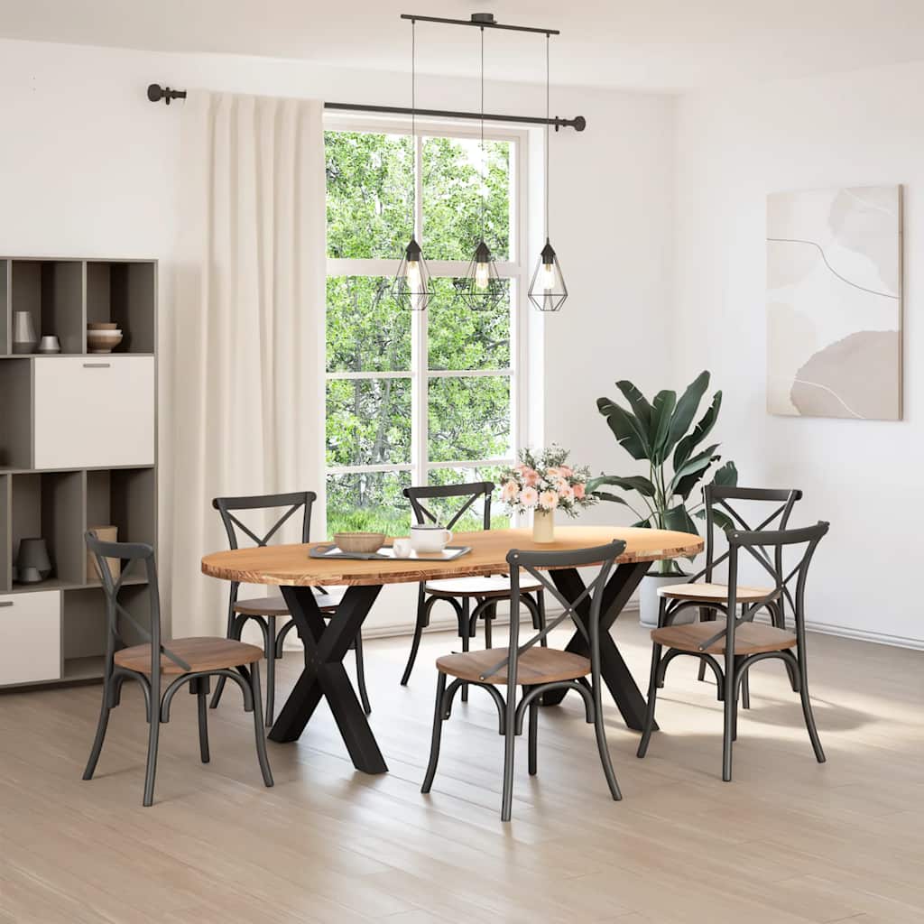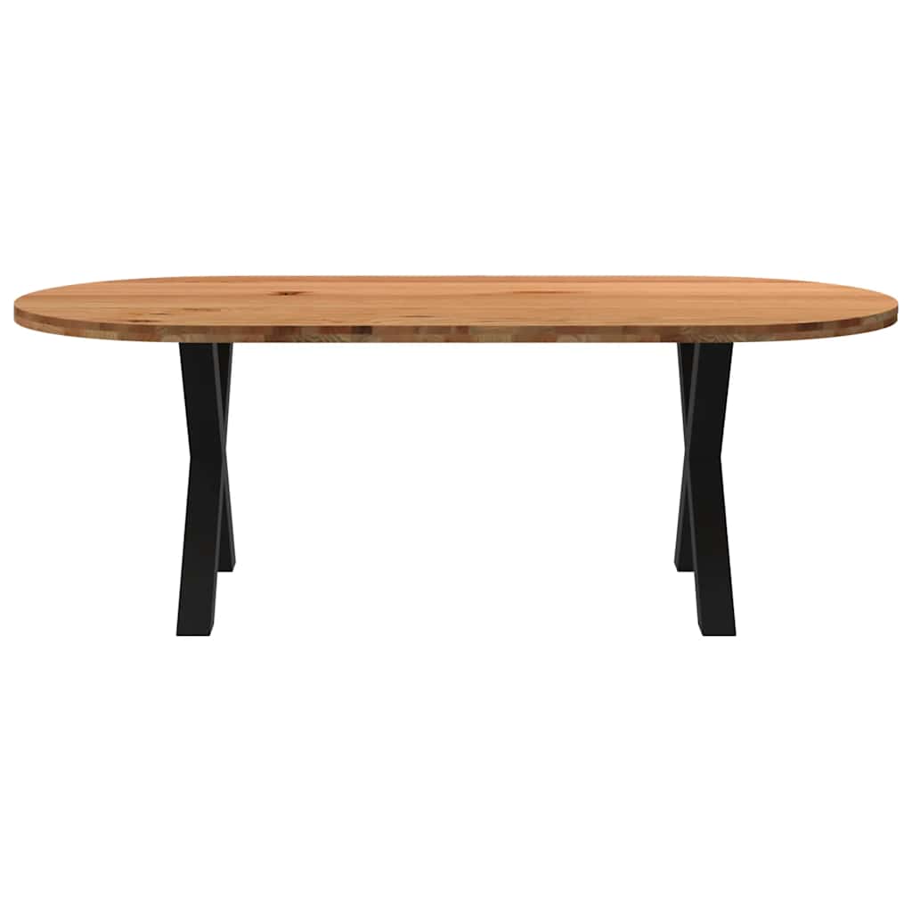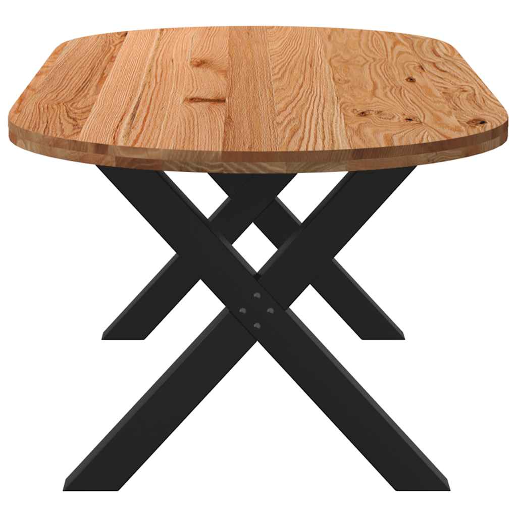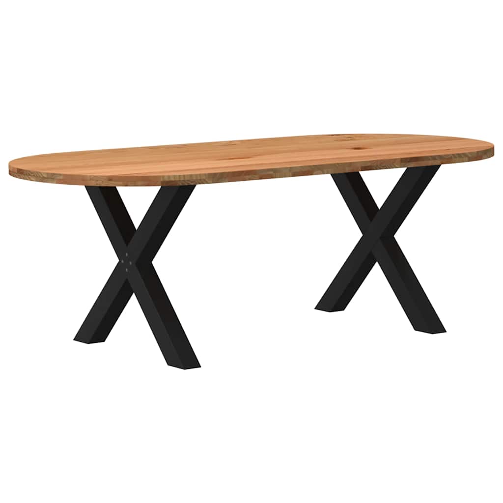 Mach jede Mahlzeit unvergesslich, indem du dich jeden Tag mit deiner Familie oder deinen Freunden um diesen Esstisch aus Holz versammelst! Robustes und langlebiges Material: Massives Eichenholz ist für seine Festigkeit, Haltbarkeit und schöne Maserung bekannt, weshalb es sich hervorragend für haltbare Möbel eignet. Durch seine natürliche Beständigkeit gegen Insektenbefall und Schimmelbildung sehen Eichenmöbel selbst nach jahrelangem Gebrauch brandneu aus.Großer Tisch: Dieser Tisch bietet mit seinen Maßen von 220 x 100 cm viel Platz zum Sitzen und ist das Herzstück deines Essbereichs.Einzigartiger Charme: Da Äste, Risse und Farbabweichungen natürliche Merkmale des Eichenholzes sind, hat jedes Stück dieses Produkts seinen ganz eigenen Charme. Auf den Bildern siehst du Beispiele für die zu erwartenden Variationen.Praktisches Design: Diese Esstischbeine sind mit verstellbaren Nivellierfüßen ausgestattet, die auch auf unebenen Böden für Stabilität sorgen und Bodenkratzer minimieren. Außerdem verfügt die Halterung über vorgebohrte Löcher und mitgelieferte Schrauben, mit denen das Bein an der Tischplatte befestigt werden kann, was die Montage erleichtert.Robustes und stabiles Gestell: Dieser Esszimmertisch hat X-förmige Beine aus pulverbeschichtetem Stahl, die für außergewöhnliche Stabilität und Sicherheit sorgen. Gut zu wissen:Jedes Stück ist ein Unikat, das in Farbe und Maserung variiert. Die Lieferung erfolgt in zufälliger Reihenfolge, wodurch die Exklusivität und Individualität deines Produkts gewährleistet wird.Äste und kleinere Fehler werden mit schwarzem Füllmaterial aufgefüllt, um eine schöne und glatte Tischoberfläche zu erhalten. Beispiele findest du in den Abbildungen.Die Tischplatte ist an den Rändern 4 cm dick, um ein robustes Aussehen zu gewährleisten, und in der Mitte 2 cm dick, um den Holzverbrauch und das Gesamtgewicht zu reduzieren.Bitte bohre die Löcher in der Mitte, nicht an den Rändern der Platte.Bitte achte darauf, die maximale Bohrtiefe von 15 mm nicht zu überschreiten, um die Tischplatte nicht zu beschädigen, da die Plattenstärke 20 mm beträgt.Wir empfehlen, einen Schraubendreher anstelle einer elektrischen Bohrmaschine zu verwenden, um Holzrisse beim Anbringen der Beine zu vermeiden.