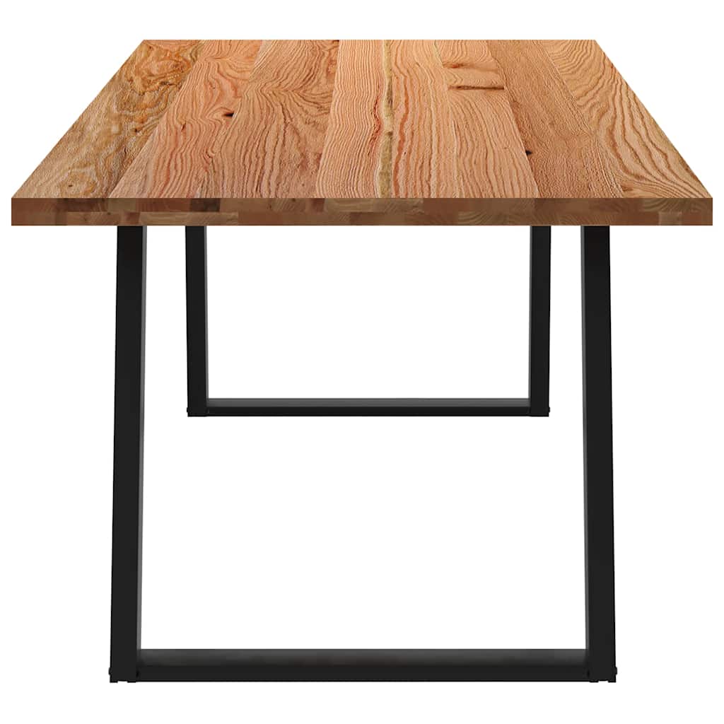 Mach jede Mahlzeit unvergesslich, indem du dich jeden Tag mit deiner Familie oder deinen Freunden um diesen Esstisch aus Holz versammelst! Robustes und langlebiges Material: Massives Eichenholz ist für seine Festigkeit, Haltbarkeit und schöne Maserung bekannt, weshalb es sich hervorragend für haltbare Möbel eignet. Durch seine natürliche Beständigkeit gegen Insektenbefall und Schimmelbildung sehen Eichenmöbel selbst nach jahrelangem Gebrauch brandneu aus.Großer Tisch: Dieser Tisch bietet mit seinen Maßen von 220 x 100 cm viel Platz zum Sitzen und ist das Herzstück deines Essbereichs.Einzigartiger Charme: Da Äste, Risse und Farbabweichungen natürliche Merkmale des Eichenholzes sind, hat jedes Stück dieses Produkts seinen ganz eigenen Charme. Auf den Bildern siehst du Beispiele für die zu erwartenden Variationen.Praktisches Design: Diese Esstischbeine sind mit verstellbaren Nivellierfüßen ausgestattet, die auch auf unebenen Böden für Stabilität sorgen und Bodenkratzer minimieren. Außerdem verfügt die Halterung über vorgebohrte Löcher und mitgelieferte Schrauben, mit denen das Bein an der Tischplatte befestigt werden kann, was die Montage erleichtert.Robustes und stabiles Gestell: Dieser Esszimmertisch hat U-förmige Beine aus pulverbeschichtetem Stahl, die für außergewöhnliche Stabilität und Sicherheit sorgen. Gut zu wissen:Jedes Stück ist ein Unikat, das in Farbe und Maserung variiert. Die Lieferung erfolgt in zufälliger Reihenfolge, wodurch die Exklusivität und Individualität deines Produkts gewährleistet wird.Äste und kleinere Fehler werden mit schwarzem Füllmaterial aufgefüllt, um eine schöne und glatte Tischoberfläche zu erhalten. Beispiele findest du in den Abbildungen.Die Tischplatte ist an den Rändern 4 cm dick, um ein robustes Aussehen zu gewährleisten, und in der Mitte 2 cm dick, um den Holzverbrauch und das Gesamtgewicht zu reduzieren.Bitte bohre die Löcher in der Mitte, nicht an den Rändern der Platte.Bitte achte darauf, die maximale Bohrtiefe von 15 mm nicht zu überschreiten, um die Tischplatte nicht zu beschädigen, da die Plattenstärke 20 mm beträgt.Wir empfehlen, einen Schraubendreher anstelle einer elektrischen Bohrmaschine zu verwenden, um Holzrisse beim Anbringen der Beine zu vermeiden.