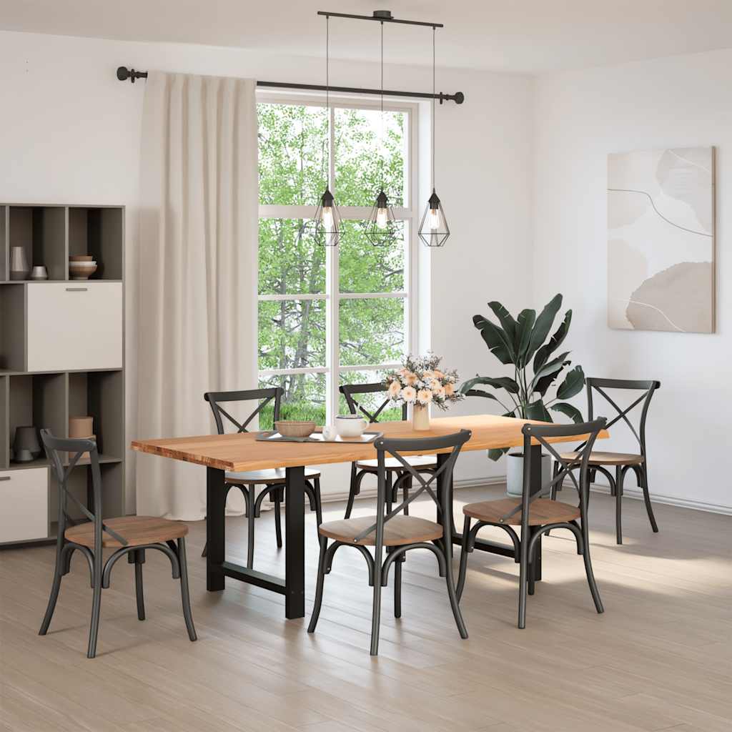 Mach jede Mahlzeit unvergesslich, indem du dich jeden Tag mit deiner Familie oder deinen Freunden um diesen Esstisch aus Holz versammelst! Robustes und langlebiges Material: Massives Eichenholz ist für seine Festigkeit, Haltbarkeit und schöne Maserung bekannt, weshalb es sich hervorragend für haltbare Möbel eignet. Durch seine natürliche Beständigkeit gegen Insektenbefall und Schimmelbildung sehen Eichenmöbel selbst nach jahrelangem Gebrauch brandneu aus.Großer Tisch: Dieser Tisch bietet mit seinen Maßen von 220 x 100 cm viel Platz zum Sitzen und ist das Herzstück deines Essbereichs.Einzigartiger Charme: Da Äste, Risse und Farbabweichungen natürliche Merkmale des Eichenholzes sind, hat jedes Stück dieses Produkts seinen ganz eigenen Charme. Auf den Bildern siehst du Beispiele für die zu erwartenden Variationen.Praktisches Design: Diese Esstischbeine sind mit verstellbaren Nivellierfüßen ausgestattet, die auch auf unebenen Böden für Stabilität sorgen und Bodenkratzer minimieren. Außerdem verfügt die Halterung über vorgebohrte Löcher und mitgelieferte Schrauben, mit denen das Bein an der Tischplatte befestigt werden kann, was die Montage erleichtert.Robustes und stabiles Gestell: Dieser Esszimmertisch hat H-förmige Beine aus pulverbeschichtetem Stahl, die für außergewöhnliche Stabilität und Sicherheit sorgen. Gut zu wissen:Jedes Stück ist ein Unikat, das in Farbe und Maserung variiert. Die Lieferung erfolgt in zufälliger Reihenfolge, wodurch die Exklusivität und Individualität deines Produkts gewährleistet wird.Äste und kleinere Fehler werden mit schwarzem Füllmaterial aufgefüllt, um eine schöne und glatte Tischoberfläche zu erhalten. Beispiele findest du in den Abbildungen.Die Tischplatte ist an den Rändern 4 cm dick, um ein robustes Aussehen zu gewährleisten, und in der Mitte 2 cm dick, um den Holzverbrauch und das Gesamtgewicht zu reduzieren.Bitte bohre die Löcher in der Mitte, nicht an den Rändern der Platte.Bitte achte darauf, die maximale Bohrtiefe von 15 mm nicht zu überschreiten, um die Tischplatte nicht zu beschädigen, da die Plattenstärke 20 mm beträgt.Wir empfehlen, einen Schraubendreher anstelle einer elektrischen Bohrmaschine zu verwenden, um Holzrisse beim Anbringen der Beine zu vermeiden.