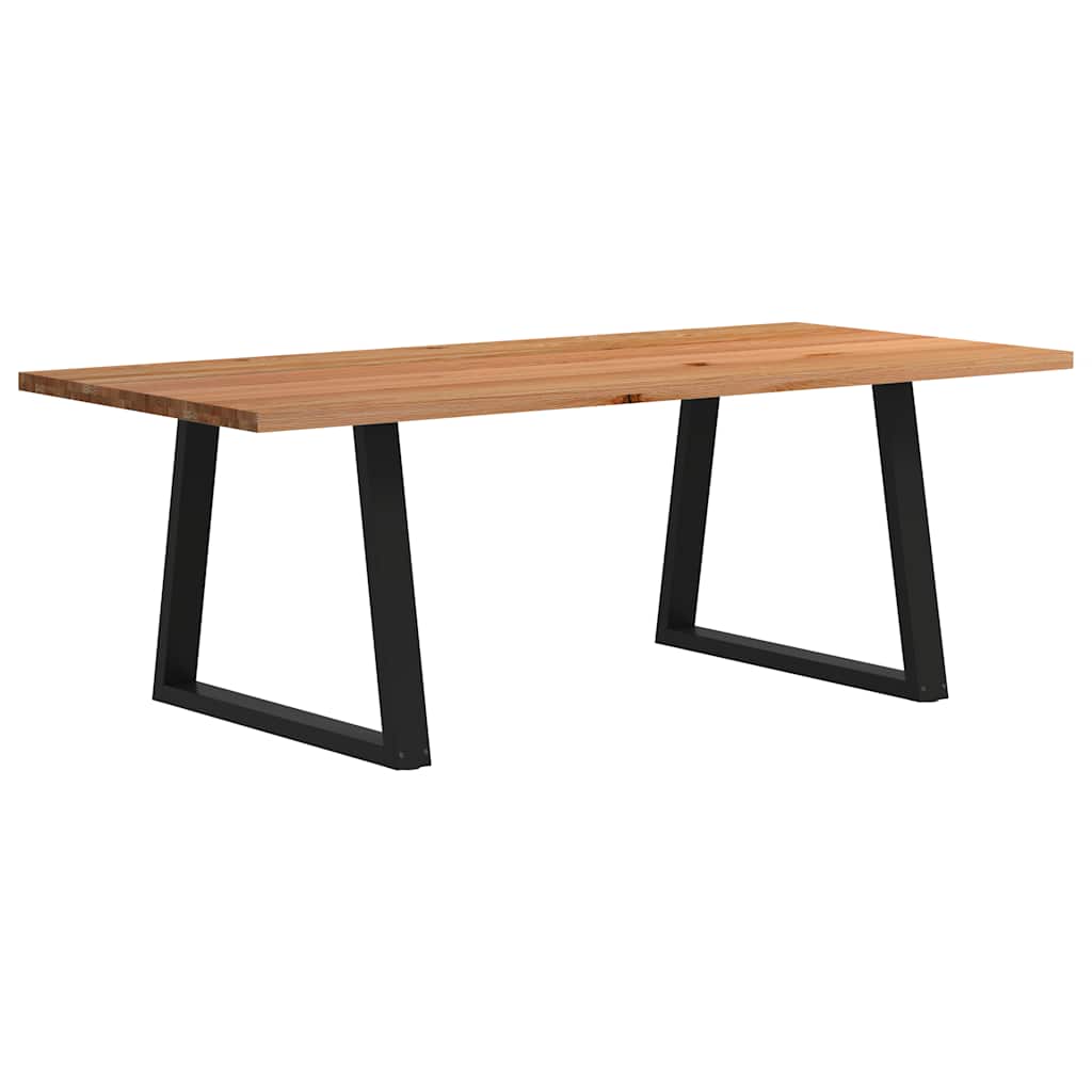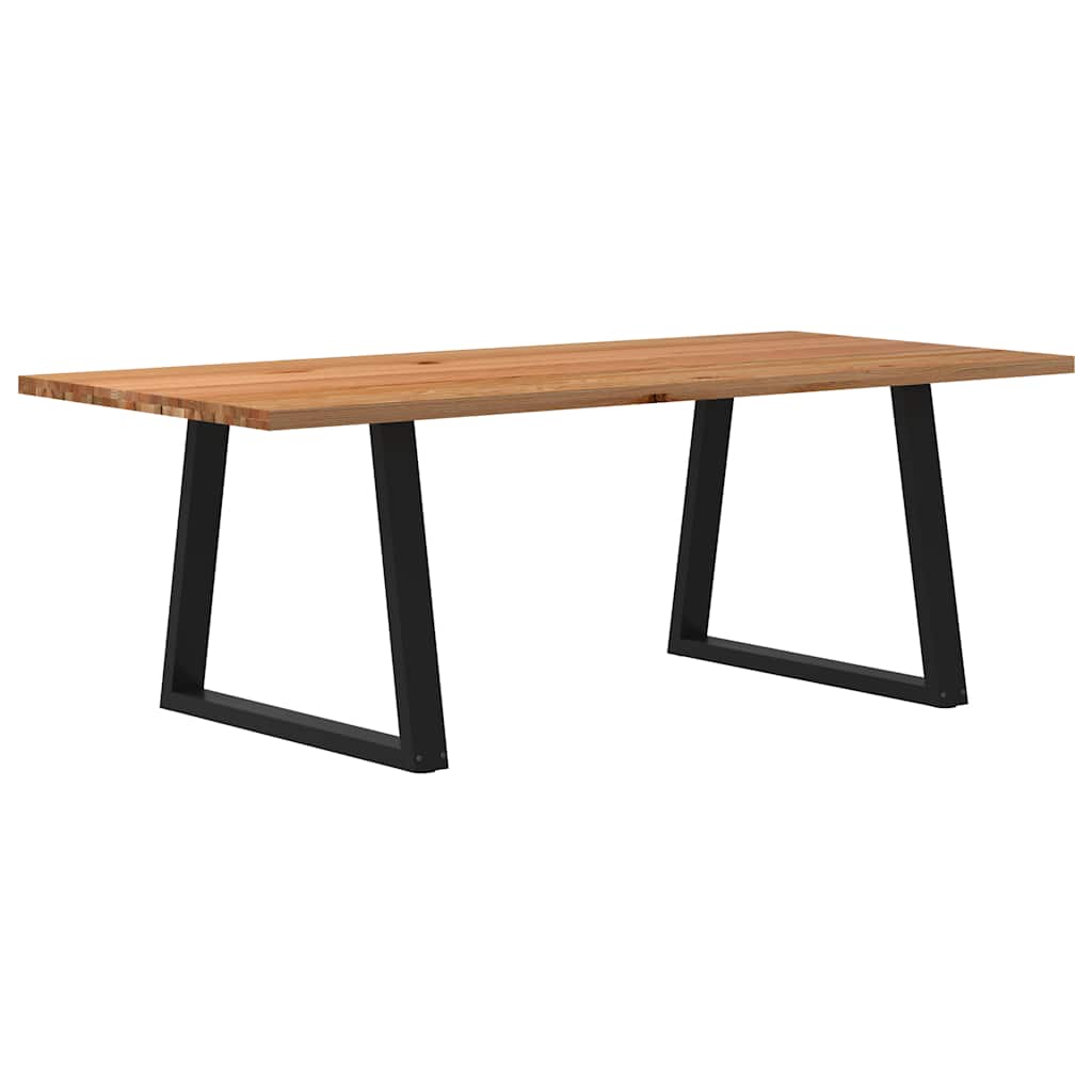 Mach jede Mahlzeit unvergesslich, indem du dich jeden Tag mit deiner Familie oder deinen Freunden um diesen Esstisch aus Holz versammelst! Robustes und langlebiges Material: Massives Eichenholz ist für seine Festigkeit, Haltbarkeit und schöne Maserung bekannt, weshalb es sich hervorragend für haltbare Möbel eignet. Durch seine natürliche Beständigkeit gegen Insektenbefall und Schimmelbildung sehen Eichenmöbel selbst nach jahrelangem Gebrauch brandneu aus.Großer Tisch: Dieser Küchentisch bietet mit seinen Maßen von 220 x 100 cm viel Platz zum Sitzen und ist das Herzstück deines Essbereichs.Einzigartiger Charme: Da Äste, Risse und Farbabweichungen natürliche Merkmale des Eichenholzes sind, hat jedes Stück dieses Produkts seinen ganz eigenen Charme. Auf den Bildern siehst du Beispiele für die zu erwartenden Variationen.Praktisches Design: Diese Esstischbeine sind mit verstellbaren Nivellierfüßen ausgestattet, die auch auf unebenen Böden für Stabilität sorgen und Bodenkratzer minimieren. Außerdem verfügt die Halterung über vorgebohrte Löcher und mitgelieferte Schrauben, mit denen das Bein an der Tischplatte befestigt werden kann, was die Montage erleichtert. Gut zu wissen:Jedes Stück ist ein Unikat, das in Farbe und Maserung variiert. Die Lieferung erfolgt in zufälliger Reihenfolge, wodurch die Exklusivität und Individualität deines Produkts gewährleistet wird.Äste und kleinere Fehler werden mit schwarzem Füllmaterial aufgefüllt, um eine schöne und glatte Tischoberfläche zu erhalten. Beispiele findest du in den Abbildungen.Die Tischplatte ist an den Rändern 4 cm dick, um ein robustes Aussehen zu gewährleisten, und in der Mitte 2 cm dick, um den Holzverbrauch und das Gesamtgewicht zu reduzieren.Bitte bohre die Löcher in der Mitte, nicht an den Rändern der Platte.Bitte achte darauf, die maximale Bohrtiefe von 15 mm nicht zu überschreiten, um die Tischplatte nicht zu beschädigen, da die Plattenstärke 20 mm beträgt.Wir empfehlen, einen Schraubendreher anstelle einer elektrischen Bohrmaschine zu verwenden, um Holzrisse beim Anbringen der Beine zu vermeiden.