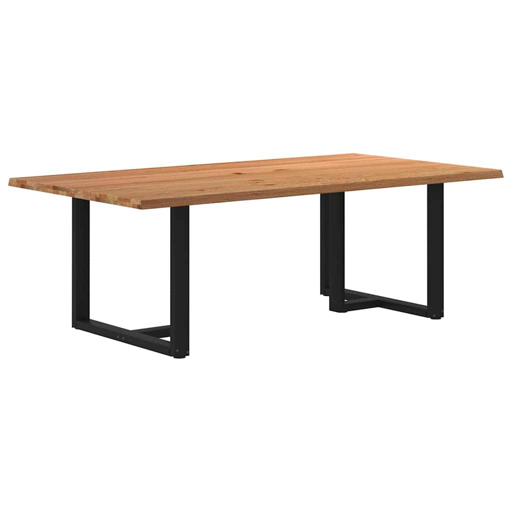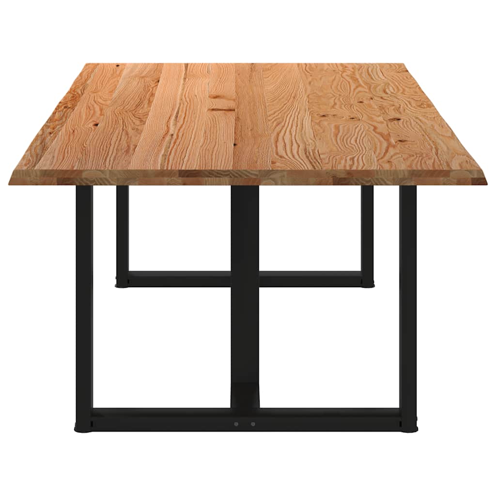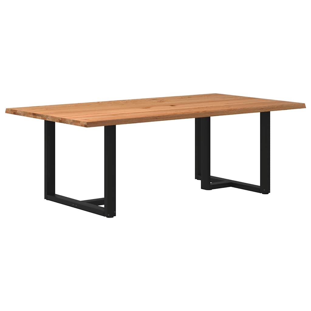 Mach jede Mahlzeit unvergesslich, indem du dich jeden Tag mit deiner Familie oder deinen Freunden um diesen Esstisch aus Holz versammelst! Robustes und langlebiges Material: Massives Eichenholz ist für seine Festigkeit, Haltbarkeit und schöne Maserung bekannt, weshalb es sich hervorragend für haltbare Möbel eignet. Durch seine natürliche Beständigkeit gegen Insektenbefall und Schimmelbildung sehen Eichenmöbel selbst nach jahrelangem Gebrauch brandneu aus.Großer Tisch: Dieser Tisch bietet mit seinen Maßen von 220 x 120 cm viel Platz zum Sitzen und ist das Herzstück deines Essbereichs.Naturkanten: Diese Tischplatte hat geschwungene Kanten, die von der natürlichen Form eines Baumes inspiriert sind und deinem Tisch eine charmante Note verleihen.Einzigartiger Charme: Da Äste, Risse und Farbabweichungen natürliche Merkmale des Eichenholzes sind, hat jedes Stück dieses Produkts seinen ganz eigenen Charme. Auf den Bildern siehst du Beispiele für die zu erwartenden Variationen.Praktisches Design: Diese Esstischbeine sind mit verstellbaren Nivellierfüßen ausgestattet, die auch auf unebenen Böden für Stabilität sorgen und Bodenkratzer minimieren. Außerdem verfügt die Halterung über vorgebohrte Löcher und mitgelieferte Schrauben, mit denen das Bein an der Tischplatte befestigt werden kann, was die Montage erleichtert. Gut zu wissen:Jedes Stück ist ein Unikat, das in Farbe und Maserung variiert. Die Lieferung erfolgt in zufälliger Reihenfolge, wodurch die Exklusivität und Individualität deines Produkts gewährleistet wird.Äste und kleinere Fehler werden mit schwarzem Füllmaterial aufgefüllt, um eine schöne und glatte Tischoberfläche zu erhalten. Beispiele findest du in den Abbildungen.Die Tischplatte ist an den Rändern 4 cm dick, um ein robustes Aussehen zu gewährleisten, und in der Mitte 2 cm dick, um den Holzverbrauch und das Gesamtgewicht zu reduzieren.Bitte bohre die Löcher in der Mitte, nicht an den Rändern der Platte.Bitte achte darauf, die maximale Bohrtiefe von 15 mm nicht zu überschreiten, um die Tischplatte nicht zu beschädigen, da die Plattenstärke 20 mm beträgt.Wir empfehlen, einen Schraubendreher anstelle einer elektrischen Bohrmaschine zu verwenden, um Holzrisse beim Anbringen der Beine zu vermeiden.