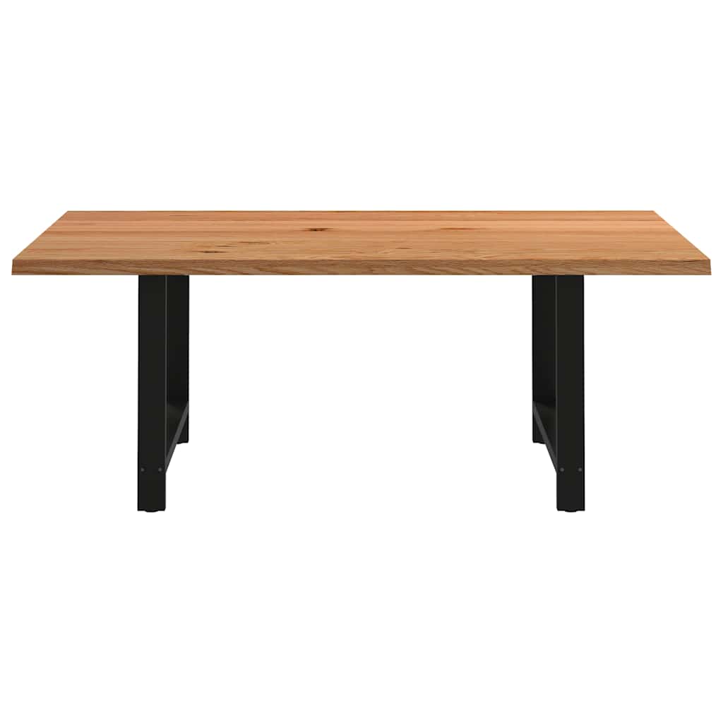 Mach jede Mahlzeit unvergesslich, indem du dich jeden Tag mit deiner Familie oder deinen Freunden um diesen Esstisch aus Holz versammelst! Robustes und langlebiges Material: Massives Eichenholz ist für seine Festigkeit, Haltbarkeit und schöne Maserung bekannt, weshalb es sich hervorragend für haltbare Möbel eignet. Durch seine natürliche Beständigkeit gegen Insektenbefall und Schimmelbildung sehen Eichenmöbel selbst nach jahrelangem Gebrauch brandneu aus.Großer Tisch: Dieser Tisch bietet mit seinen Maßen von 220 x 120 cm viel Platz zum Sitzen und ist das Herzstück deines Essbereichs.Einzigartiger Charme: Da Äste, Risse und Farbabweichungen natürliche Merkmale des Eichenholzes sind, hat jedes Stück dieses Produkts seinen ganz eigenen Charme. Auf den Bildern siehst du Beispiele für die zu erwartenden Variationen.Praktisches Design: Diese Esstischbeine sind mit verstellbaren Nivellierfüßen ausgestattet, die auch auf unebenen Böden für Stabilität sorgen und Bodenkratzer minimieren. Außerdem verfügt die Halterung über vorgebohrte Löcher und mitgelieferte Schrauben, mit denen das Bein an der Tischplatte befestigt werden kann, was die Montage erleichtert.Robustes und stabiles Gestell: Dieser Esszimmertisch hat H-förmige Beine aus pulverbeschichtetem Stahl, die für außergewöhnliche Stabilität und Sicherheit sorgen. Gut zu wissen:Jedes Stück ist ein Unikat, das in Farbe und Maserung variiert. Die Lieferung erfolgt in zufälliger Reihenfolge, wodurch die Exklusivität und Individualität deines Produkts gewährleistet wird.Äste und kleinere Fehler werden mit schwarzem Füllmaterial aufgefüllt, um eine schöne und glatte Tischoberfläche zu erhalten. Beispiele findest du in den Abbildungen.Die Tischplatte ist an den Rändern 4 cm dick, um ein robustes Aussehen zu gewährleisten, und in der Mitte 2 cm dick, um den Holzverbrauch und das Gesamtgewicht zu reduzieren.Bitte bohre die Löcher in der Mitte, nicht an den Rändern der Platte.Bitte achte darauf, die maximale Bohrtiefe von 15 mm nicht zu überschreiten, um die Tischplatte nicht zu beschädigen, da die Plattenstärke 20 mm beträgt.Wir empfehlen, einen Schraubendreher anstelle einer elektrischen Bohrmaschine zu verwenden, um Holzrisse beim Anbringen der Beine zu vermeiden.