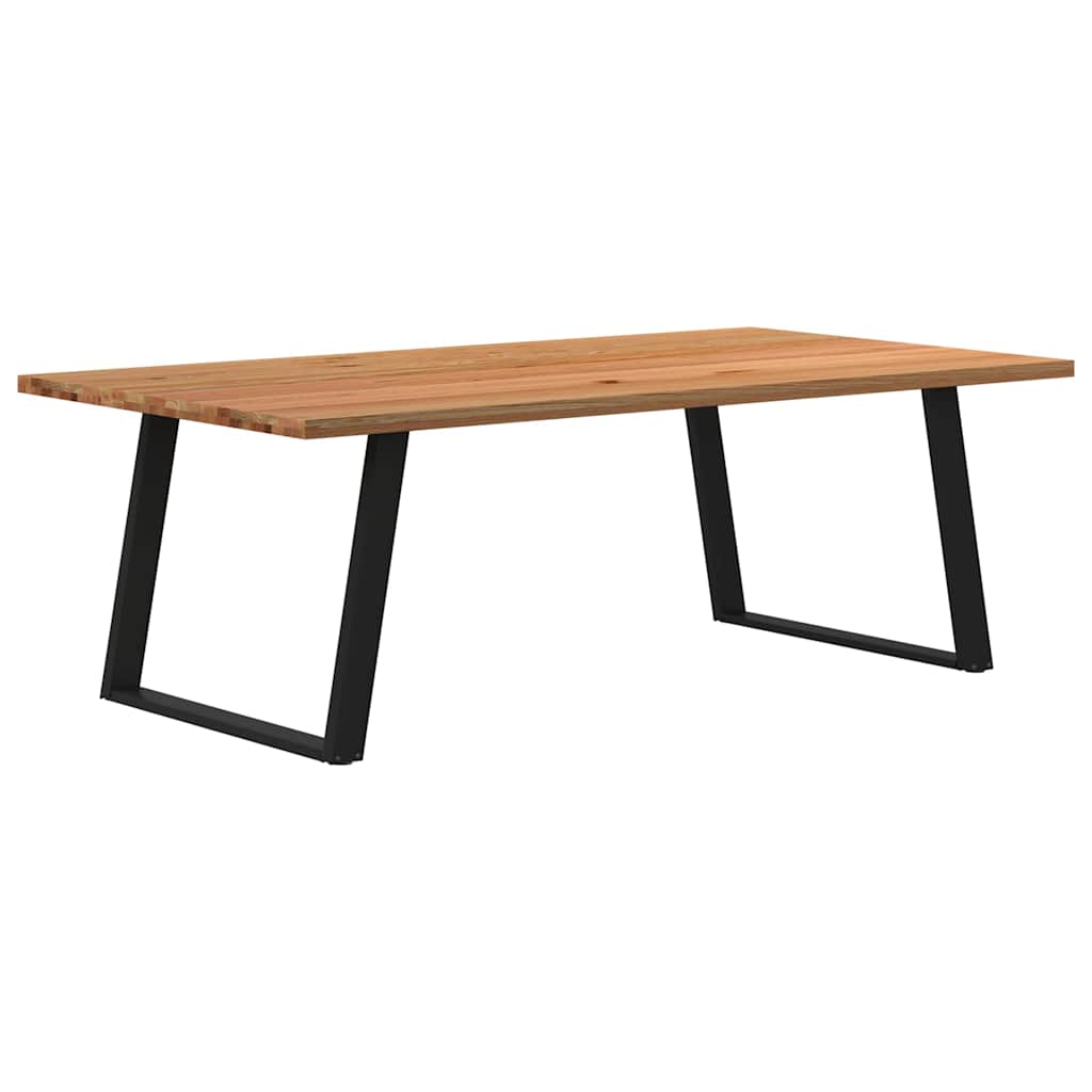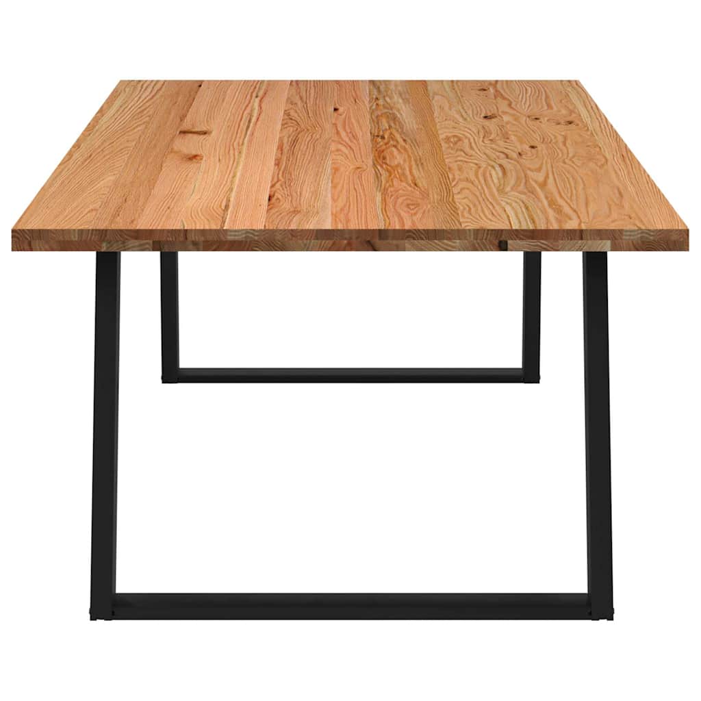 Mach jede Mahlzeit unvergesslich, indem du dich jeden Tag mit deiner Familie oder deinen Freunden um diesen Esstisch aus Holz versammelst! Robustes und langlebiges Material: Massives Eichenholz ist für seine Festigkeit, Haltbarkeit und schöne Maserung bekannt, weshalb es sich hervorragend für haltbare Möbel eignet. Durch seine natürliche Beständigkeit gegen Insektenbefall und Schimmelbildung sehen Eichenmöbel selbst nach jahrelangem Gebrauch brandneu aus.Großer Tisch: Dieser Tisch bietet mit seinen Maßen von 220 x 120 cm viel Platz zum Sitzen und ist das Herzstück deines Essbereichs.Einzigartiger Charme: Da Äste, Risse und Farbabweichungen natürliche Merkmale des Eichenholzes sind, hat jedes Stück dieses Produkts seinen ganz eigenen Charme. Auf den Bildern siehst du Beispiele für die zu erwartenden Variationen.Praktisches Design: Diese Esstischbeine sind mit verstellbaren Nivellierfüßen ausgestattet, die auch auf unebenen Böden für Stabilität sorgen und Bodenkratzer minimieren. Außerdem verfügt die Halterung über vorgebohrte Löcher und mitgelieferte Schrauben, mit denen das Bein an der Tischplatte befestigt werden kann, was die Montage erleichtert.Robustes und stabiles Gestell: Dieser Esszimmertisch hat U-förmige Beine aus pulverbeschichtetem Stahl, die für außergewöhnliche Stabilität und Sicherheit sorgen. Gut zu wissen:Jedes Stück ist ein Unikat, das in Farbe und Maserung variiert. Die Lieferung erfolgt in zufälliger Reihenfolge, wodurch die Exklusivität und Individualität deines Produkts gewährleistet wird.Äste und kleinere Fehler werden mit schwarzem Füllmaterial aufgefüllt, um eine schöne und glatte Tischoberfläche zu erhalten. Beispiele findest du in den Abbildungen.Die Tischplatte ist an den Rändern 4 cm dick, um ein robustes Aussehen zu gewährleisten, und in der Mitte 2 cm dick, um den Holzverbrauch und das Gesamtgewicht zu reduzieren.Bitte bohre die Löcher in der Mitte, nicht an den Rändern der Platte.Bitte achte darauf, die maximale Bohrtiefe von 15 mm nicht zu überschreiten, um die Tischplatte nicht zu beschädigen, da die Plattenstärke 20 mm beträgt.Wir empfehlen, einen Schraubendreher anstelle einer elektrischen Bohrmaschine zu verwenden, um Holzrisse beim Anbringen der Beine zu vermeiden.
