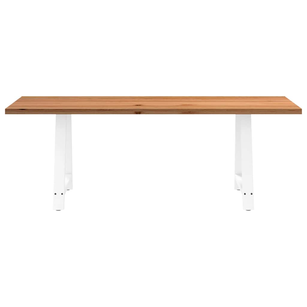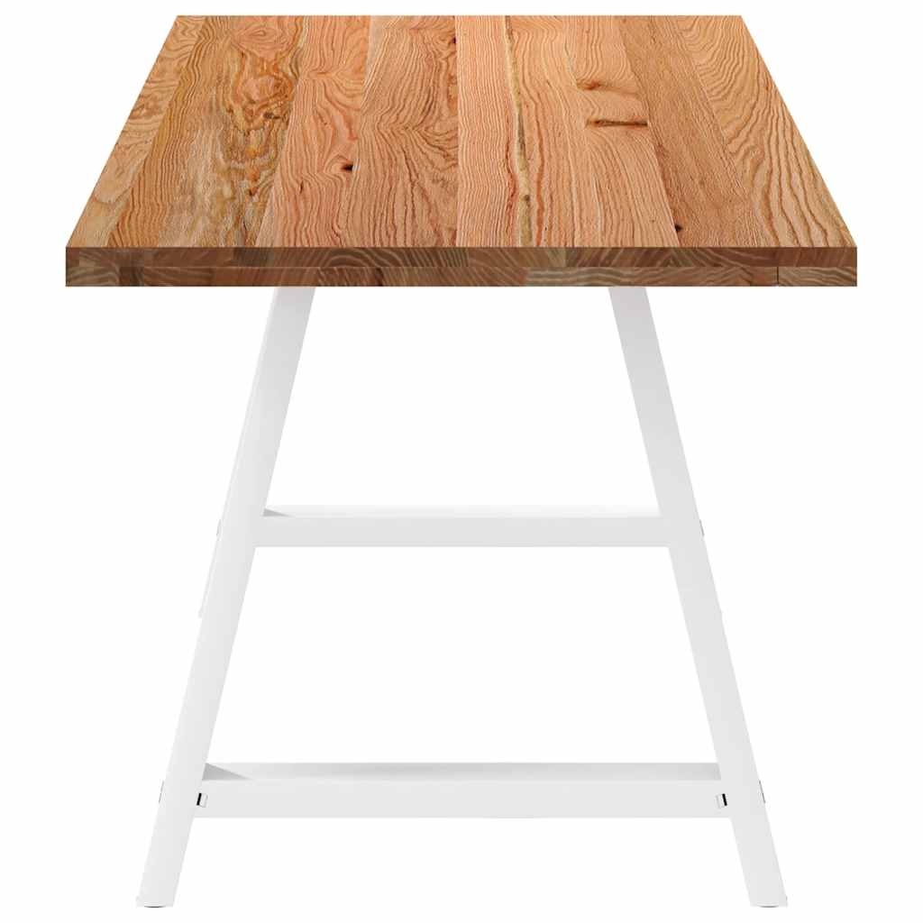 Mach jede Mahlzeit unvergesslich, indem du dich jeden Tag mit deiner Familie oder deinen Freunden um diesen Esstisch aus Holz versammelst! Robustes und langlebiges Material: Massives Eichenholz ist für seine Festigkeit, Haltbarkeit und schöne Maserung bekannt, weshalb es sich hervorragend für haltbare Möbel eignet. Durch seine natürliche Beständigkeit gegen Insektenbefall und Schimmelbildung sehen Eichenmöbel selbst nach jahrelangem Gebrauch brandneu aus.Großer Tisch: Dieser Tisch bietet mit seinen Maßen von 220 x 80 cm viel Platz zum Sitzen und ist das Herzstück deines Essbereichs.Einzigartiger Charme: Da Äste, Risse und Farbabweichungen natürliche Merkmale des Eichenholzes sind, hat jedes Stück dieses Produkts seinen ganz eigenen Charme. Auf den Bildern siehst du Beispiele für die zu erwartenden Variationen.Praktisches Design: Diese Esstischbeine sind mit verstellbaren Nivellierfüßen ausgestattet, die auch auf unebenen Böden für Stabilität sorgen und Bodenkratzer minimieren. Außerdem verfügt die Halterung über vorgebohrte Löcher und mitgelieferte Schrauben, mit denen das Bein an der Tischplatte befestigt werden kann, was die Montage erleichtert.Robustes und stabiles Gestell: Dieser Esszimmertisch hat A-förmige Beine aus pulverbeschichtetem Stahl, die für außergewöhnliche Stabilität und Sicherheit sorgen. Gut zu wissen:Jedes Stück ist ein Unikat, das in Farbe und Maserung variiert. Die Lieferung erfolgt in zufälliger Reihenfolge, wodurch die Exklusivität und Individualität deines Produkts gewährleistet wird.Äste und kleinere Fehler werden mit schwarzem Füllmaterial aufgefüllt, um eine schöne und glatte Tischoberfläche zu erhalten. Beispiele findest du in den Abbildungen.Die Tischplatte ist an den Rändern 4 cm dick, um ein robustes Aussehen zu gewährleisten, und in der Mitte 2 cm dick, um den Holzverbrauch und das Gesamtgewicht zu reduzieren.Bitte bohre die Löcher in der Mitte, nicht an den Rändern der Platte.Bitte achte darauf, die maximale Bohrtiefe von 15 mm nicht zu überschreiten, um die Tischplatte nicht zu beschädigen, da die Plattenstärke 20 mm beträgt.Wir empfehlen, einen Schraubendreher anstelle einer elektrischen Bohrmaschine zu verwenden, um Holzrisse beim Anbringen der Beine zu vermeiden.