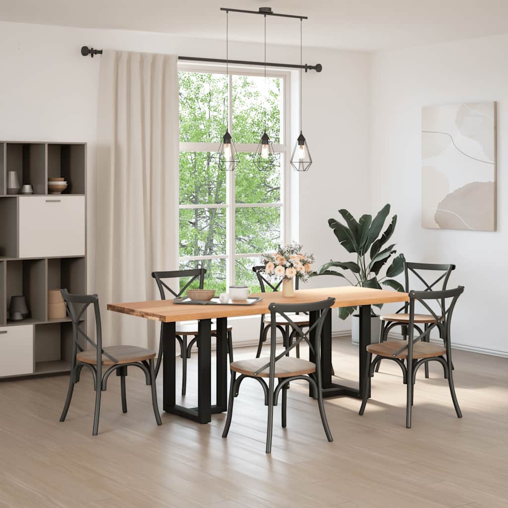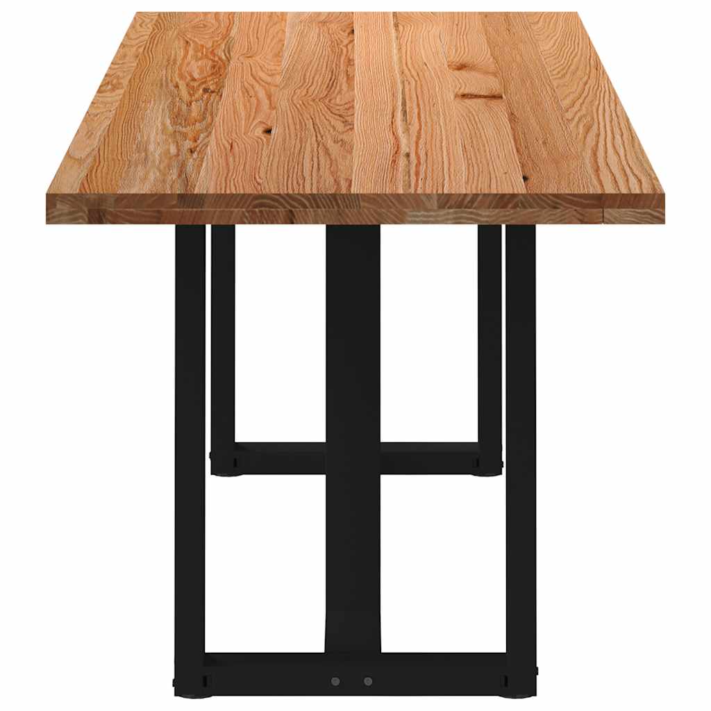Mach jede Mahlzeit unvergesslich, indem du dich jeden Tag mit deiner Familie oder deinen Freunden um diesen Esstisch aus Holz versammelst! Robustes und langlebiges Material: Massives Eichenholz ist für seine Festigkeit, Haltbarkeit und schöne Maserung bekannt, weshalb es sich hervorragend für haltbare Möbel eignet. Durch seine natürliche Beständigkeit gegen Insektenbefall und Schimmelbildung sehen Eichenmöbel selbst nach jahrelangem Gebrauch brandneu aus.Großer Tisch: Dieser Küchentisch bietet mit seinen Maßen von 220 x 80 cm viel Platz zum Sitzen und ist das Herzstück deines Essbereichs.Einzigartiger Charme: Da Äste, Risse und Farbabweichungen natürliche Merkmale des Eichenholzes sind, hat jedes Stück dieses Produkts seinen ganz eigenen Charme. Auf den Bildern siehst du Beispiele für die zu erwartenden Variationen.Praktisches Design: Diese Esstischbeine sind mit verstellbaren Nivellierfüßen ausgestattet, die auch auf unebenen Böden für Stabilität sorgen und Bodenkratzer minimieren. Außerdem verfügt die Halterung über vorgebohrte Löcher und mitgelieferte Schrauben, mit denen das Bein an der Tischplatte befestigt werden kann, was die Montage erleichtert. Gut zu wissen:Jedes Stück ist ein Unikat, das in Farbe und Maserung variiert. Die Lieferung erfolgt in zufälliger Reihenfolge, wodurch die Exklusivität und Individualität deines Produkts gewährleistet wird.Äste und kleinere Fehler werden mit schwarzem Füllmaterial aufgefüllt, um eine schöne und glatte Tischoberfläche zu erhalten. Beispiele findest du in den Abbildungen.Die Tischplatte ist an den Rändern 4 cm dick, um ein robustes Aussehen zu gewährleisten, und in der Mitte 2 cm dick, um den Holzverbrauch und das Gesamtgewicht zu reduzieren.Bitte bohre die Löcher in der Mitte, nicht an den Rändern der Platte.Bitte achte darauf, die maximale Bohrtiefe von 15 mm nicht zu überschreiten, um die Tischplatte nicht zu beschädigen, da die Plattenstärke 20 mm beträgt.Wir empfehlen, einen Schraubendreher anstelle einer elektrischen Bohrmaschine zu verwenden, um Holzrisse beim Anbringen der Beine zu vermeiden.