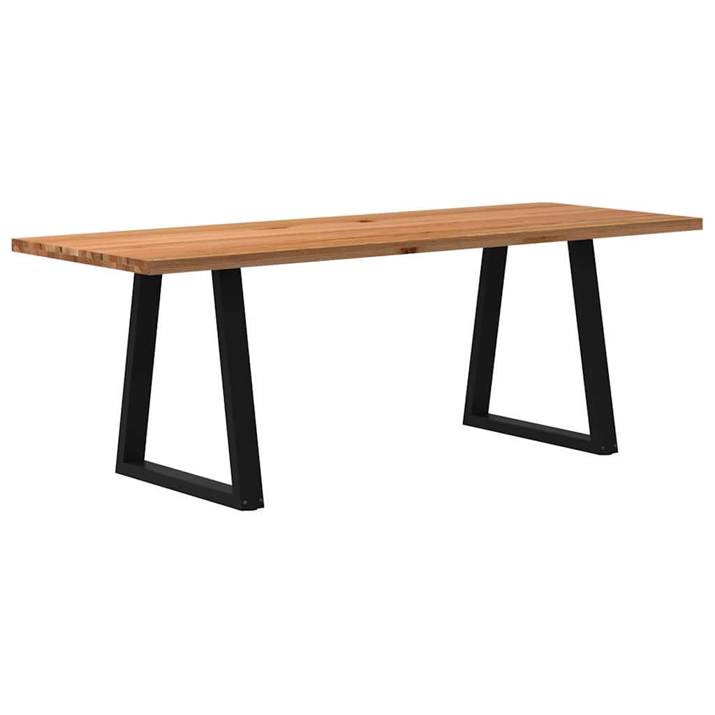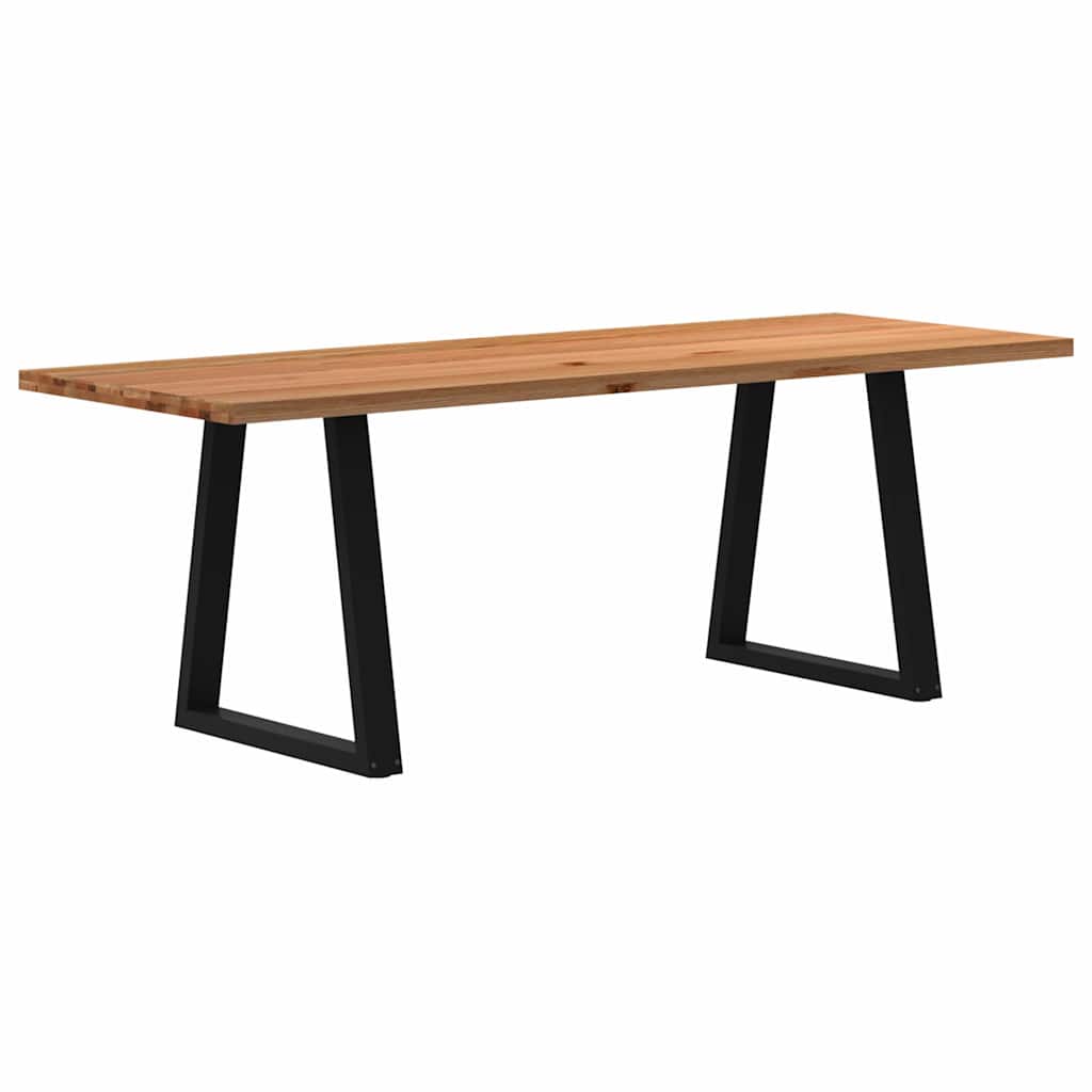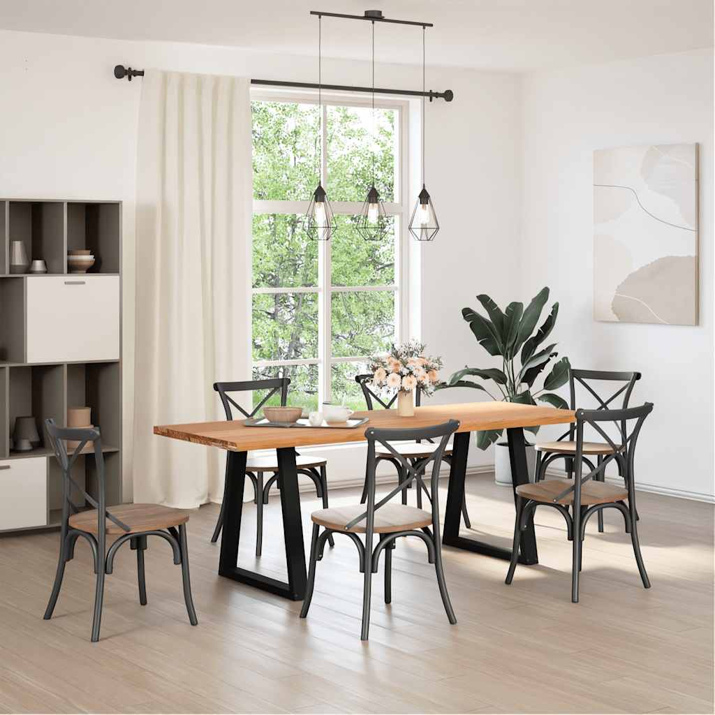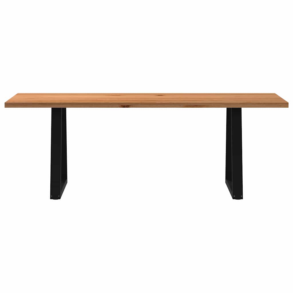 Mach jede Mahlzeit unvergesslich, indem du dich jeden Tag mit deiner Familie oder deinen Freunden um diesen Esstisch aus Holz versammelst! Robustes und langlebiges Material: Massives Eichenholz ist für seine Festigkeit, Haltbarkeit und schöne Maserung bekannt, weshalb es sich hervorragend für haltbare Möbel eignet. Durch seine natürliche Beständigkeit gegen Insektenbefall und Schimmelbildung sehen Eichenmöbel selbst nach jahrelangem Gebrauch brandneu aus.Großer Tisch: Dieser Küchentisch bietet mit seinen Maßen von 220 x 80 cm viel Platz zum Sitzen und ist das Herzstück deines Essbereichs.Einzigartiger Charme: Da Äste, Risse und Farbabweichungen natürliche Merkmale des Eichenholzes sind, hat jedes Stück dieses Produkts seinen ganz eigenen Charme. Auf den Bildern siehst du Beispiele für die zu erwartenden Variationen.Praktisches Design: Diese Esstischbeine sind mit verstellbaren Nivellierfüßen ausgestattet, die auch auf unebenen Böden für Stabilität sorgen und Bodenkratzer minimieren. Außerdem verfügt die Halterung über vorgebohrte Löcher und mitgelieferte Schrauben, mit denen das Bein an der Tischplatte befestigt werden kann, was die Montage erleichtert. Gut zu wissen:Jedes Stück ist ein Unikat, das in Farbe und Maserung variiert. Die Lieferung erfolgt in zufälliger Reihenfolge, wodurch die Exklusivität und Individualität deines Produkts gewährleistet wird.Äste und kleinere Fehler werden mit schwarzem Füllmaterial aufgefüllt, um eine schöne und glatte Tischoberfläche zu erhalten. Beispiele findest du in den Abbildungen.Die Tischplatte ist an den Rändern 4 cm dick, um ein robustes Aussehen zu gewährleisten, und in der Mitte 2 cm dick, um den Holzverbrauch und das Gesamtgewicht zu reduzieren.Bitte bohre die Löcher in der Mitte, nicht an den Rändern der Platte.Bitte achte darauf, die maximale Bohrtiefe von 15 mm nicht zu überschreiten, um die Tischplatte nicht zu beschädigen, da die Plattenstärke 20 mm beträgt.Wir empfehlen, einen Schraubendreher anstelle einer elektrischen Bohrmaschine zu verwenden, um Holzrisse beim Anbringen der Beine zu vermeiden.