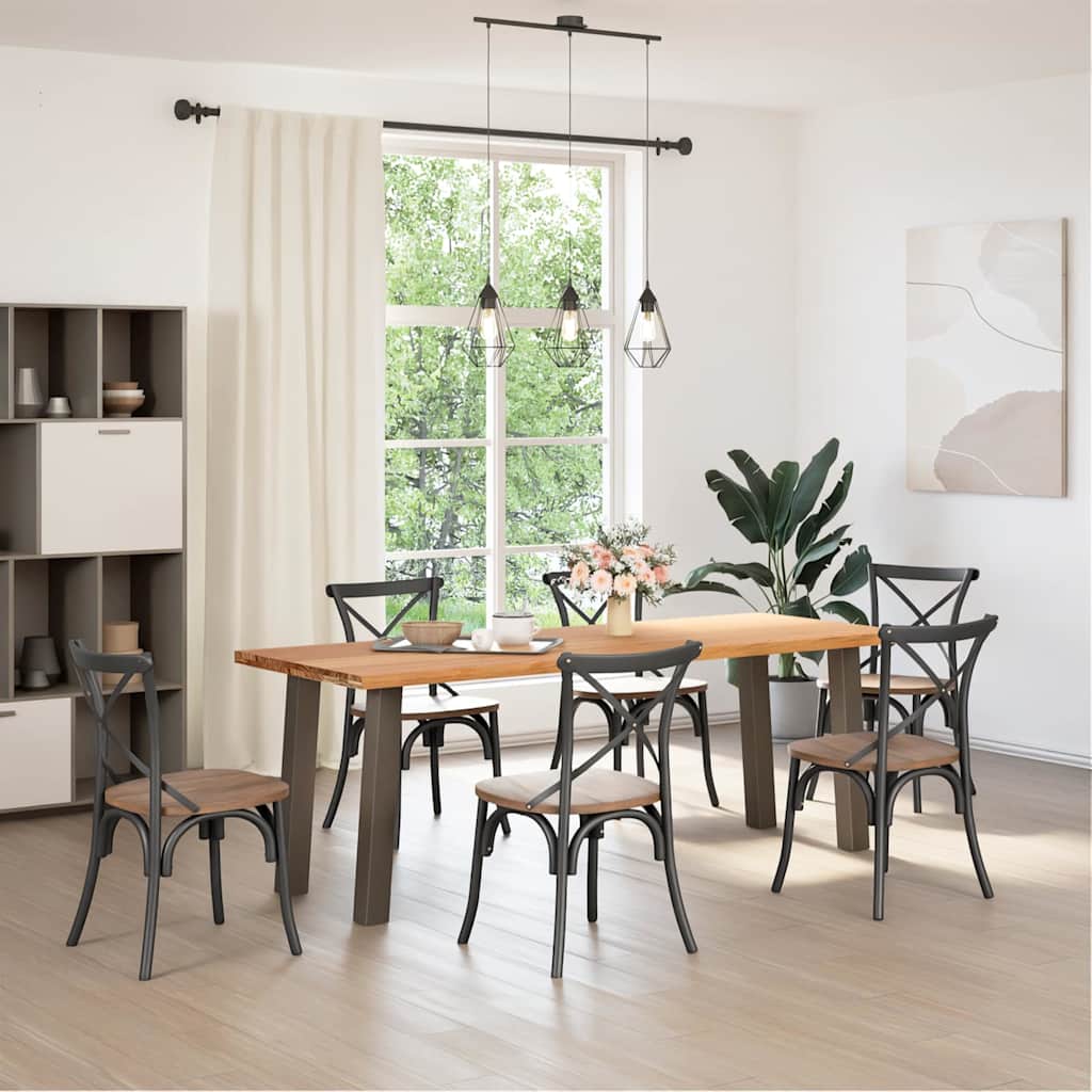 Mach jede Mahlzeit unvergesslich, indem du dich jeden Tag mit deiner Familie oder deinen Freunden um diesen Esstisch aus Holz versammelst!Robustes und langlebiges Material: Massives Eichenholz ist für seine Festigkeit, Haltbarkeit und schöne Maserung bekannt, weshalb es sich hervorragend für haltbare Möbel eignet. Durch seine natürliche Beständigkeit gegen Insektenbefall und Schimmelbildung sehen Eichenmöbel selbst nach jahrelangem Gebrauch brandneu aus.Großer Tisch: Dieser Tisch bietet mit seinen Maßen von 220 x 80 cm viel Platz zum Sitzen und ist das Herzstück deines Essbereichs.Pflegeleicht: Dank ihrer glatten Oberfläche lässt sich die Arbeitsplatte mit einem feuchten Tuch leicht reinigen und erfordert wenig Pflege.Einzigartiger Charme: Da Äste, Risse und Farbabweichungen natürliche Merkmale des Eichenholzes sind, hat jedes Stück dieses Produkts seinen ganz eigenen Charme. Auf den Bildern siehst du Beispiele für die zu erwartenden Variationen.Gut zu wissen:Jedes Stück ist ein Unikat, das in Farbe und Maserung variiert. Die Lieferung erfolgt in zufälliger Reihenfolge, wodurch die Exklusivität und Individualität deines Produkts gewährleistet wird.Äste und kleinere Fehler werden mit schwarzem Füllmaterial aufgefüllt, um eine schöne und glatte Tischoberfläche zu erhalten. Beispiele findest du in den Abbildungen.Die Tischplatte ist an den Rändern 4 cm dick, um ein robustes Aussehen zu gewährleisten, und in der Mitte 2 cm dick, um den Holzverbrauch und das Gesamtgewicht zu reduzieren.Bitte bohre die Löcher in der Mitte, nicht an den Rändern der Platte.Bitte achte darauf, die maximale Bohrtiefe von 15 mm nicht zu überschreiten, um die Tischplatte nicht zu beschädigen, da die Plattenstärke 20 mm beträgt.Wir empfehlen, einen Schraubendreher anstelle einer elektrischen Bohrmaschine zu verwenden, um Holzrisse beim Anbringen der Beine zu vermeiden.
