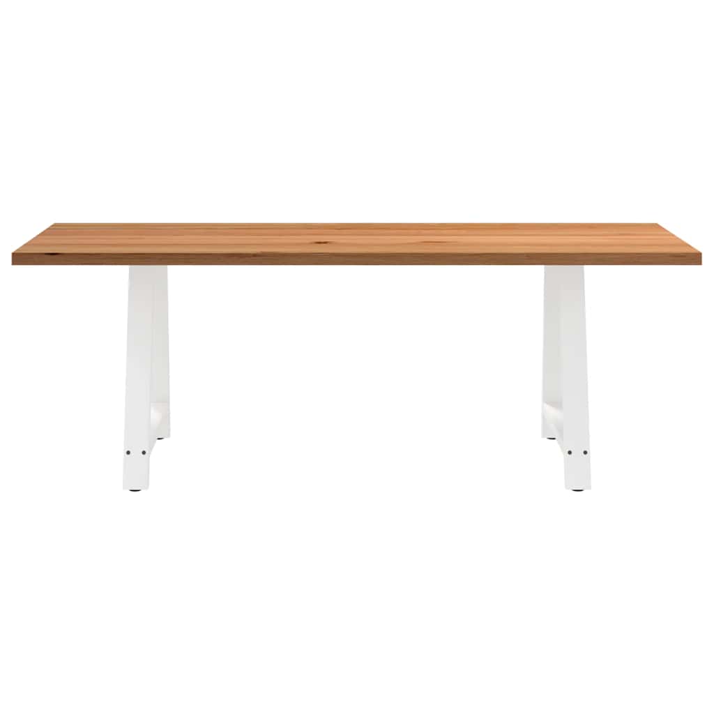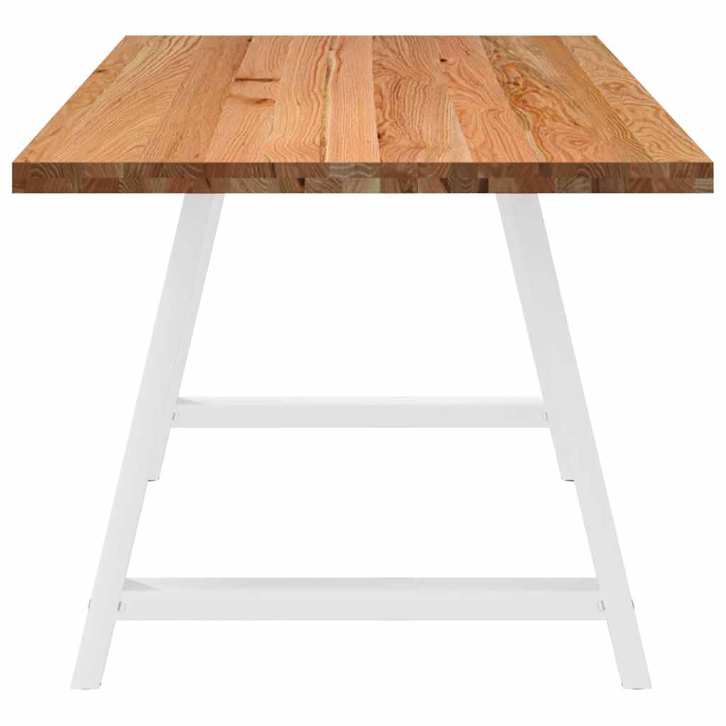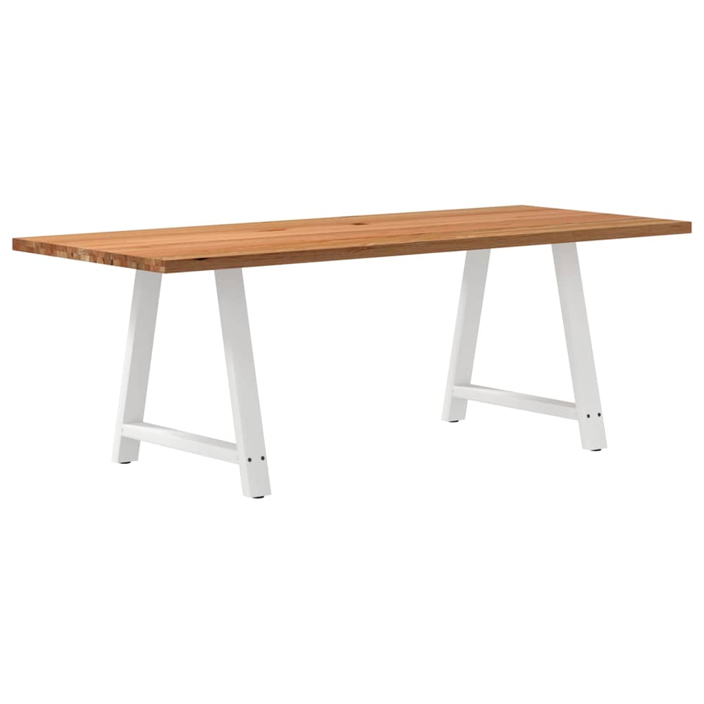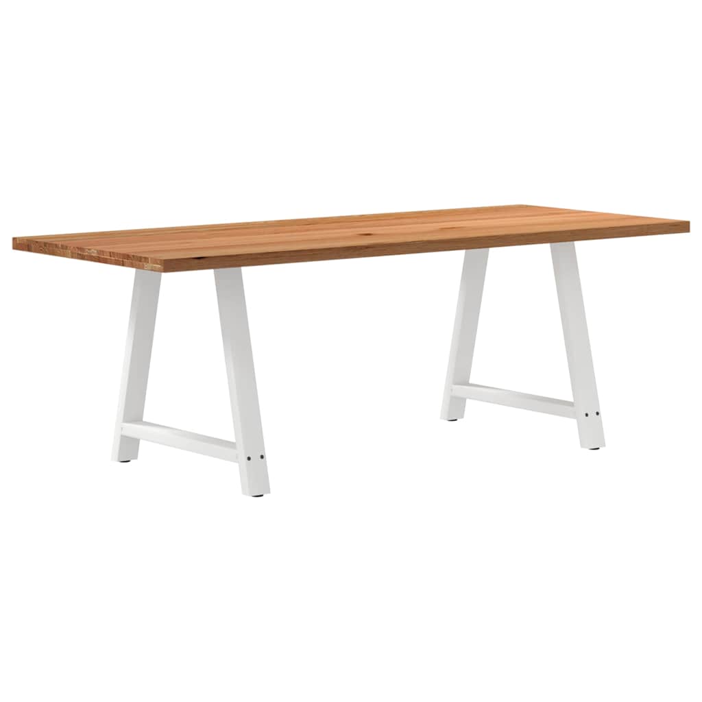 Mach jede Mahlzeit unvergesslich, indem du dich jeden Tag mit deiner Familie oder deinen Freunden um diesen Esstisch aus Holz versammelst! Robustes und langlebiges Material: Massives Eichenholz ist für seine Festigkeit, Haltbarkeit und schöne Maserung bekannt, weshalb es sich hervorragend für haltbare Möbel eignet. Durch seine natürliche Beständigkeit gegen Insektenbefall und Schimmelbildung sehen Eichenmöbel selbst nach jahrelangem Gebrauch brandneu aus.Großer Tisch: Dieser Tisch bietet mit seinen Maßen von 220 x 90 cm viel Platz zum Sitzen und ist das Herzstück deines Essbereichs.Einzigartiger Charme: Da Äste, Risse und Farbabweichungen natürliche Merkmale des Eichenholzes sind, hat jedes Stück dieses Produkts seinen ganz eigenen Charme. Auf den Bildern siehst du Beispiele für die zu erwartenden Variationen.Praktisches Design: Diese Esstischbeine sind mit verstellbaren Nivellierfüßen ausgestattet, die auch auf unebenen Böden für Stabilität sorgen und Bodenkratzer minimieren. Außerdem verfügt die Halterung über vorgebohrte Löcher und mitgelieferte Schrauben, mit denen das Bein an der Tischplatte befestigt werden kann, was die Montage erleichtert.Robustes und stabiles Gestell: Dieser Esszimmertisch hat A-förmige Beine aus pulverbeschichtetem Stahl, die für außergewöhnliche Stabilität und Sicherheit sorgen. Gut zu wissen:Jedes Stück ist ein Unikat, das in Farbe und Maserung variiert. Die Lieferung erfolgt in zufälliger Reihenfolge, wodurch die Exklusivität und Individualität deines Produkts gewährleistet wird.Äste und kleinere Fehler werden mit schwarzem Füllmaterial aufgefüllt, um eine schöne und glatte Tischoberfläche zu erhalten. Beispiele findest du in den Abbildungen.Die Tischplatte ist an den Rändern 4 cm dick, um ein robustes Aussehen zu gewährleisten, und in der Mitte 2 cm dick, um den Holzverbrauch und das Gesamtgewicht zu reduzieren.Bitte bohre die Löcher in der Mitte, nicht an den Rändern der Platte.Bitte achte darauf, die maximale Bohrtiefe von 15 mm nicht zu überschreiten, um die Tischplatte nicht zu beschädigen, da die Plattenstärke 20 mm beträgt.Wir empfehlen, einen Schraubendreher anstelle einer elektrischen Bohrmaschine zu verwenden, um Holzrisse beim Anbringen der Beine zu vermeiden.