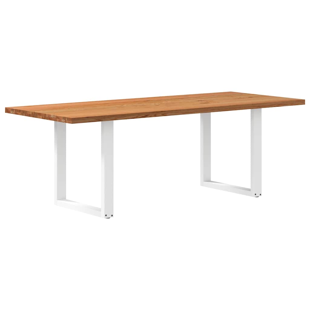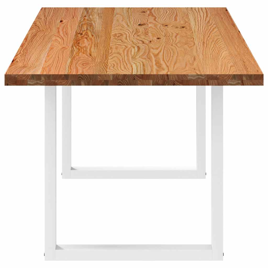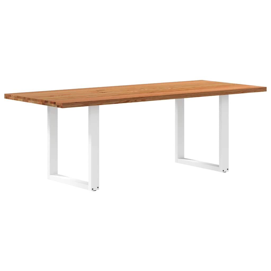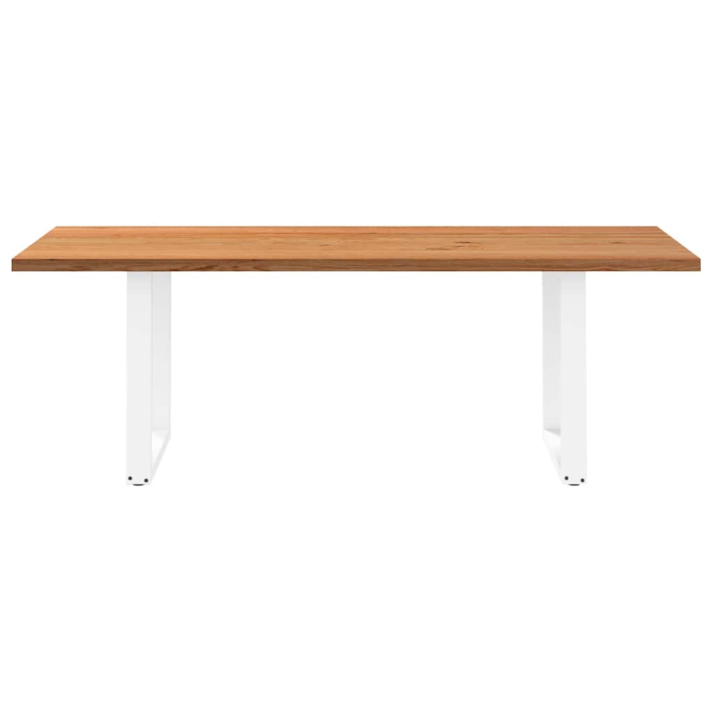 Mach jede Mahlzeit unvergesslich, indem du dich jeden Tag mit deiner Familie oder deinen Freunden um diesen Esstisch aus Holz versammelst! Robustes und langlebiges Material: Massives Eichenholz ist für seine Festigkeit, Haltbarkeit und schöne Maserung bekannt, weshalb es sich hervorragend für haltbare Möbel eignet. Durch seine natürliche Beständigkeit gegen Insektenbefall und Schimmelbildung sehen Eichenmöbel selbst nach jahrelangem Gebrauch brandneu aus.Großer Tisch: Dieser Tisch bietet mit seinen Maßen von 220 x 90 cm viel Platz zum Sitzen und ist das Herzstück deines Essbereichs.Einzigartiger Charme: Da Äste, Risse und Farbabweichungen natürliche Merkmale des Eichenholzes sind, hat jedes Stück dieses Produkts seinen ganz eigenen Charme. Auf den Bildern siehst du Beispiele für die zu erwartenden Variationen.Praktisches Design: Diese Esstischbeine sind mit verstellbaren Nivellierfüßen ausgestattet, die auch auf unebenen Böden für Stabilität sorgen und Bodenkratzer minimieren. Außerdem verfügt die Halterung über vorgebohrte Löcher und mitgelieferte Schrauben, mit denen das Bein an der Tischplatte befestigt werden kann, was die Montage erleichtert.Robustes und stabiles Gestell: Dieser Esszimmertisch hat U-förmige Beine aus pulverbeschichtetem Stahl, die für außergewöhnliche Stabilität und Sicherheit sorgen. Gut zu wissen:Jedes Stück ist ein Unikat, das in Farbe und Maserung variiert. Die Lieferung erfolgt in zufälliger Reihenfolge, wodurch die Exklusivität und Individualität deines Produkts gewährleistet wird.Äste und kleinere Fehler werden mit schwarzem Füllmaterial aufgefüllt, um eine schöne und glatte Tischoberfläche zu erhalten. Beispiele findest du in den Abbildungen.Die Tischplatte ist an den Rändern 4 cm dick, um ein robustes Aussehen zu gewährleisten, und in der Mitte 2 cm dick, um den Holzverbrauch und das Gesamtgewicht zu reduzieren.Bitte bohre die Löcher in der Mitte, nicht an den Rändern der Platte.Bitte achte darauf, die maximale Bohrtiefe von 15 mm nicht zu überschreiten, um die Tischplatte nicht zu beschädigen, da die Plattenstärke 20 mm beträgt.Wir empfehlen, einen Schraubendreher anstelle einer elektrischen Bohrmaschine zu verwenden, um Holzrisse beim Anbringen der Beine zu vermeiden.
