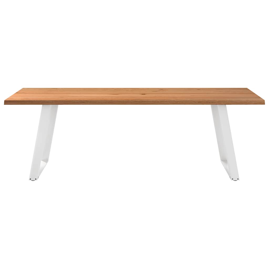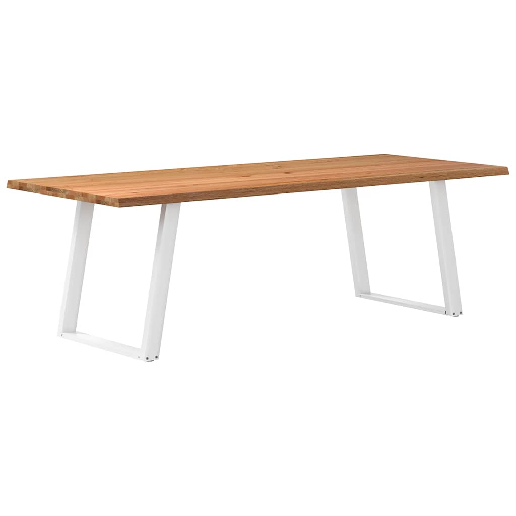 Mach jede Mahlzeit unvergesslich, indem du dich jeden Tag mit deiner Familie oder deinen Freunden um diesen Esstisch aus Holz versammelst! Robustes und langlebiges Material: Massives Eichenholz ist für seine Festigkeit, Haltbarkeit und schöne Maserung bekannt, weshalb es sich hervorragend für haltbare Möbel eignet. Durch seine natürliche Beständigkeit gegen Insektenbefall und Schimmelbildung sehen Eichenmöbel selbst nach jahrelangem Gebrauch brandneu aus.Großer Tisch: Dieser Küchentisch bietet mit seinen Maßen von 240 x 100 cm viel Platz zum Sitzen und ist das Herzstück deines Essbereichs.Naturkanten: Diese Tischplatte hat geschwungene Kanten, die von der natürlichen Form eines Baumes inspiriert sind und deinem Tisch eine charmante Note verleihen.Einzigartiger Charme: Da Äste, Risse und Farbabweichungen natürliche Merkmale des Eichenholzes sind, hat jedes Stück dieses Produkts seinen ganz eigenen Charme. Auf den Bildern siehst du Beispiele für die zu erwartenden Variationen.Praktisches Design: Diese Esstischbeine sind mit verstellbaren Nivellierfüßen ausgestattet, die auch auf unebenen Böden für Stabilität sorgen und Bodenkratzer minimieren. Außerdem verfügt die Halterung über vorgebohrte Löcher und mitgelieferte Schrauben, mit denen das Bein an der Tischplatte befestigt werden kann, was die Montage erleichtert. Gut zu wissen:Jedes Stück ist ein Unikat, das in Farbe und Maserung variiert. Die Lieferung erfolgt in zufälliger Reihenfolge, wodurch die Exklusivität und Individualität deines Produkts gewährleistet wird.Äste und kleinere Fehler werden mit schwarzem Füllmaterial aufgefüllt, um eine schöne und glatte Tischoberfläche zu erhalten. Beispiele findest du in den Abbildungen.Die Tischplatte ist an den Rändern 4 cm dick, um ein robustes Aussehen zu gewährleisten, und in der Mitte 2 cm dick, um den Holzverbrauch und das Gesamtgewicht zu reduzieren.Bitte bohre die Löcher in der Mitte, nicht an den Rändern der Platte.Bitte achte darauf, die maximale Bohrtiefe von 15 mm nicht zu überschreiten, um die Tischplatte nicht zu beschädigen, da die Plattenstärke 20 mm beträgt.Wir empfehlen, einen Schraubendreher anstelle einer elektrischen Bohrmaschine zu verwenden, um Holzrisse beim Anbringen der Beine zu vermeiden.